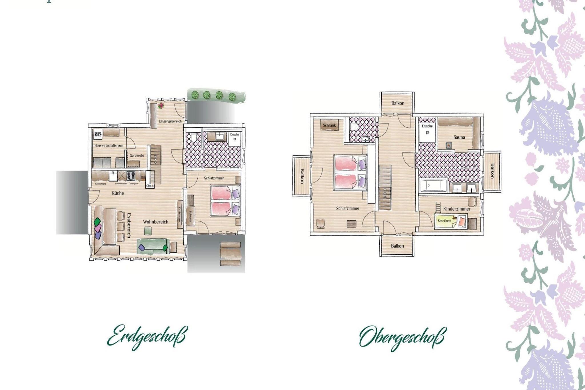 Stueetage: (Indgang , Stue(dobbeltsovesofa, Fjernsyn, pejs), åbent køkken(spisebord, kogeplade, elkedel, brødrister, emhætte, kaffemaskine, ovn, opvaskemaskine , køle-fryseskab, Wine glasses), soveværelse(dobbeltseng), badeværelse(bruser, håndvask, føntørrer), toilet(håndvask, toilet), pulterkammer(tørretumbler, vaskemaskine), balkon eller terrasse, havemøbler) På 1. etage: (soveværelse(dobbeltseng, balkon), soveværelse(køjeseng), badeværelse(badekar, bruser, håndvask, håndvask, balkon), toilet(håndvask, toilet), sauna(privat)(sauna), balkon) opholdsrum(deles med andre gæster), skiopbevaring(deles med andre gæster), hesteopstaldning, møder, fester, receptioner, have, havemøbler, parkering, liggestole, swimmingpool(deles med andre gæster, naturlig svømmedam), tennisbane, sandkasse, legeredskaber, rutsjebane, fodboldmål, loungemøbler, hyggespil, Solcreme, Gyngestativ, Mountain view, Village