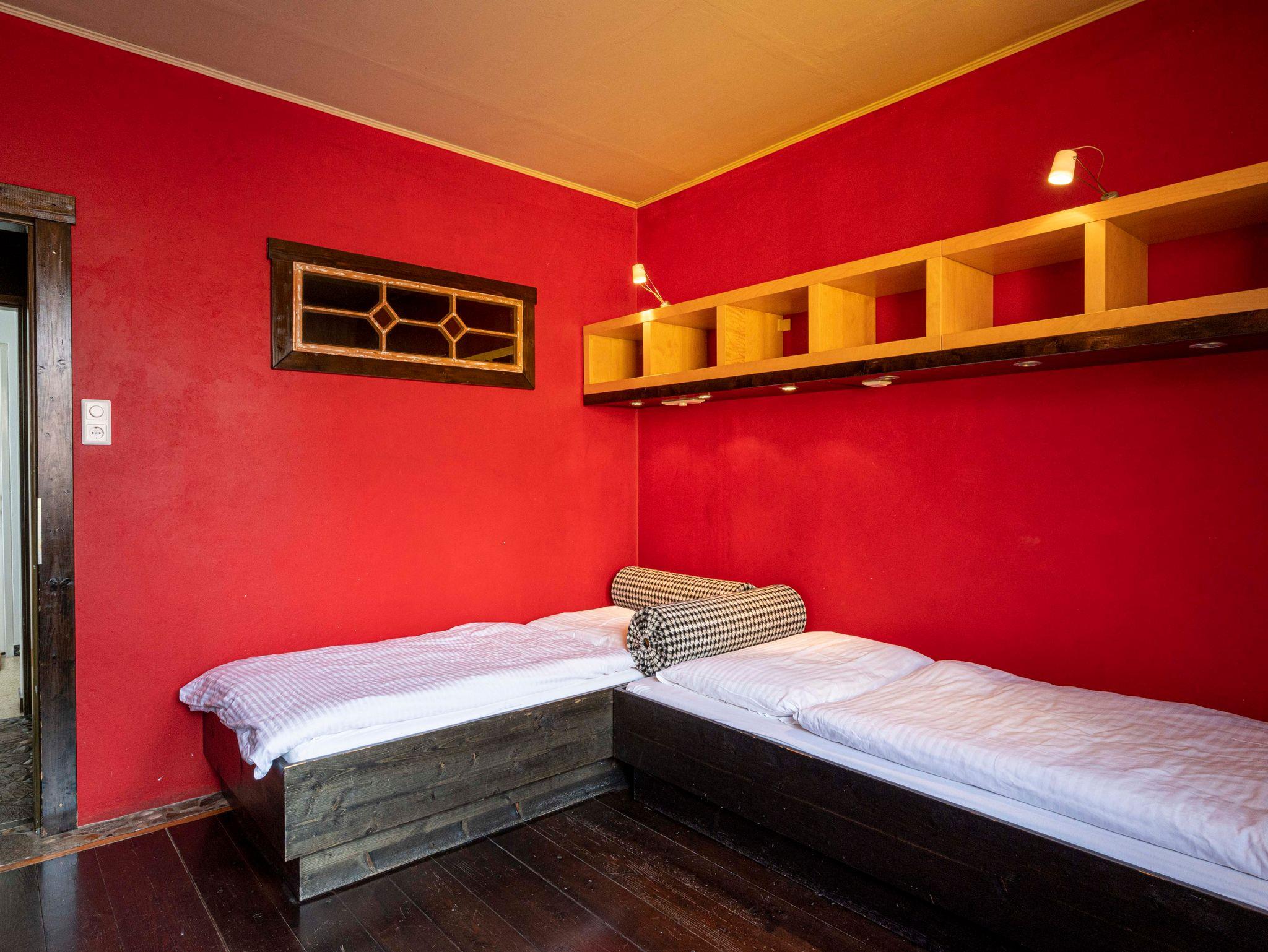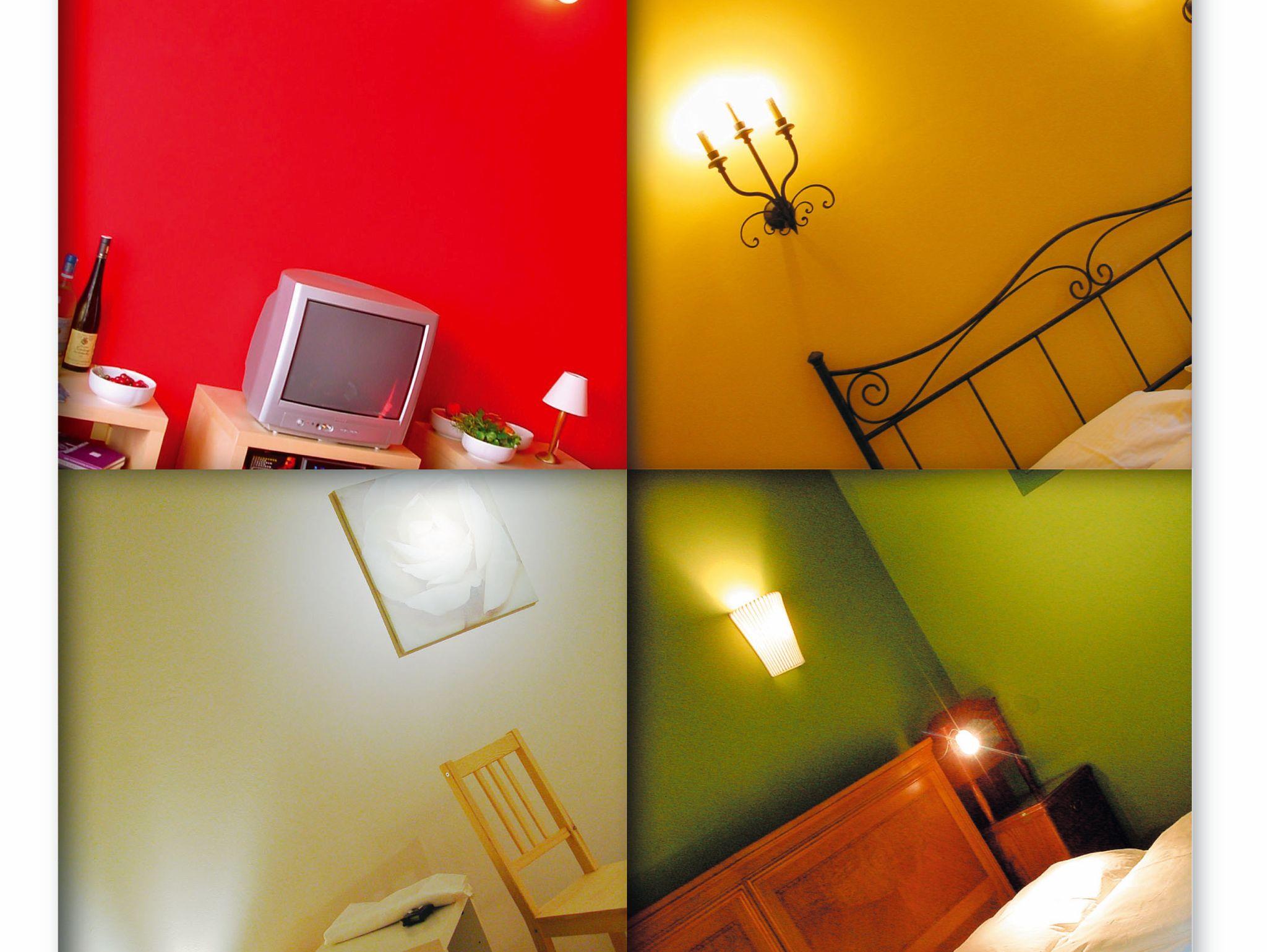 ca. 20 m² - Geräumiges Zimmer mit tollen Lichteffekten. Das Bad ist mit speziellen Steinen verfliest, Dusche/WC, hofseitig. Das Rote Zimmer ist mit zwei Einzelbetten ausgestattet.
