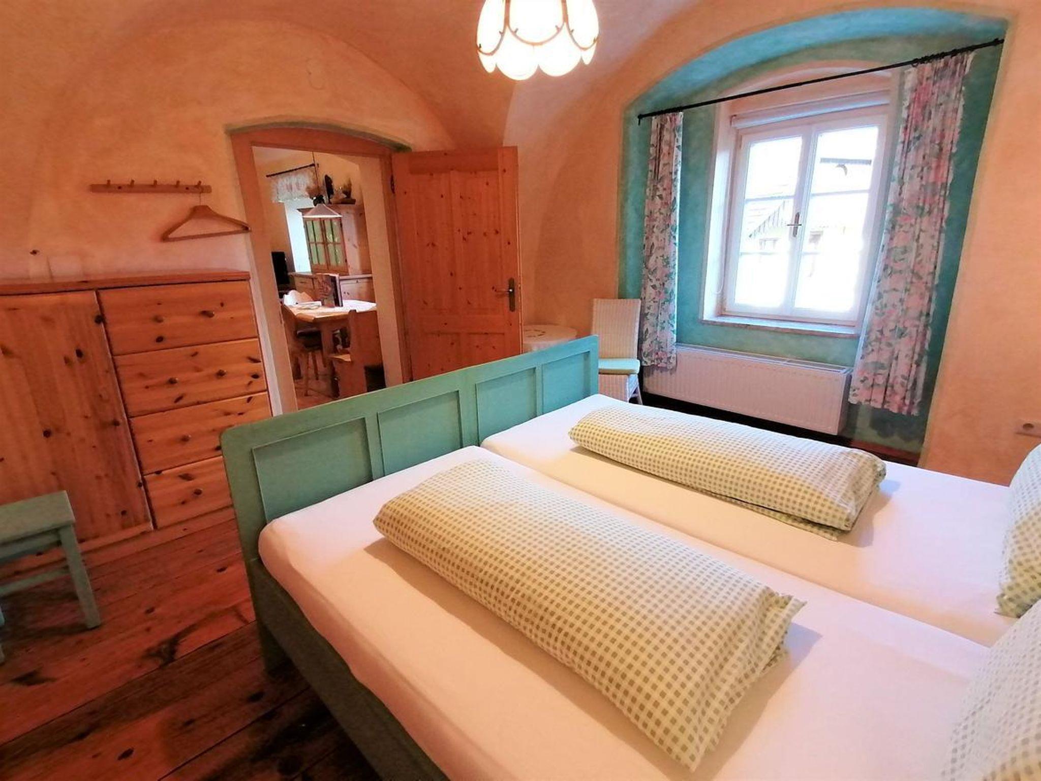 Der Mittelpunkt dieser ansprechenden Wohnung ist der gemütliche Wohnraum, mit der Terrasse in unseren Bauerngarten. Im Wohnbereich befinden sich eine bequeme Sitzecke, der Essbereich und die voll ausgestattete Küche in Massivholz. Großzügiges Schlafzimmer mit Doppelbett und ein Kinderzimmer mit Stockbett. Die Wohnung hat eine eigene Außenhaustüre, einen Vorraum, ein Badezimmer mit Dusche und WC und auch noch eine Extra Toilette.