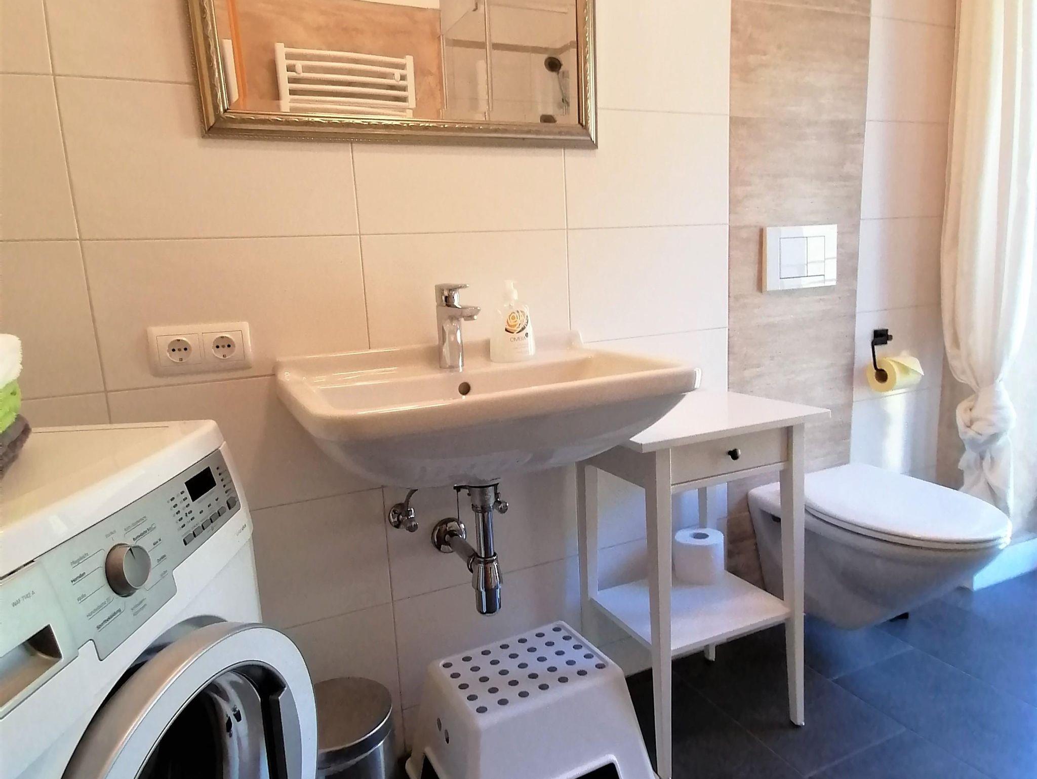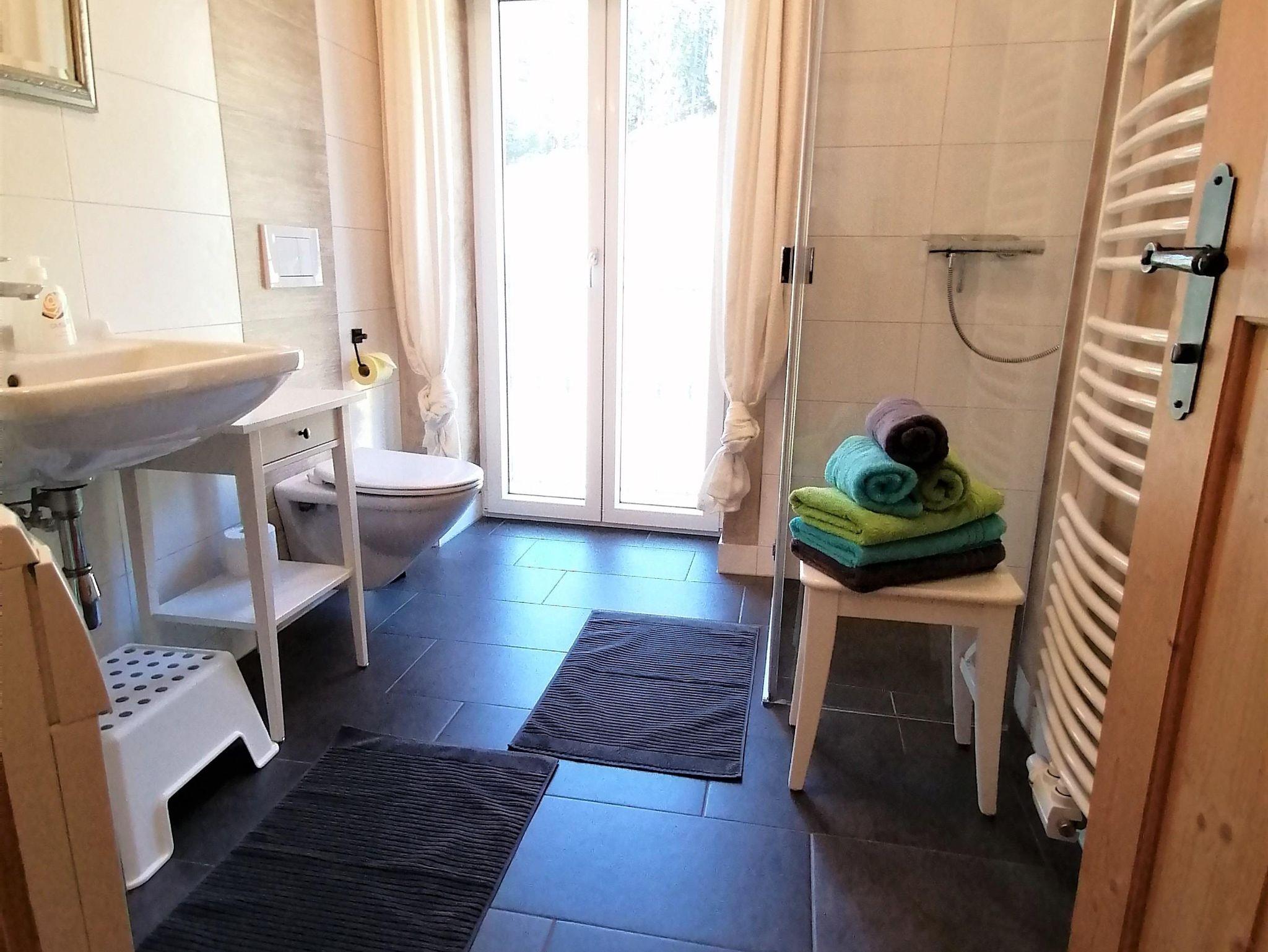 Das Appartement wurde 2014 sehr großzügig errichtet, ist liebevoll und komfortabel mit Möbel und Böden in Massivholz ausgestattet und liegt im 2. Stock unseres „Haupthauses“. Die Wohnung verfügt über eine sehr große, voll ausgestattete Küche mit Kühlschrank plus Gefrierfach, Geschirrspüler, Mikrowelle, E-Herd plus Ceranfeld, Filter-Kaffeemaschine und Wasserkocher, einem Schlafzimmer mit Doppelbett und einem Schlafzimmer mit Stockbett und Couch, einem großen Wohn- und Essbereich mit Fernseher sowie einem Bad mit französischem Balkon, Dusche und WC.