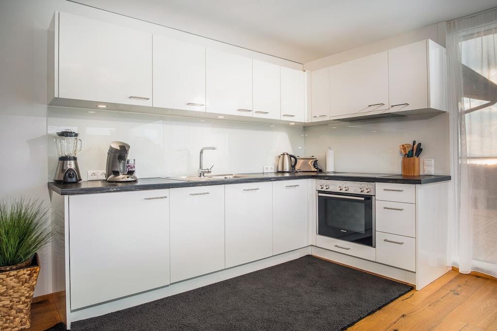 Die Ferienwohnungen sind 2015 neu gebaut worden. Durch die komplette Verglasung im Wohnbereich haben Sie einen Blick auf den Bodensee und die dahinterliegenden Berge Mehr Informationen zu den Wohnungen finden Sie auf unserer Homepage- Die vollausgestattete Küche lässt keine Wünsche offen. Kaffeepadmaschine, Geschirrspüler, Kühlschrank mit Gefrierfach, Toaster, Wasserkocher, Gewürze Der Essbereich für 4 Personen , sowie das gemütliche Sofa, Flachbild TV mit Radio befinden Sich im Wohnbereich Das separate Schlafzimmer mit einem Boxspringbett sorgt für einen erholsamen Schlaf. Der große möbilierte Balkon mit Sonnenliege lädt zum Verweilen ein. Für die Beschattung gibt es eine elektrische Markise. Bitte schauen Sie sich auch unsere weiteren 4 Wohnungen an!!