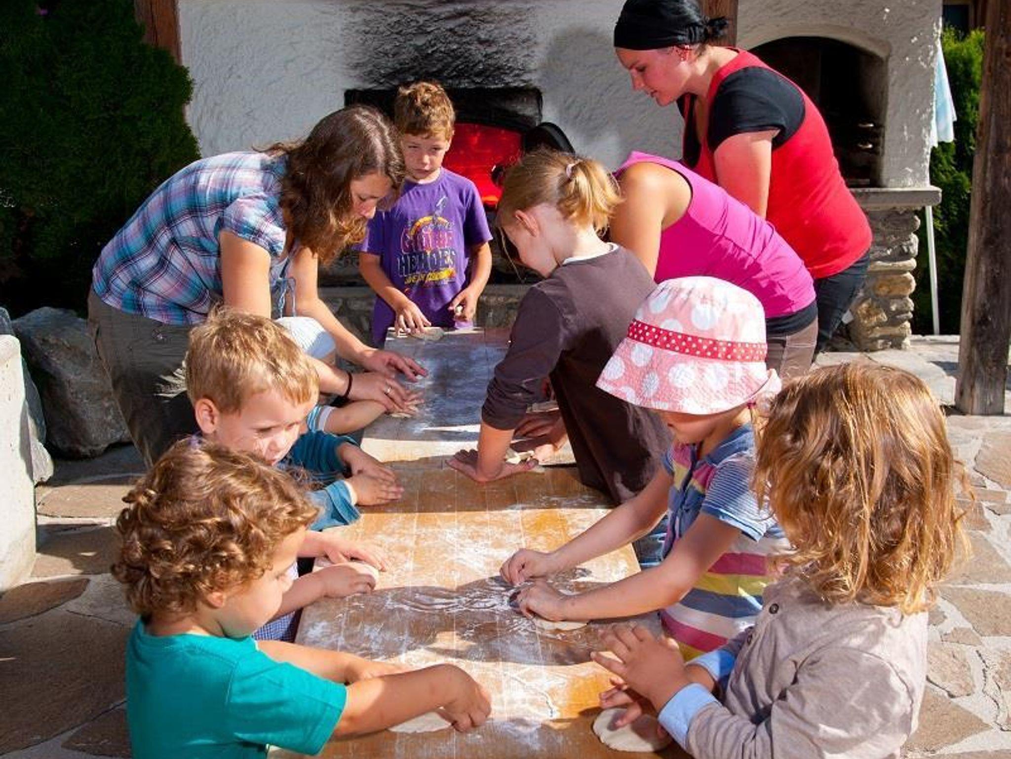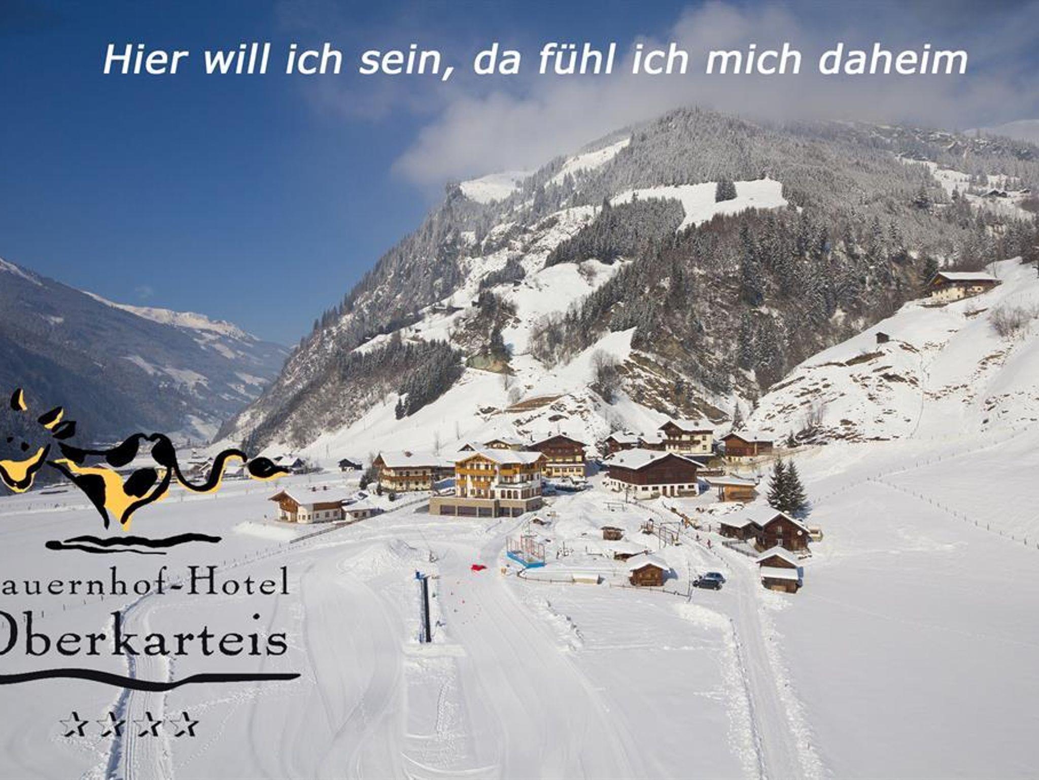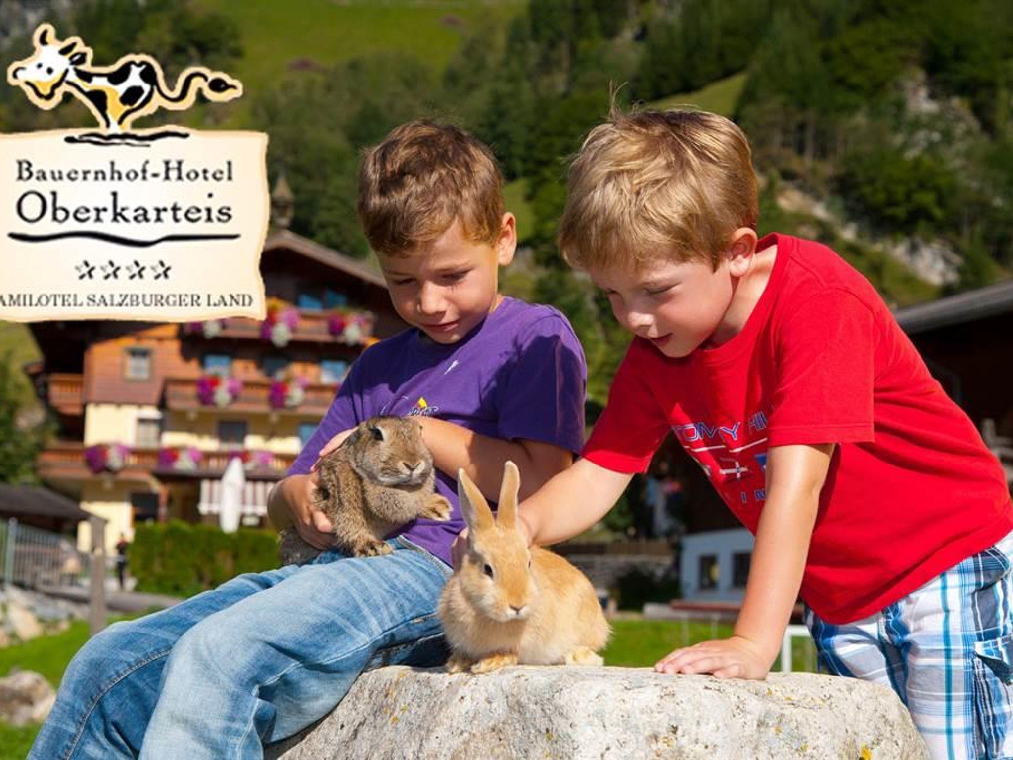 Natur-verbundener Familienurlaub im Bauerhof-Hotel Oberkarteis. Gelungene Kombination aus komfortablem 4*Hotel, intaktem Bauernhof und abwechslungsreichem Kinderprogramm für Ihren Sommer- und Winterurlaub. (rund 40h/Woche) Sommer: 4000m² großes Außengelände mit Abenteuer-Spielplatz, Fussballplatz, Go-Karts, etc., Kinderprogramm mit täglichen Ausflügen in die Natur Winter: Skibushaltestelle und Loipen-Einstieg direkt vom Hotel. Hauseigener Skikindergarten mit Skilehrer und Laufband. Tolles Winter-Kinderprogramm Bei jedem Wetter: - Erlebnis-Hallenbad mit 30°C Wassertemperatur und Kinderbecken, Chlorfreies Wasser - Indoor-Erlebnis-Zentrum (100m² Fussballhalle, 80m² Freizeitzentrum und 100m² Kindergarten mit Spiel- Lese- und Bastelecke)