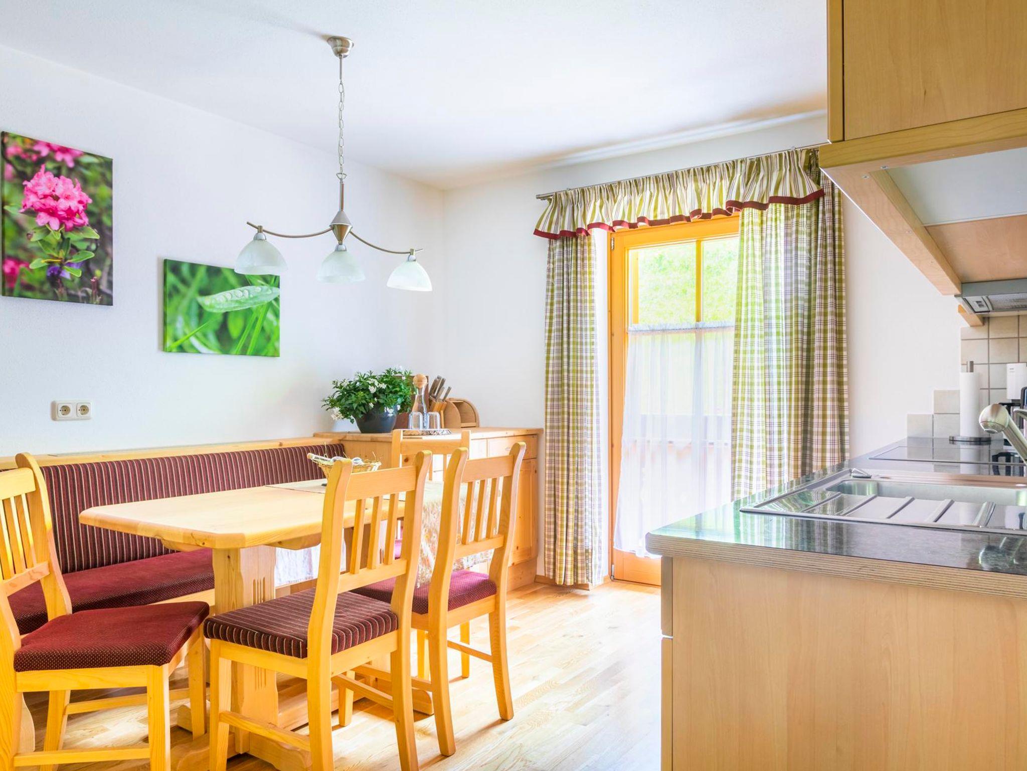 für Allergiker geeignet, Parkettböden, Fußbodenheizung, helle Möbel und Vorhänge, komplett ausgestatte Küche, 1 Schlafzimmer für 2-3 Personen, gemütlicher Wohnraum mit ausziehbarer Doppelcouch. Ausgang in den Garten, direkter Blick auf die Hüttschlager Kletterwand und das Tal, Platz für Gitter- oder Kinderbett. Vorraum und im Ergedschoß Garderobenschrank mit Abteilungen für Wander- bzw. Schibekleidung und Schuhtrockner.