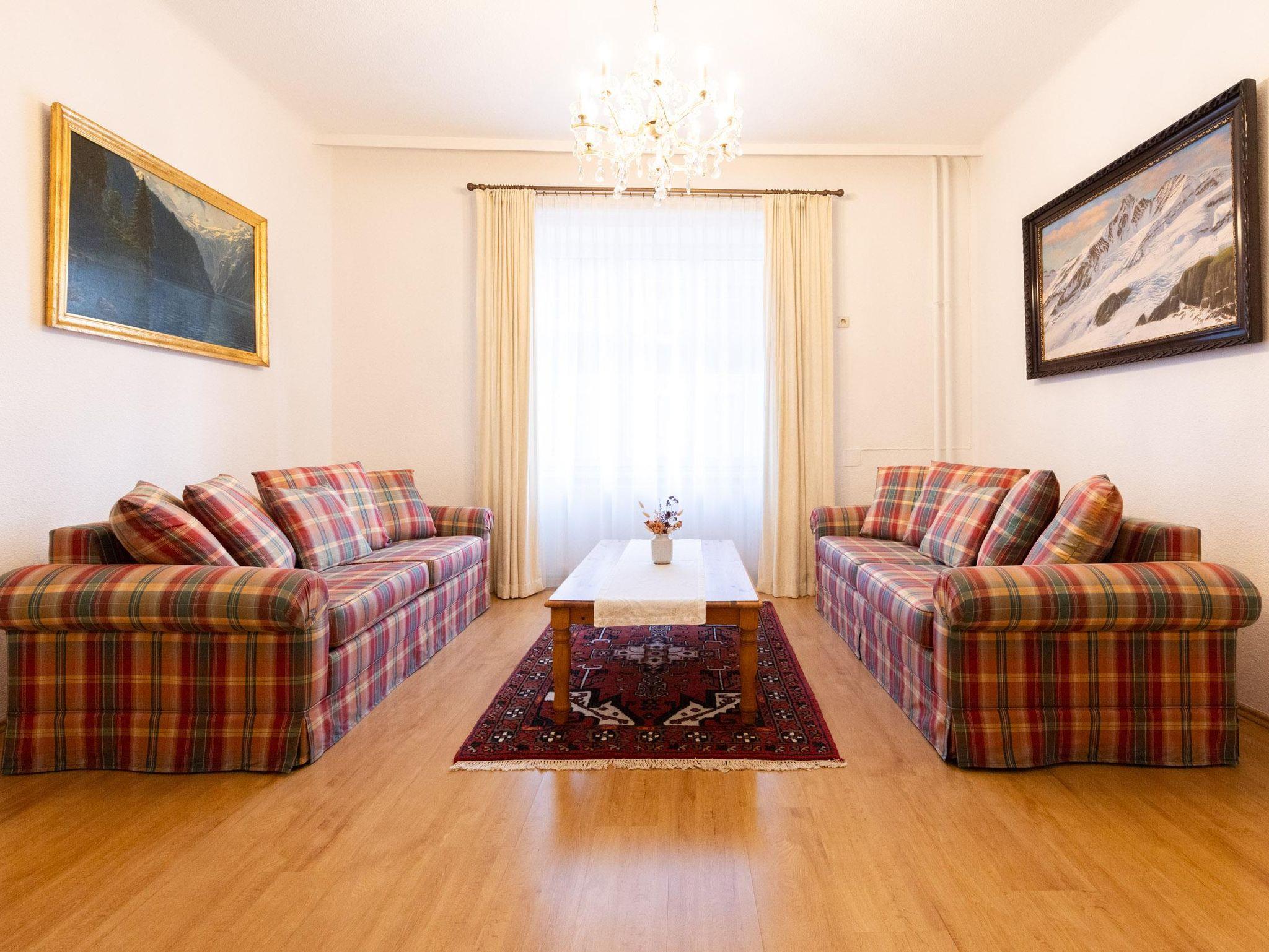 Das lichtdurchflutete Appartement Hochparterre bietet auf 95 m² Platz für bis zu 4 Personen. Zwei Schlafzimmer mit Flachbild-TV, ein Badezimmer mit Badewanne, Dusche und WC, ein separates WC, eine voll ausgestattete Küche mit Backofen, E-Herd, Geschirrspüler, Kühlschrank mit kleinem Gefrierfach, Mikrowelle, Toaster und Nespresso Maschine, ein gemütliches Wohnzimmer mit Flachbild-TV sowie der eigene Zugang über die Veranda schaffen ein stilvolles Zuhause mit dem besonderen Charme der historischen Villa Stephanie.