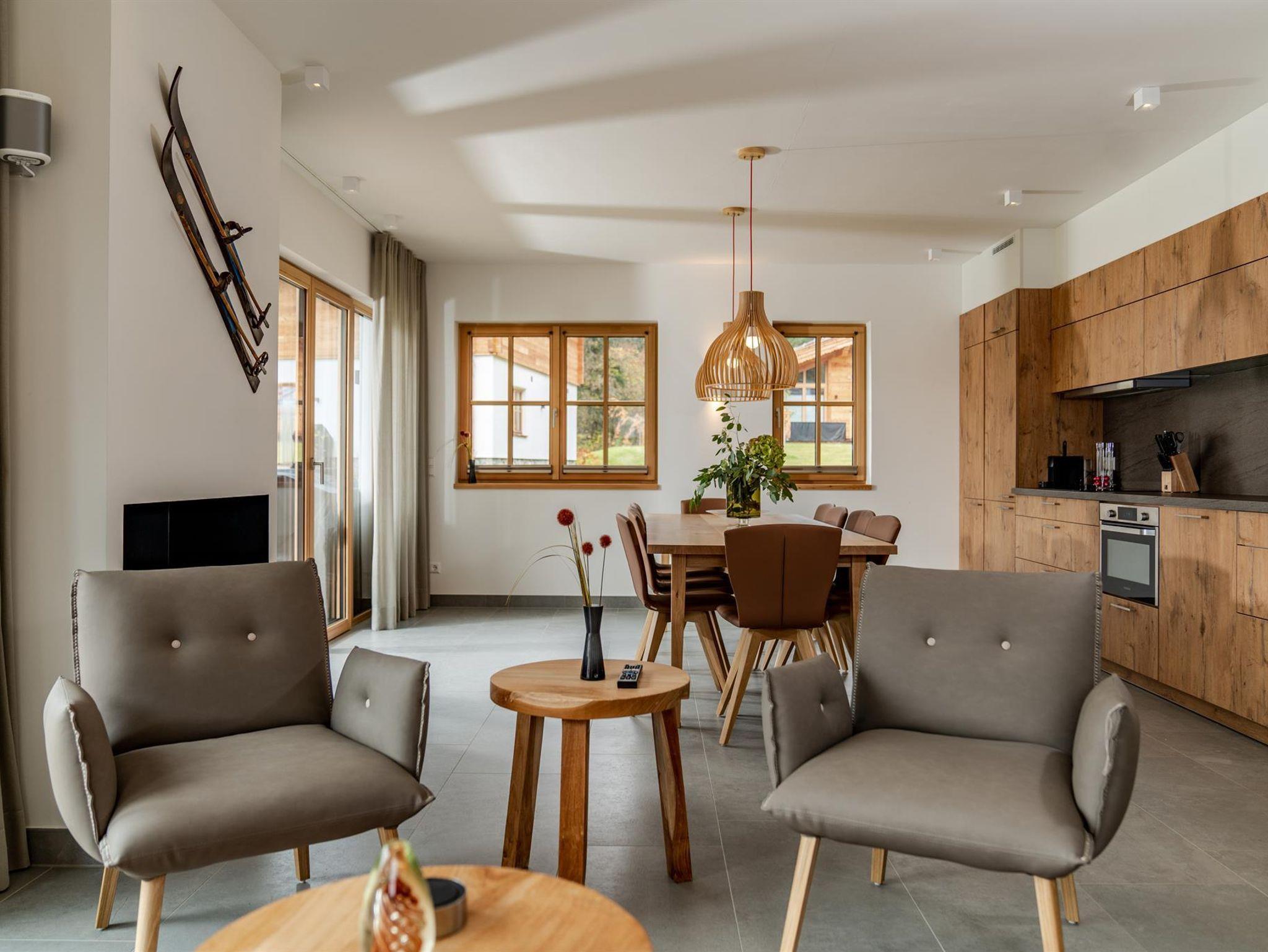 • Offener Kamin/Effektfeuer in vielen Chalets