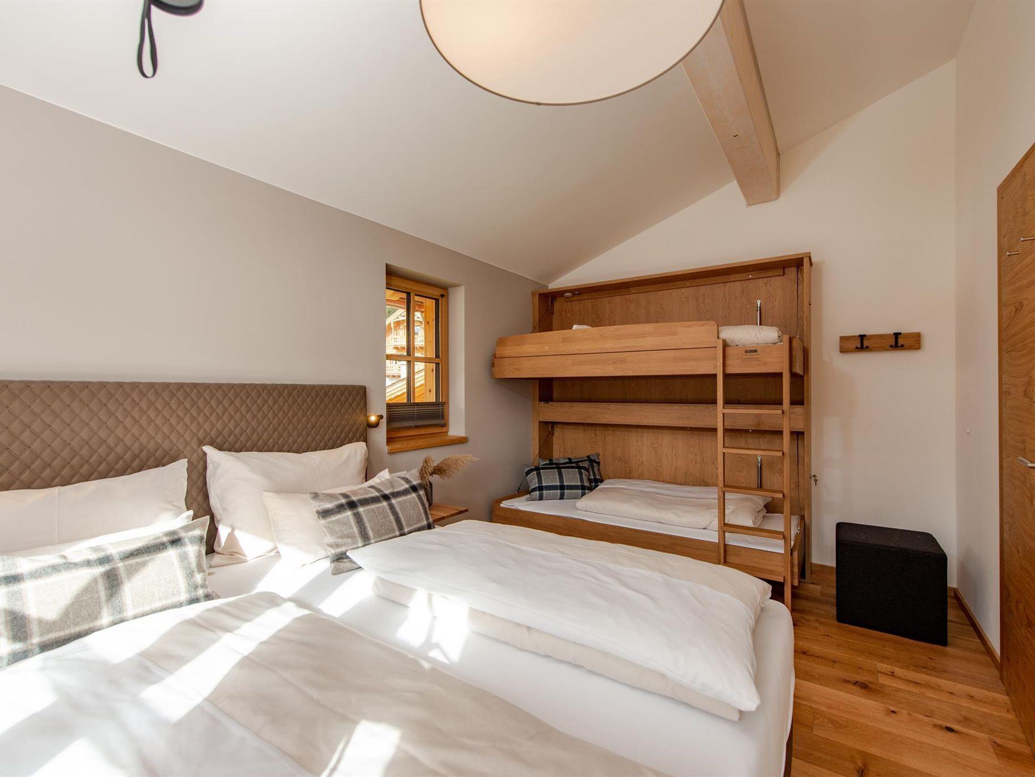 • Vier getrennte Schlafzimmer, drei davon mit je einem Doppelbett in einem Schlafzimmer befindet sich zusätzlich ein Flexinno-Stockbett (geeignet für Kinder) und im vierten Schlafzimmer befindet sich ein fixes Stockbett