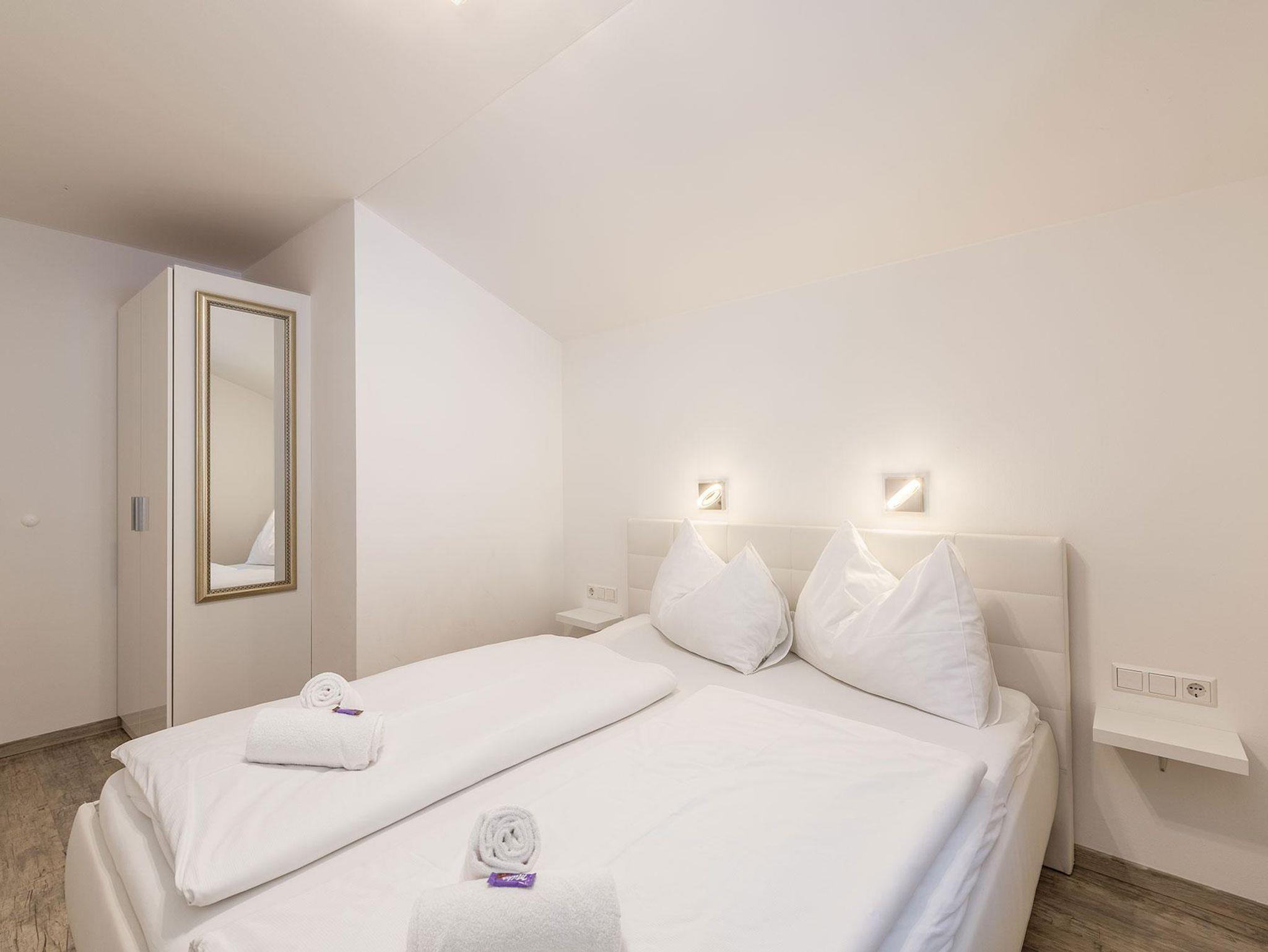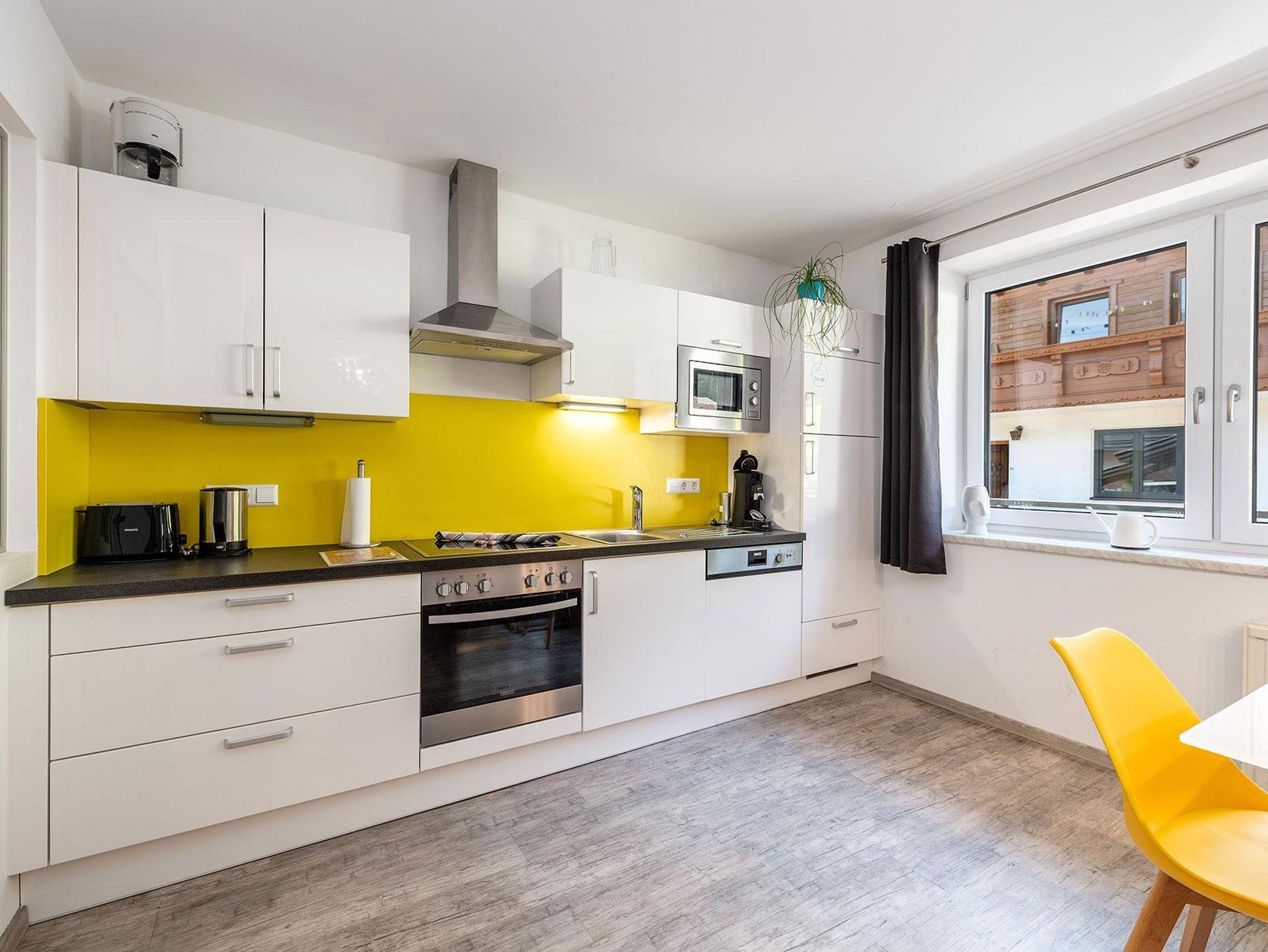 Unser 70 m² großes Mountain Love Appartement I im 1. OG bietet Ihnen einen großen Wohn-/Essraum mit voll eingerichteter Küche, ein Badezimmer mit Dusche sowie ein separates WC. Die Ferienwohnung verfügt über zwei getrennte Schlafzimmer mit Doppelbett, sowie einer hochwertigen Schlafcouch mit inkludierter Matratze für zwei weitere Personen. Für Ihr Baby oder Kleinkind stellen wir gerne ein Bettchen kostenlos zur Verfügung!