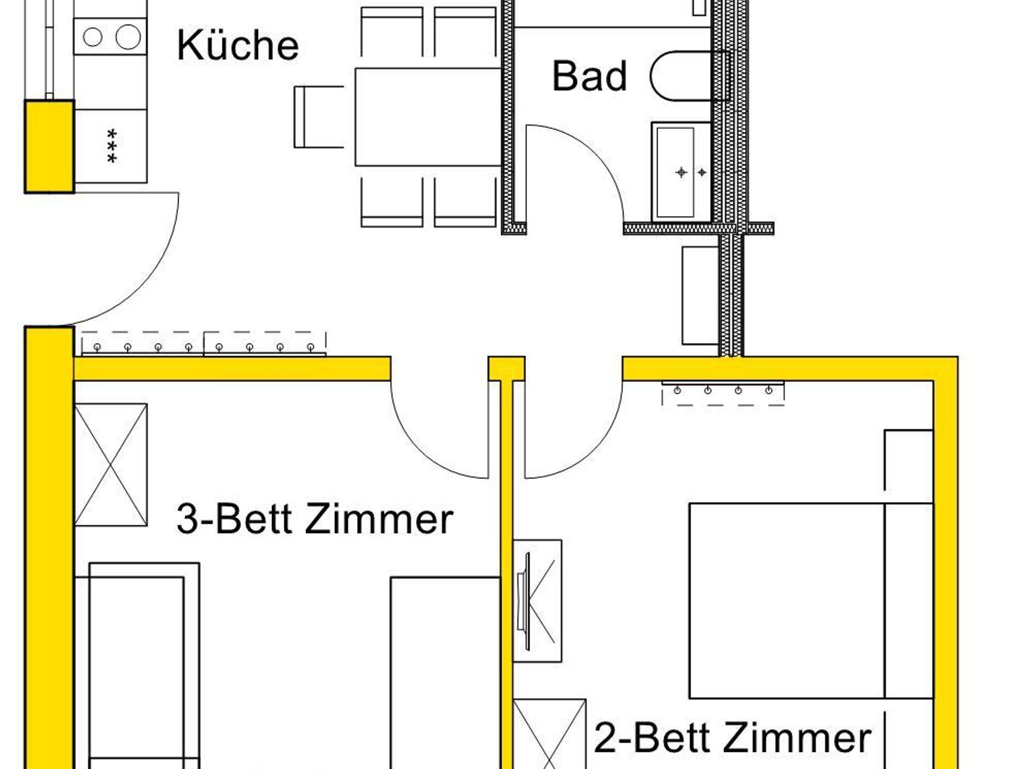 Geräumiges Appartement für bis zu 5 Personen aufgeteilt auf ein Doppelzimmer und ein Dreibettzimmer (Stockbett und 1 Einzelbett). Weiters steht eine gut ausgestattete Küche mit gemütlichem Essbereich sowie ein Bad (mit Dusche und WC) zur Verfügung. Vorzimmer mit Garderobe, Sat-TV mit Netflix und gratis W-Lan.