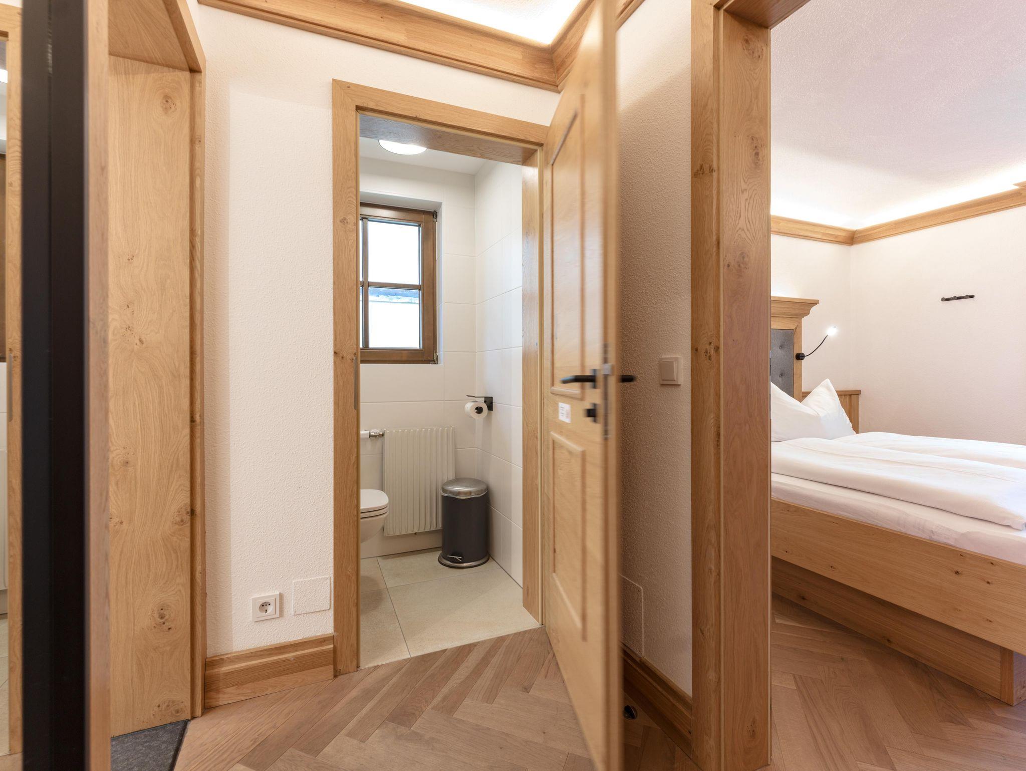 Jede Einheit bietet eine Küche, wahlweise ein oder zwei Schlafzimmer, ein Badezimmer mit Dusche und Doppelwaschtisch, separate Toilette sowie einen Garten oder Balkon. Zwei der Appartements sind für 2-4 Personen, die weiteren 4 für je 4-6 Personen geeignet. Alle Appartements sind mit natürlichen Materialen und viel Holz eingerichtet und schaffen ein gediegen-gemütliches Ambiente. Ein Gemeinschaftsraum mit Wintergarten und kleiner Küche sowie eine Terrasse mit angeschlossenem Garten, im Sommer mit Liegestühlen und Grillplatz, laden Familien oder Gruppen zum gemeinsamen Verweilen ein. Weitere Annehmlichkeiten wie ein kleiner Wellnessbereich mit Sauna und Ruheraum im Untergeschoss des Hauses, ein Skiabstellraum inklusive Skischuhtrockner sowie eine Waschmaschine mit Trockner werden Ihren Urlaub bereichern. Restaurants, Geschäfte und der Aprés Ski Tempel „die Alm Arena“ sind in wenigen Gehminuten erreichbar. Einem autofreien und entspannten Urlaub steht in dieser Toplage nichts mehr im Wege.
