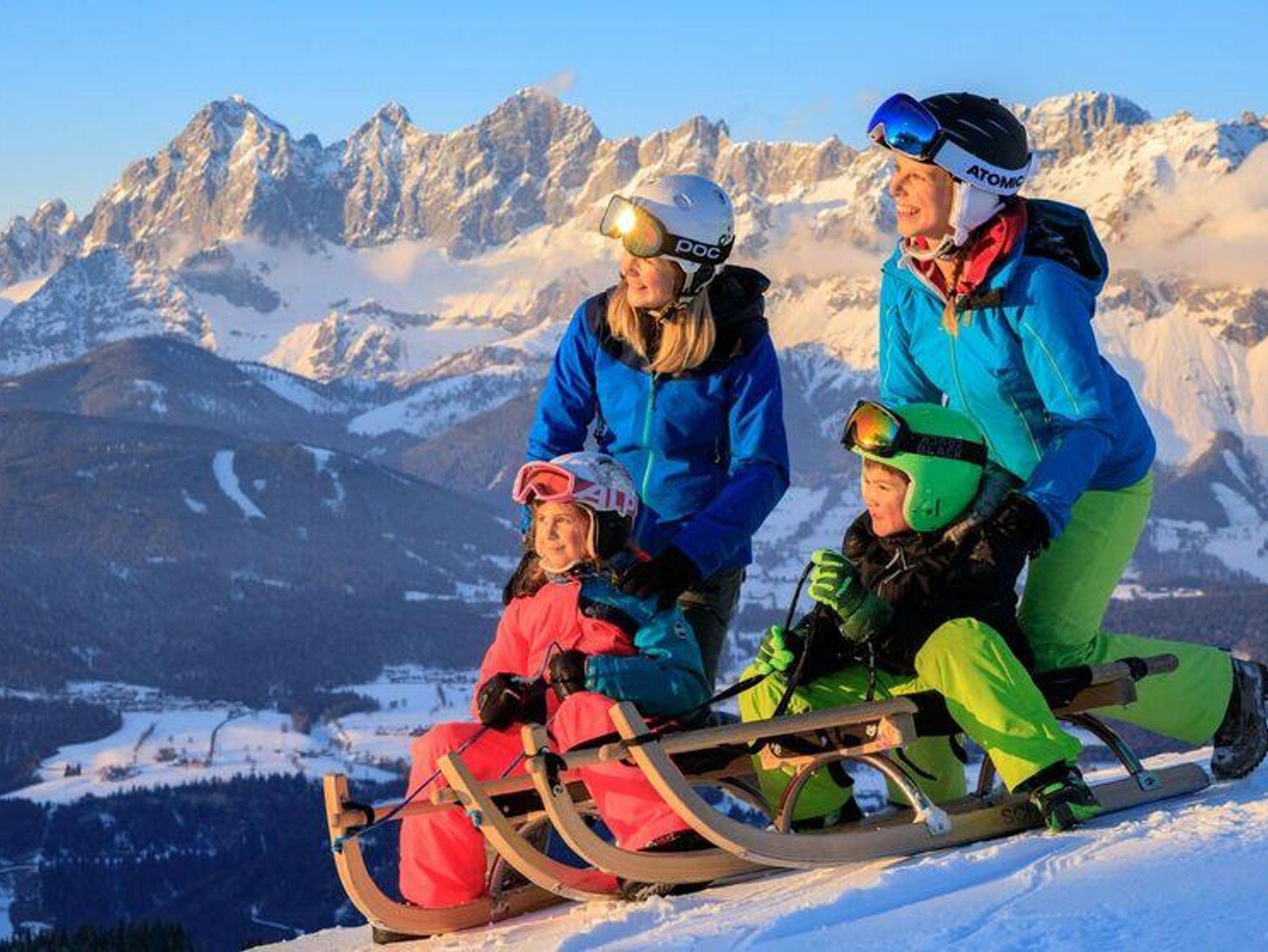 Aber auch der Winter zeigt sich am Linharterhof von seiner schönsten Seite. Mit dem Skibus, der nur 2 Gehminuten von unseren Ferienwohnungen entfernt ist, kommen Sie am schnellsten Wege zum Hauser Kaibling, dem östlichen Ersteinstieg in die Schladminger 4-Berge-Skischaukel. Nach einem tollen Skitag können Sie Ihre Ski im Skiraum mit Schuhtrockner sicher abstellen.