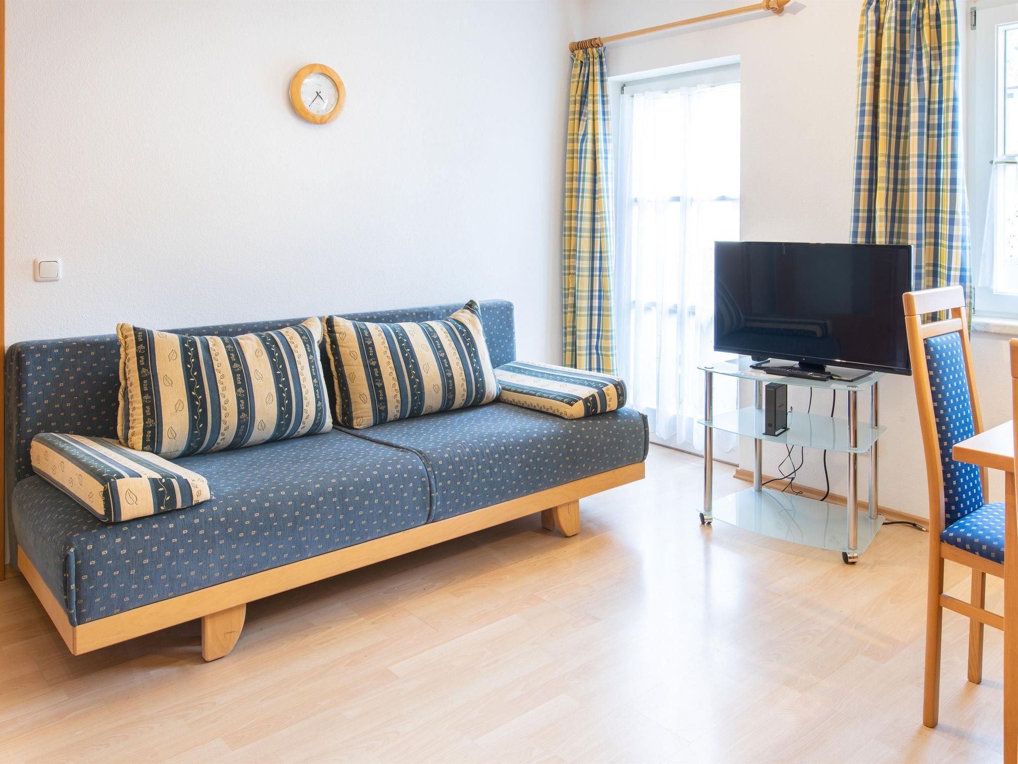 Unser Appartement bietet 1 Doppel- und 1 Dreibettzimmer (jeweils mit Sat-TV), eine Wohnküche mit Schlafcouch und Sat-TV sowie Bad mit WC und ein WC separat. Eigener Balkon auf die Süd- und Nordseite. Im gesamten Appartementhaus haben Sie gratis W-Lan.