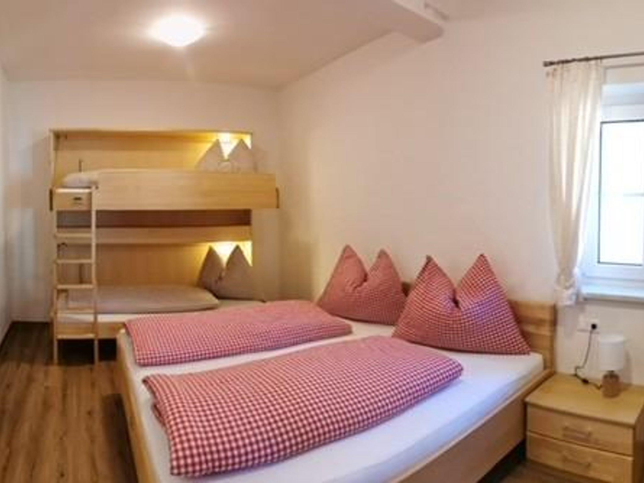 Das Apartment bietet Platz für bis zu vier Personen und verfügt über ein gemütliches Schlafzimmer mit einem komfortablen 180 cm Doppelbett sowie einem Stockbett mit zwei 90 cm Betten – ideal für Familien oder Freunde. Die sonnige Terrasse lädt dazu ein, den Tag entspannt zu beginnen oder mit Blick ins Grüne ausklingen zu lassen.