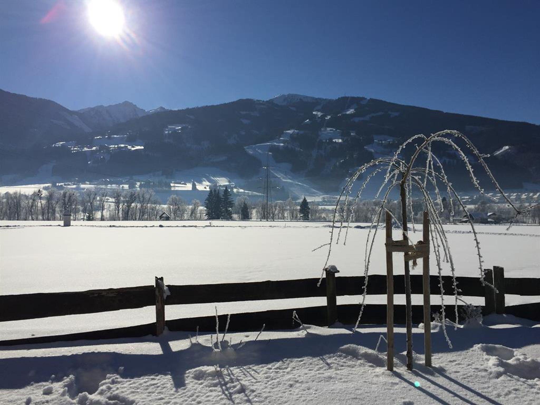 Perfekte Lage zu jeder Jahreszeit: Im Winter erreichen Sie die berühmte 4-Berge-Skischaukel mit direktem Zugang zu den Pisten des Hauser Kaiblings in nur einer Minute mit dem Auto oder dem Skibus. Im Sommer lockt die Region mit einer Vielzahl an Outdoor-Aktivitäten – von Wanderungen und Mountainbiketouren bis hin zu entspannten Stunden inmitten unberührter Natur.