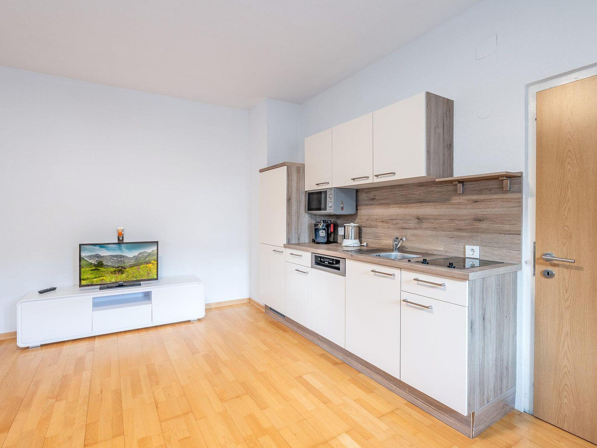 Ein zentrales Gestaltungselement aller Apartments ist das originale Altholz aus dem ehemaligen Dachstuhl, das sorgfältig aufgearbeitet und in maßgefertigten Möbeln neu interpretiert wurde. Dieses historische Holz verleiht jedem Apartment seinen unverwechselbaren Charakter und schafft eine warme, authentische Atmosphäre, die Handwerkskunst und zeitgemäßes Design harmonisch vereint.