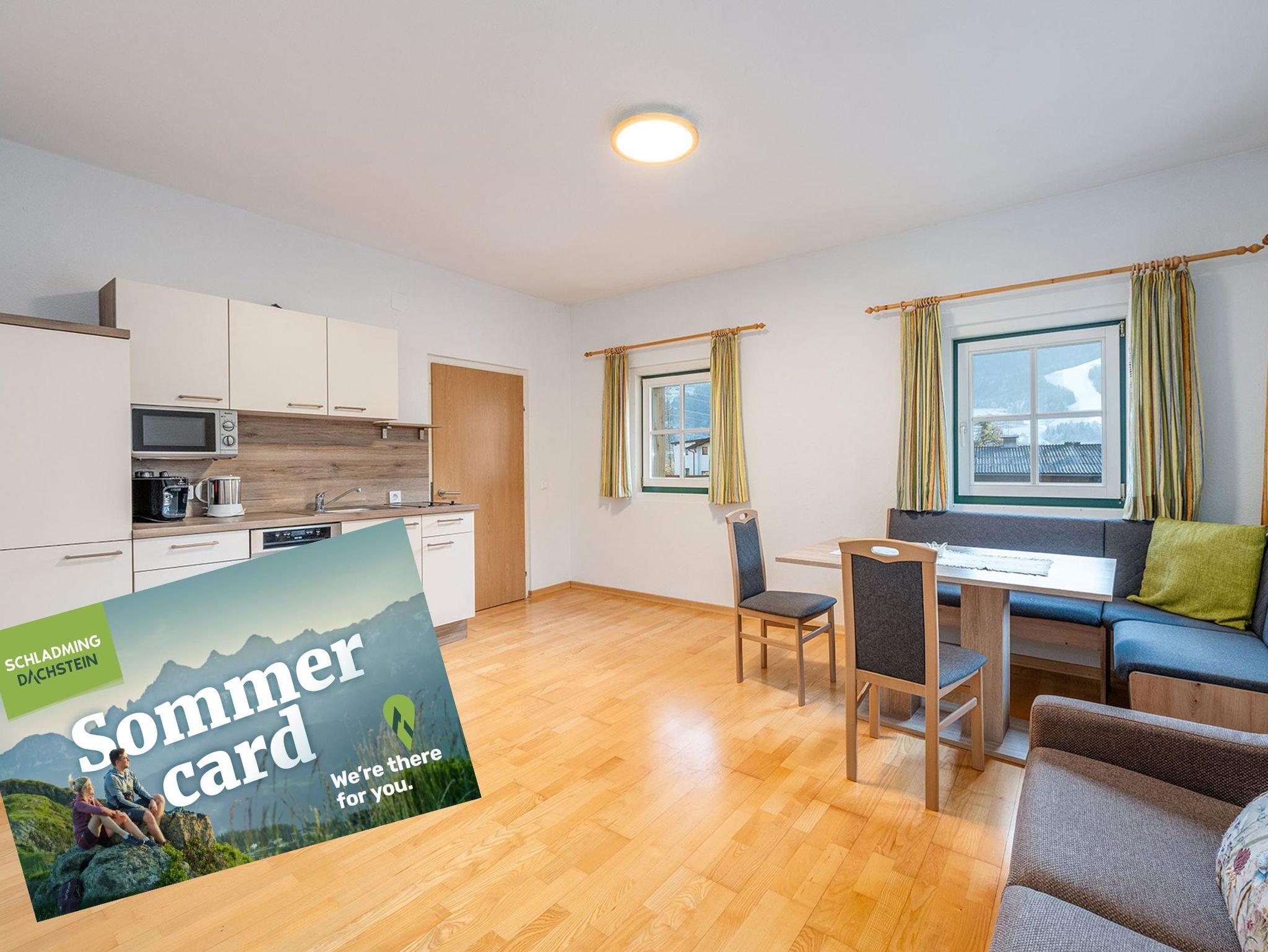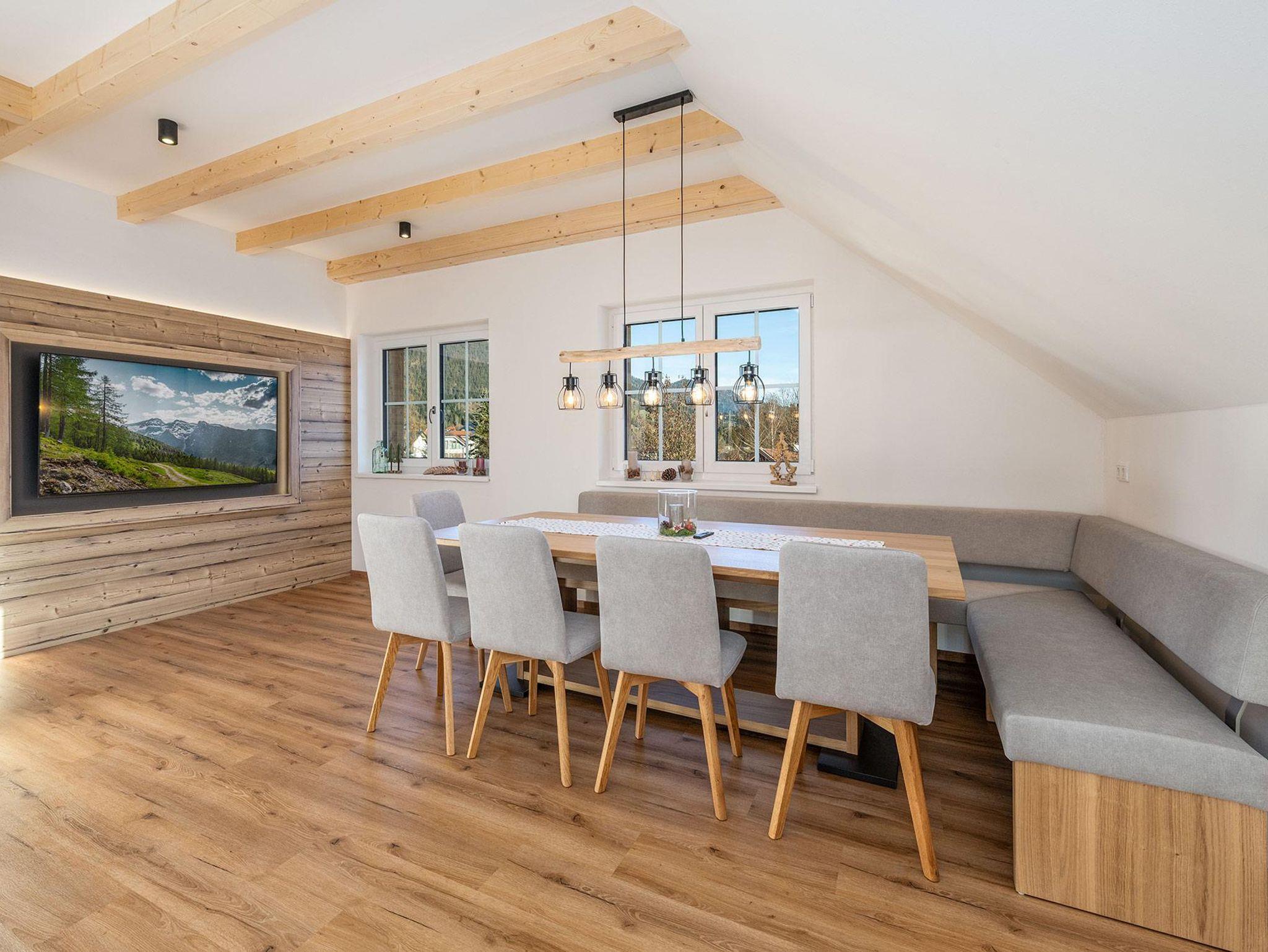 Großzügige Wohn- und Essbereiche, hochwertige Materialien und eine ruhige, naturnahe Lage sorgen für ein besonderes Wohngefühl – ideal zum Ankommen, Abschalten und Genießen. Gleichzeitig profitieren Gäste von der Top-Lage nahe dem Hauser Kaibling, die sowohl im Winter als auch im Sommer beste Voraussetzungen für einen aktiven und erholsamen Aufenthalt bietet.