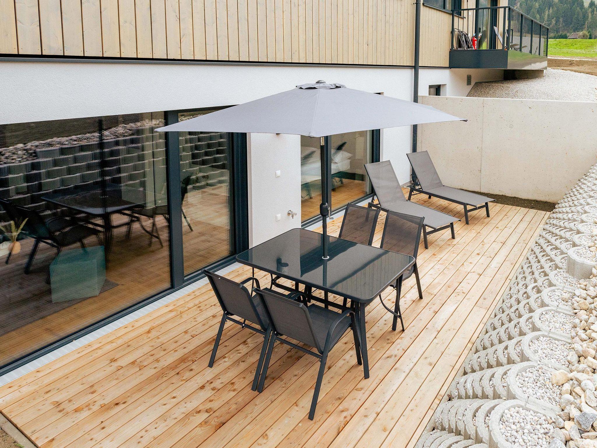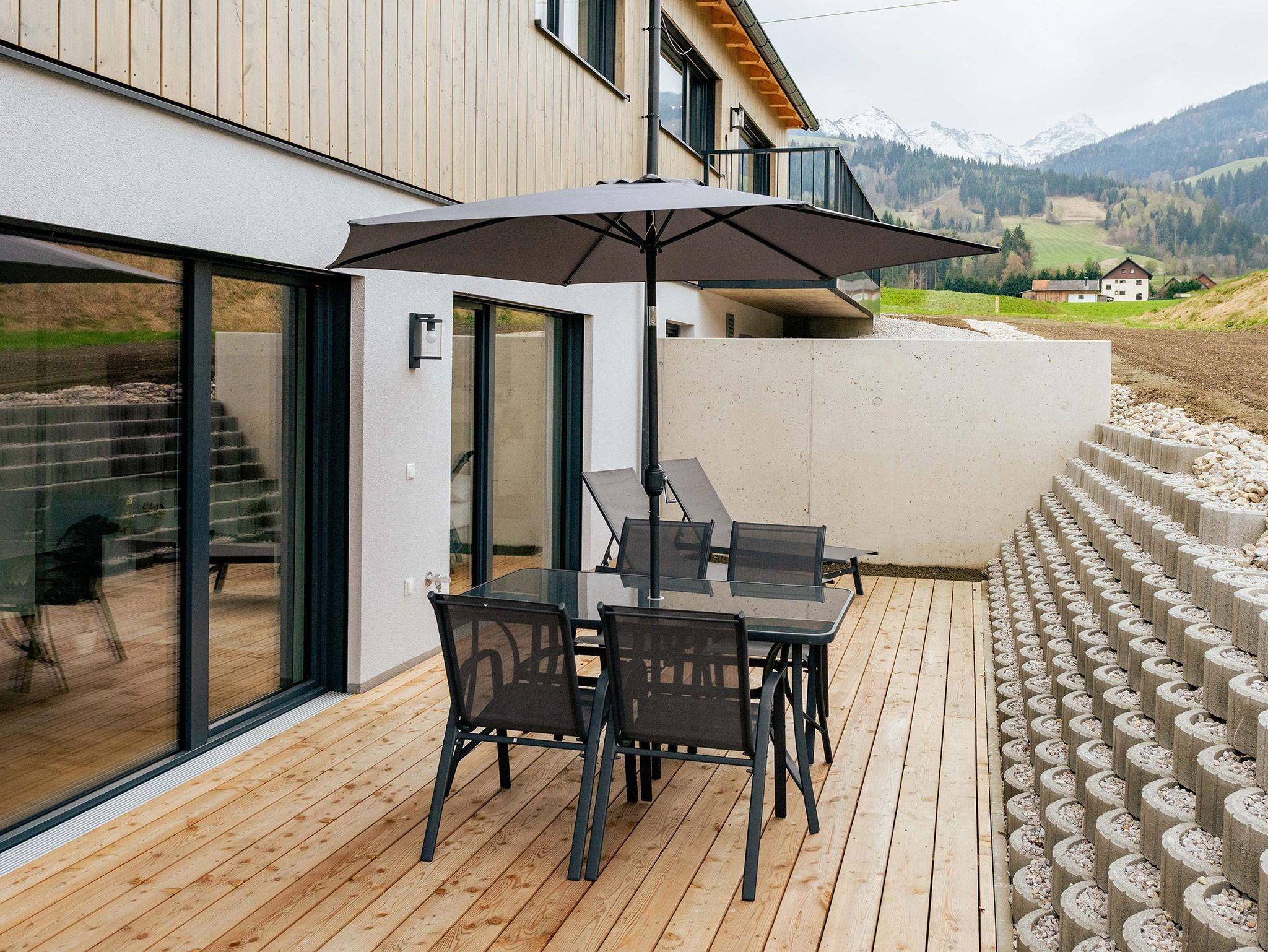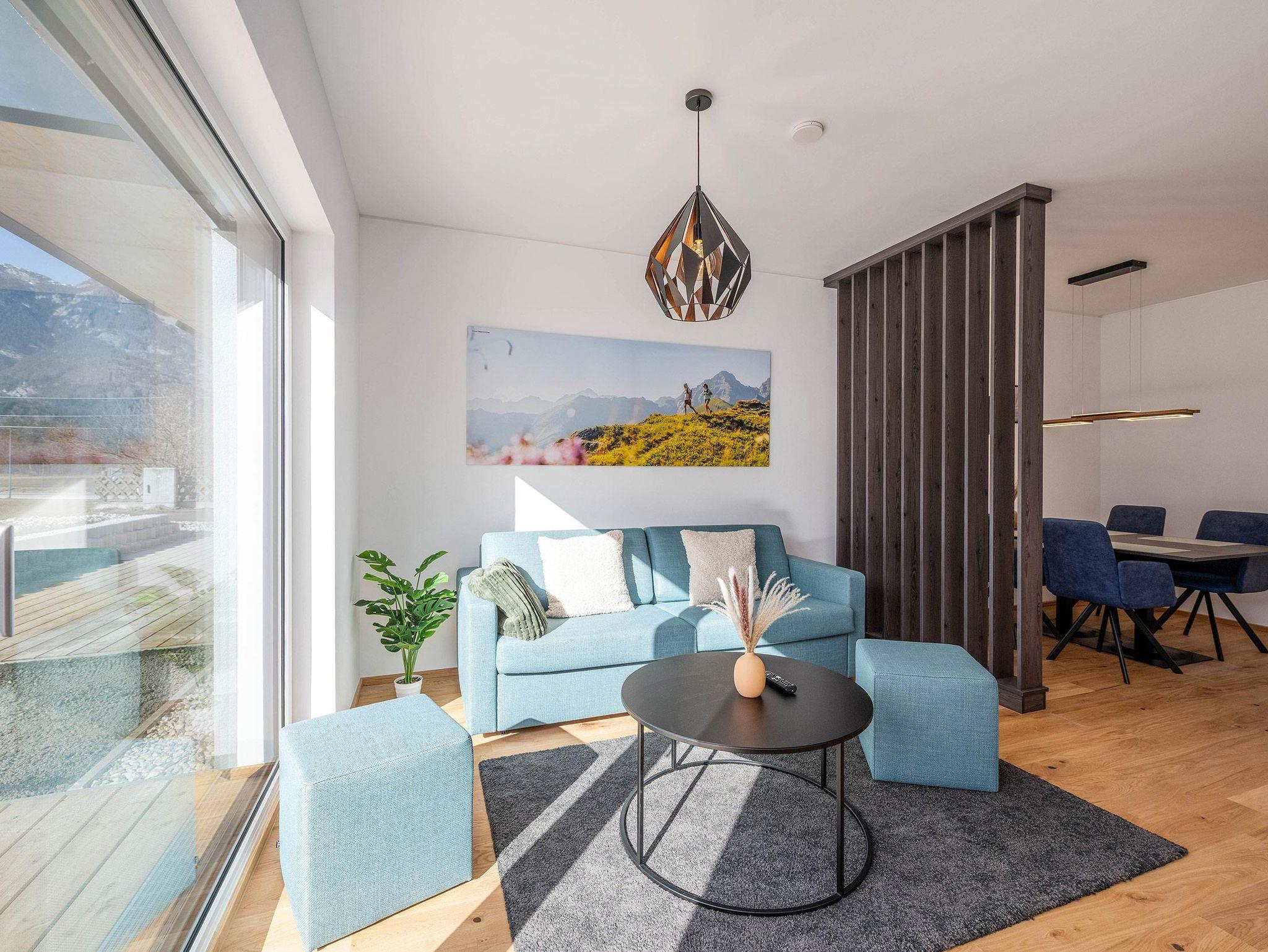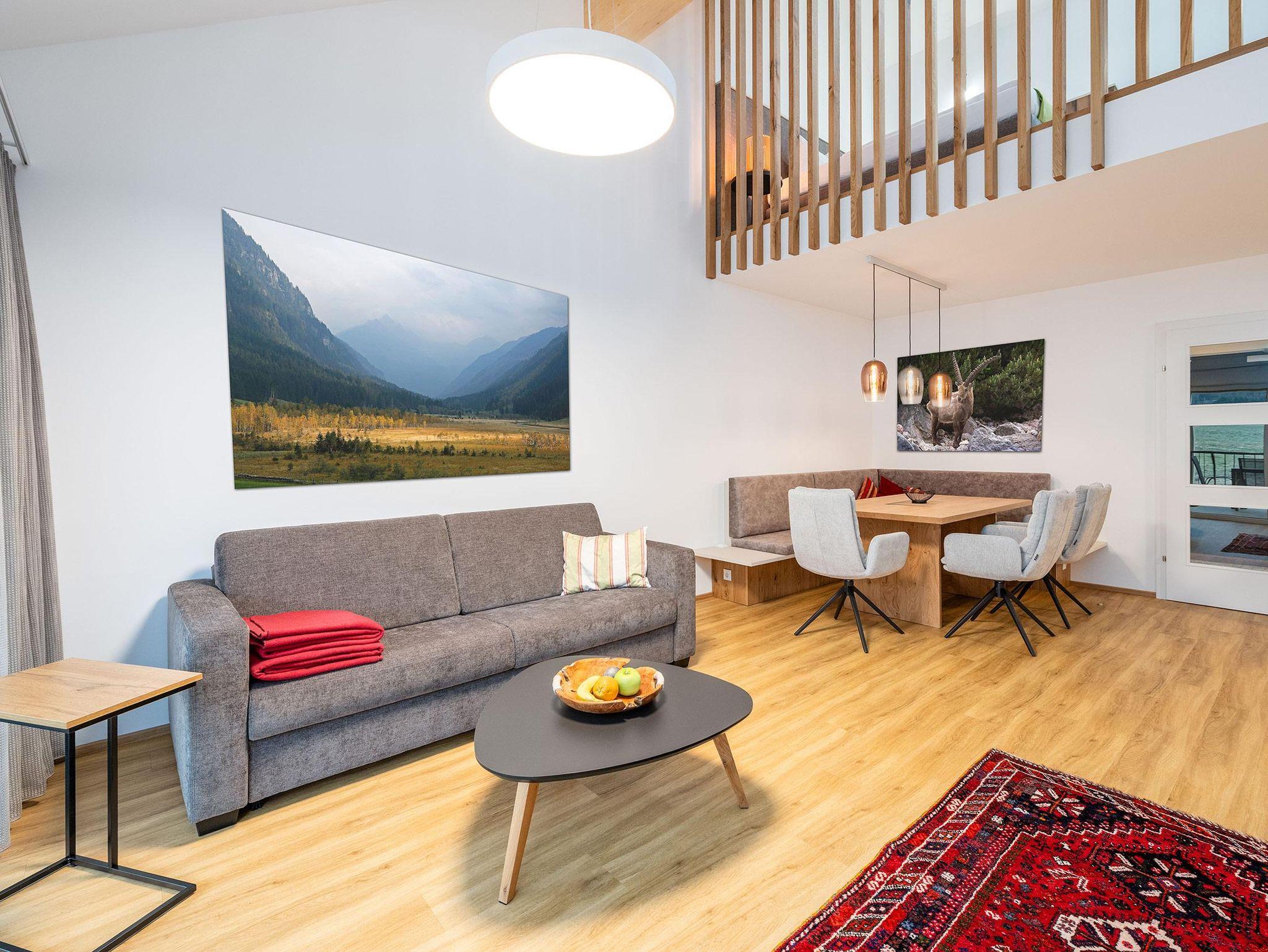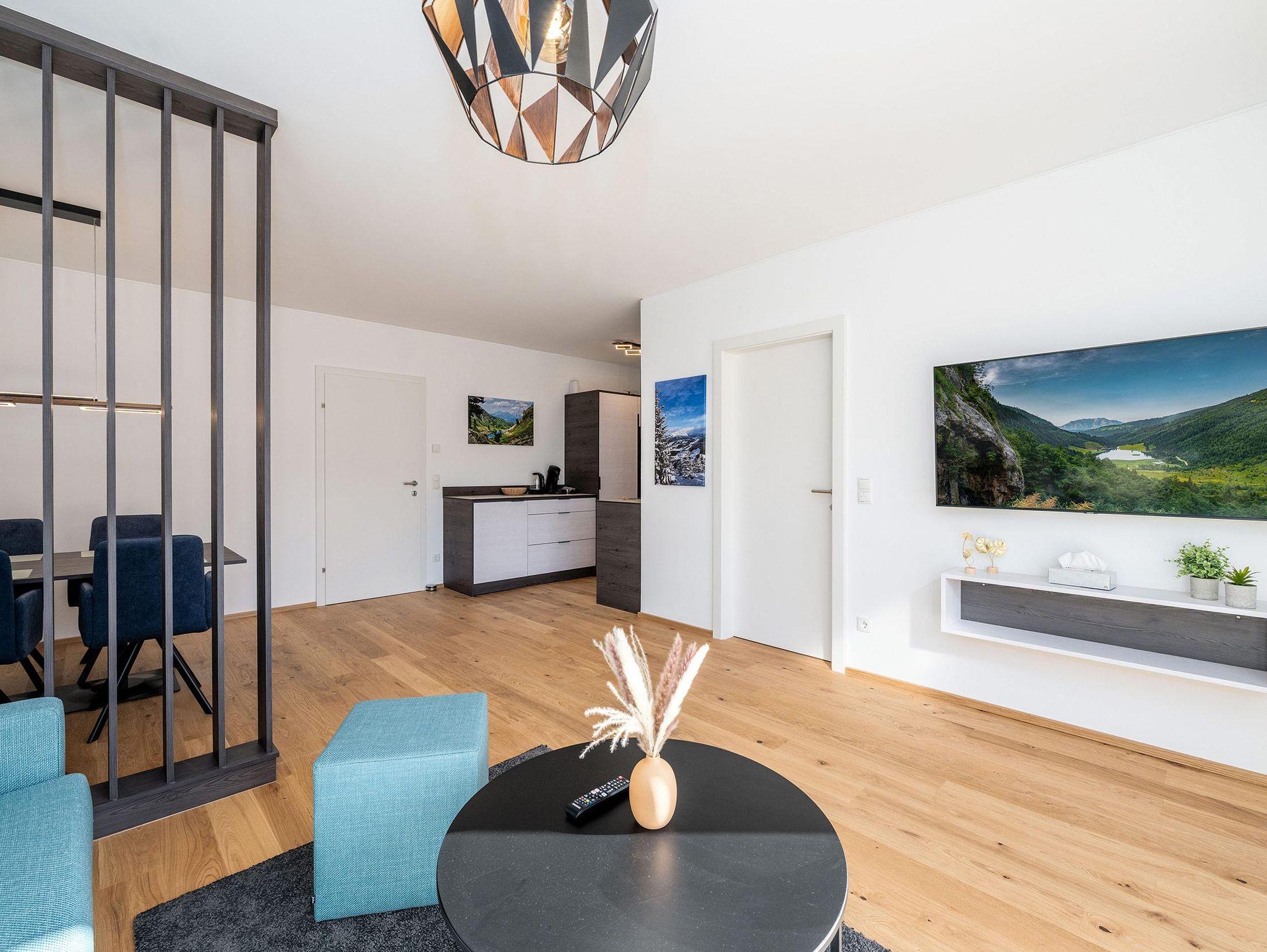 Das Apartment bietet Platz für bis zu 4 Personen und verfügt über ein gemütliches Doppelbett sowie ein hochwertiges Schlafsofa der österreichischen Qualitätsmarke JOKA. Eine private Terrasse, zwei Fernseher, eine Waschmaschine sowie ein Ski- und Fahrradraum sorgen für zusätzlichen Komfort während Ihres Aufenthalts.