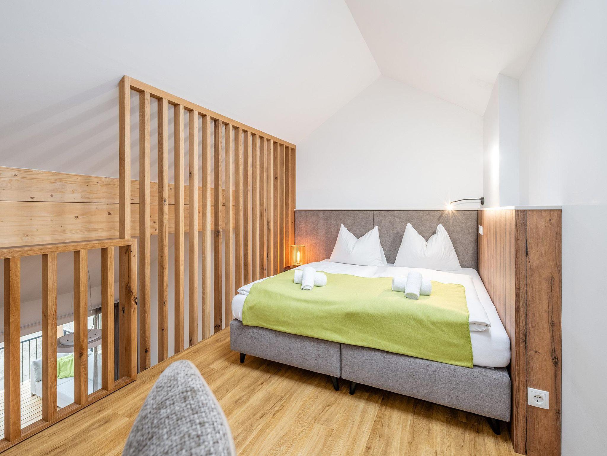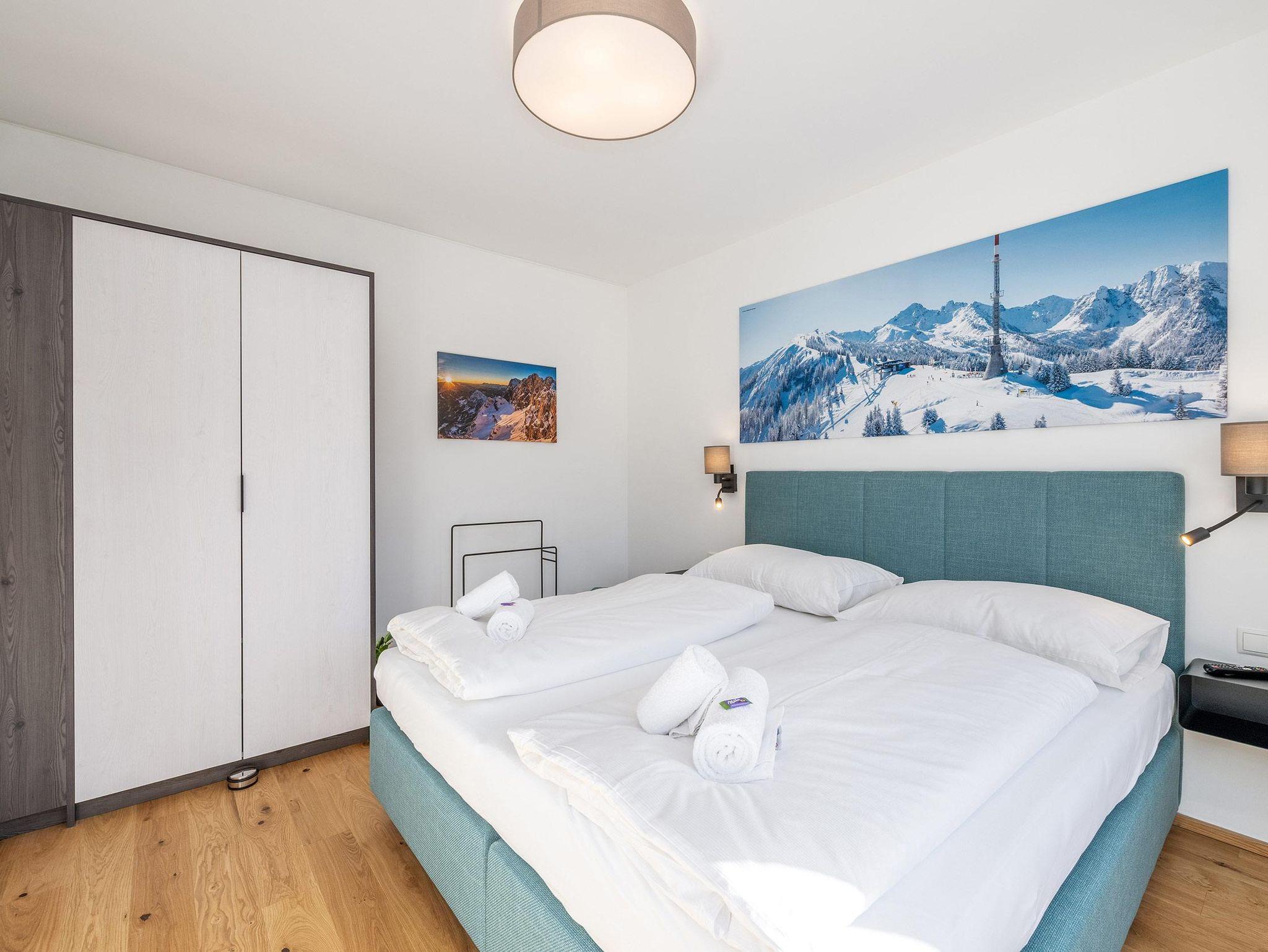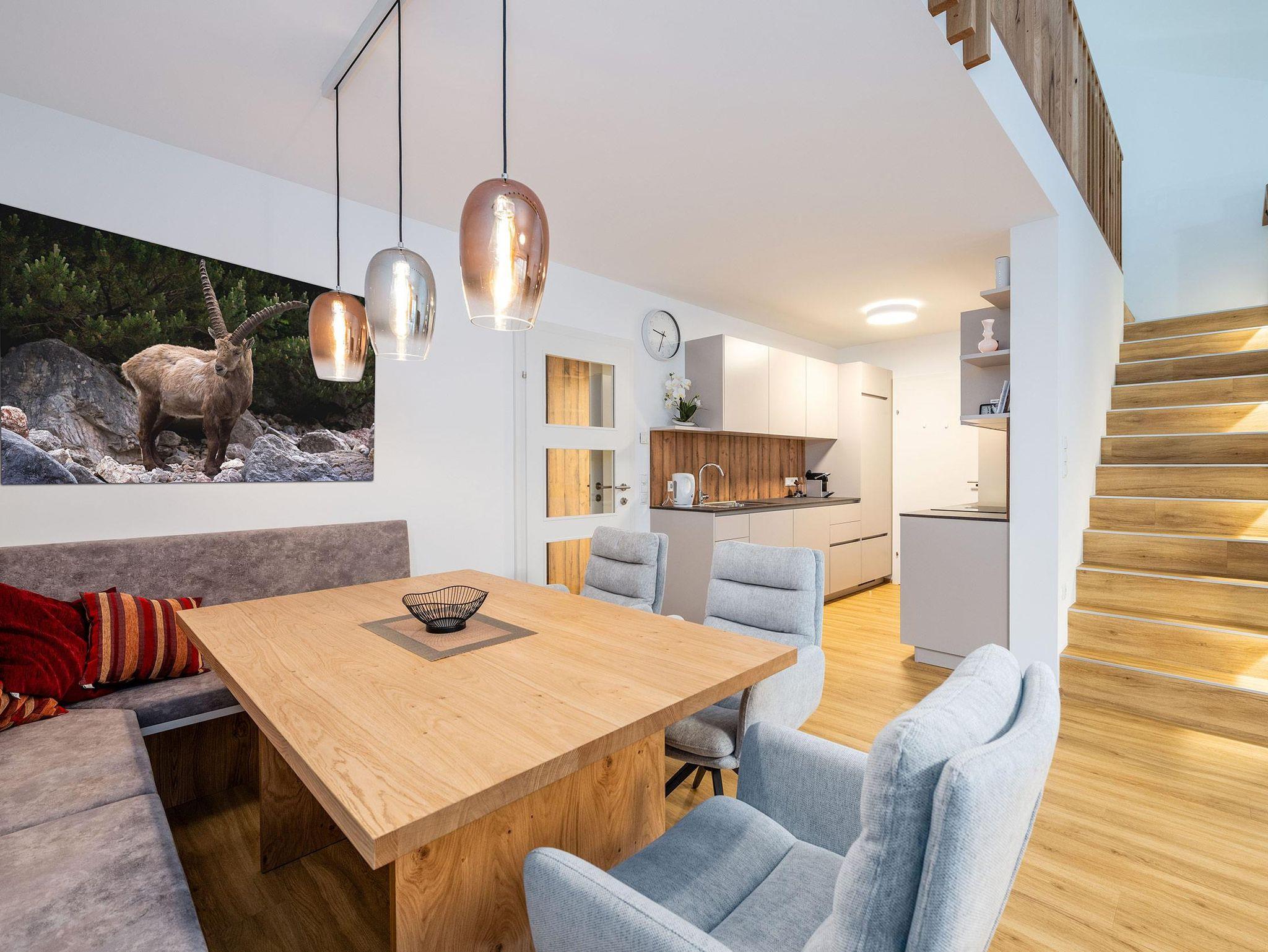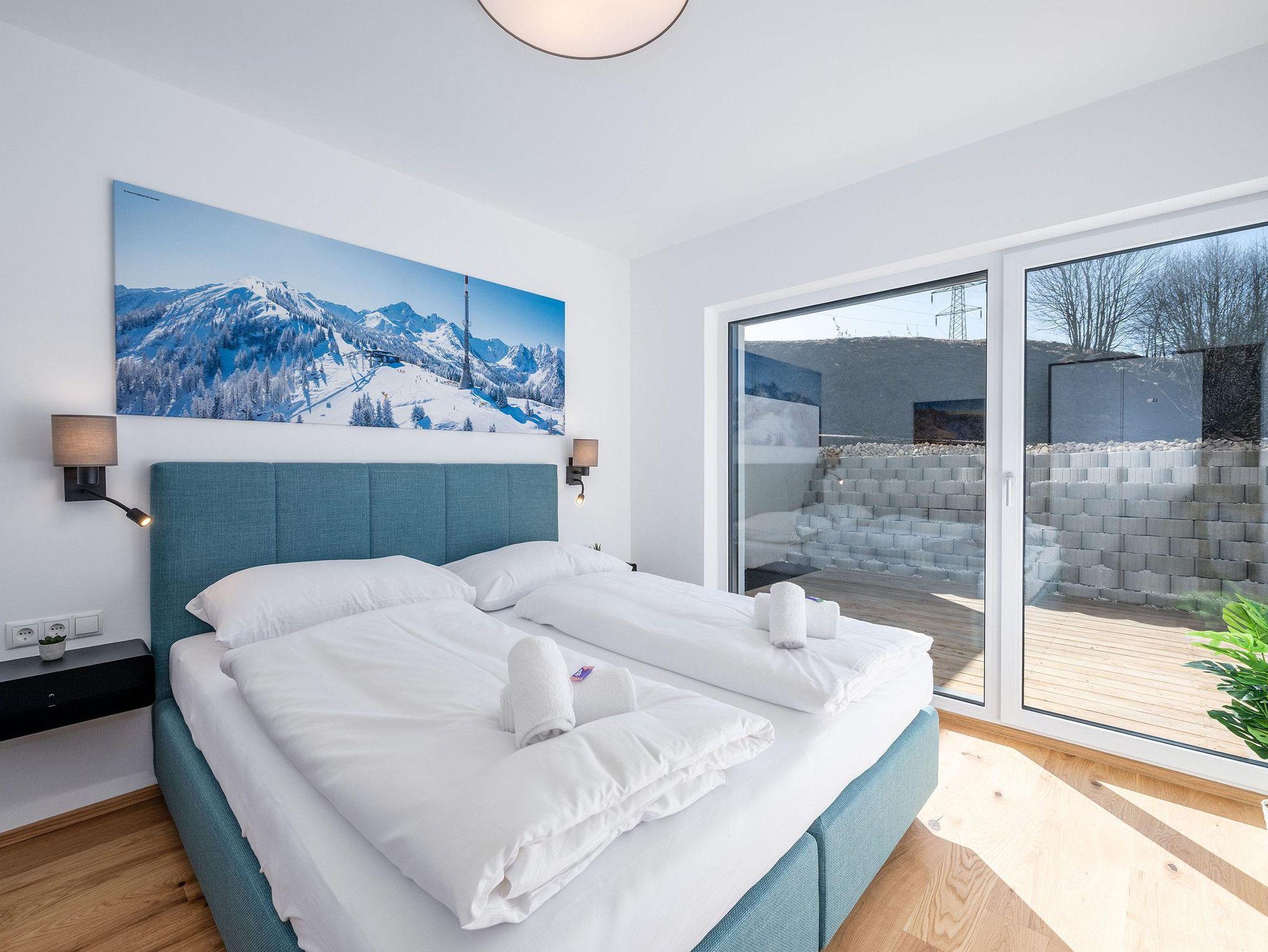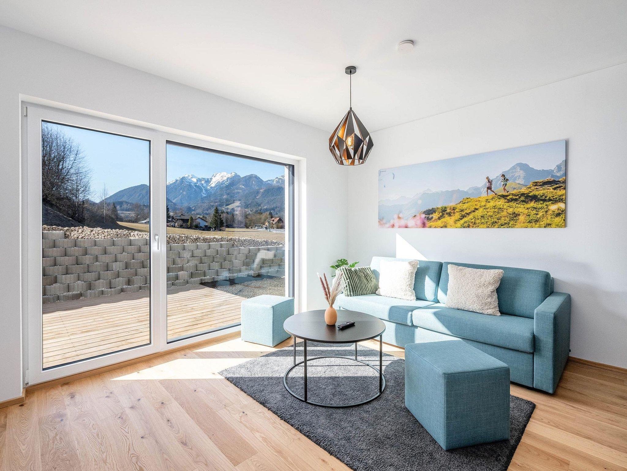 Die Apartments bieten – je nach Kategorie – Platz für Paare, Familien oder Gruppen und überzeugen mit durchdachten Grundrissen, hellen Wohnbereichen und einer hochwertigen Einrichtung. Großzügige Fensterflächen holen die Natur ins Innere, während private Balkone oder Terrassen dazu einladen, die frische Bergluft und den Blick ins Ennstal zu genießen.
