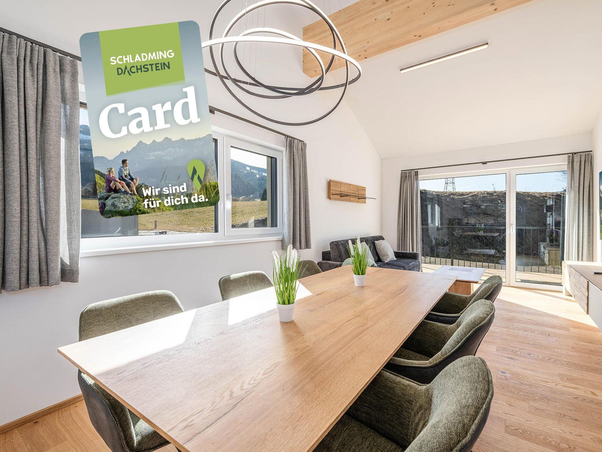 Auch in Sachen Lage lässt das Haus keine Wünsche offen: Ruhig gelegen und dennoch bestens angebunden erreichen Sie Bus- und Bahnverbindungen in wenigen Gehminuten. Der Hauser Kaibling als Einstieg in die 4-Berge-Skischaukel Schladming-Dachstein ist nur wenige Minuten entfernt und sowohl mit dem Auto als auch bequem mit dem Bus erreichbar.