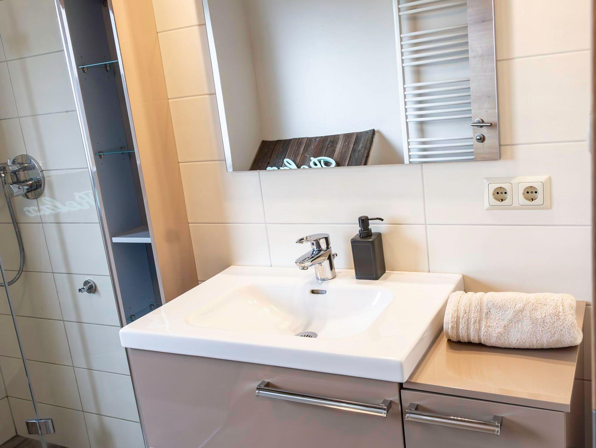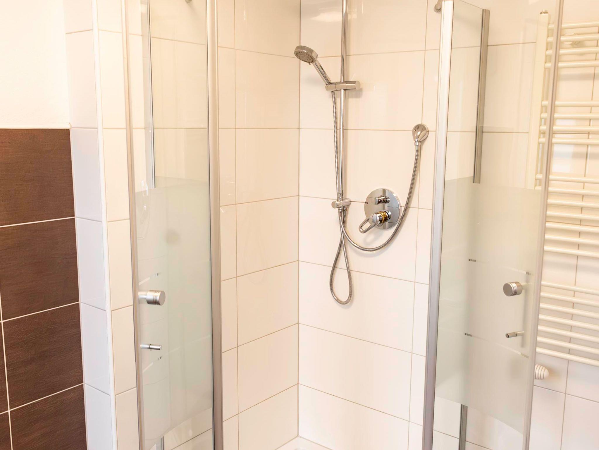 Unsere 60 m² großes Apartment 1 im Erdgeschoss bietet Platz für bis zu 4 Personen. Sie verfügt über 2 getrennte Schlafzimmer (jeweils mit Flat-TV) und eine voll ausgestattete Küche mit gemütlicher Essecke. Die Wohnung verfügt außerdem über ein Badezimmer mit großer Dusche und WC.