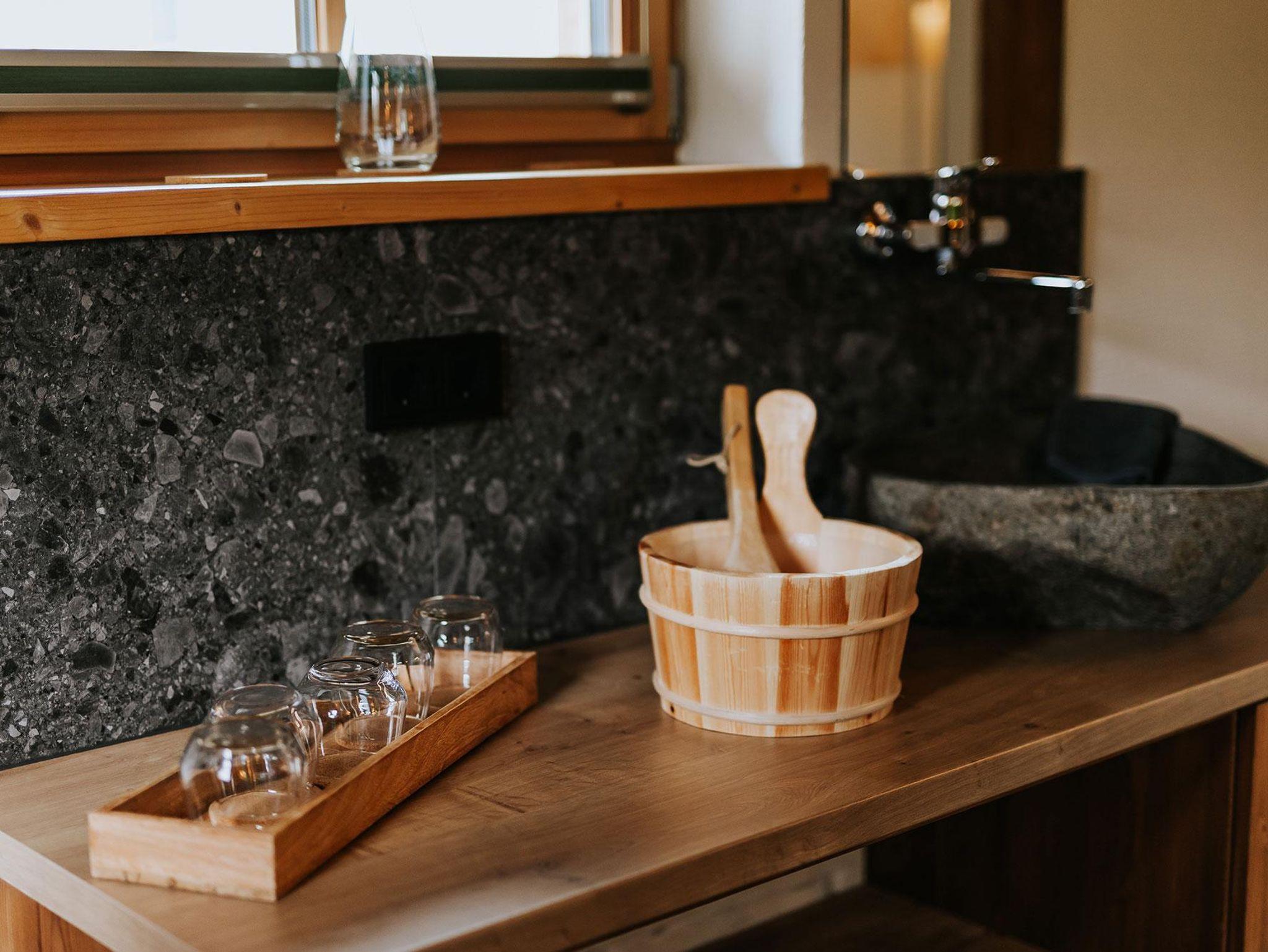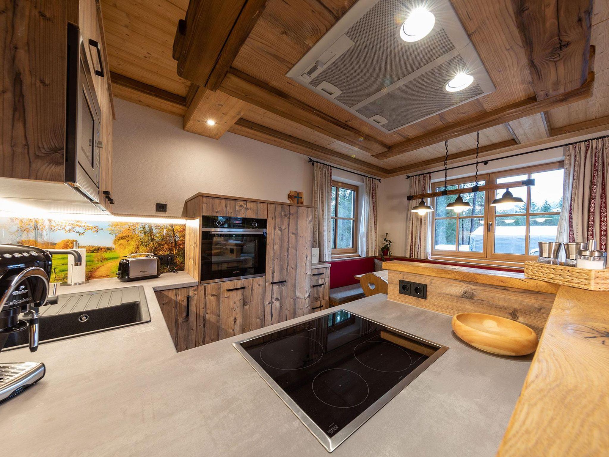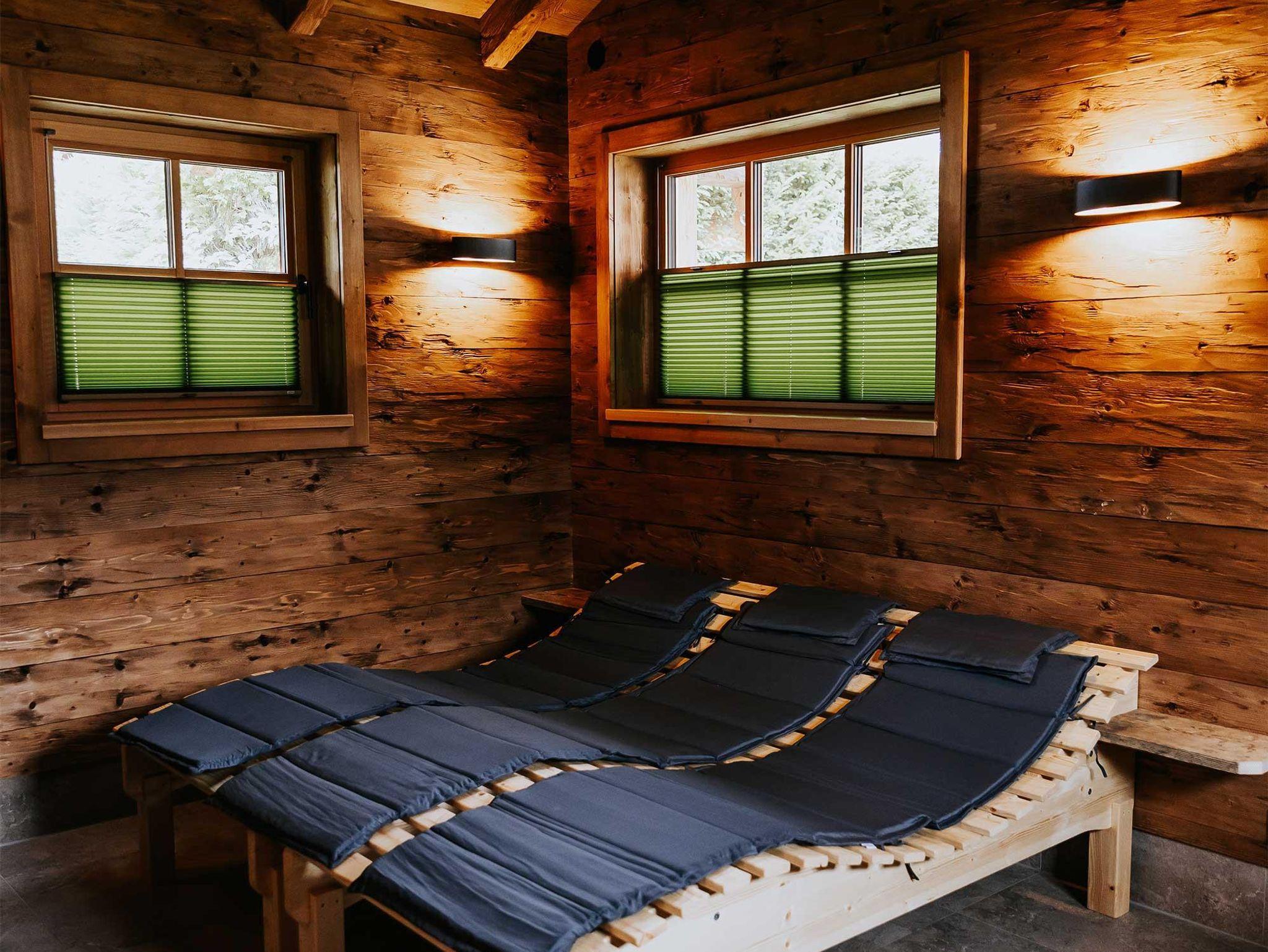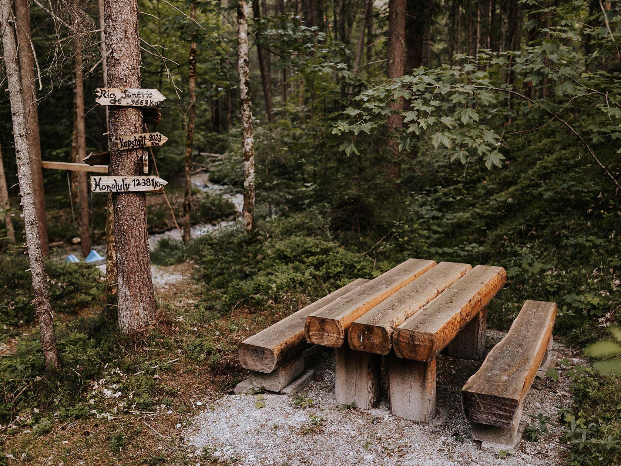 Im offenen Wohnbereich mit voll ausgestatteter Küche und gemütlichem Kachelofen lassen sich unvergessliche Momente mit Familie oder Freunden verbringen. Für erholsame Stunden sorgt das private Saunahaus mit eigener Dusche und WC. In den warmen Monaten laden die große Terrasse und der angrenzende Garten zu entspannten Grillabenden ein, während Kinder sich am eigenen Spielplatz, beim Slacklinen, Fußballspielen oder am kleinen Bach austoben können. Ein kinderwagenfreundlicher Waldweg führt in wenigen Minuten zur idyllischen Kneippanlage.