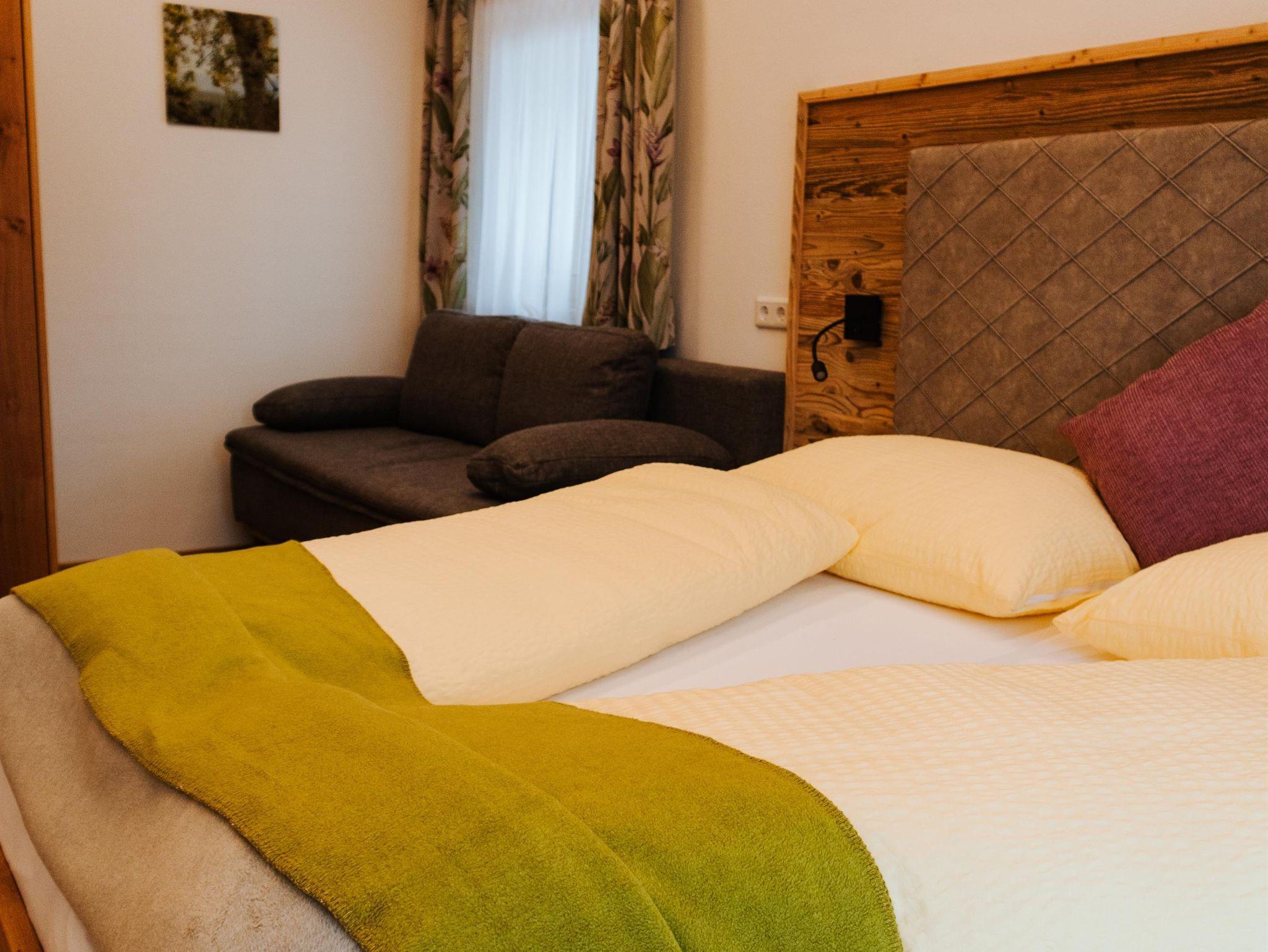 Am Bauernhof erwarten Sie Doppel- und Dreibettzimmer. Die Nichtraucherzimmer sind allesamt mit Dusche, WC, Sat-TV und gratis W-Lan sowie teilweise Balkon ausgestattet. Von den Zimmern erwartet Sie ein atemberaubender Blick auf die heimische Bergwelt oder in unseren liebevoll gepflegten Garten. Als besonderes Service steht pro Zimmer ein überdachter Carport-Parkplatz zur Verfügung. Am Morgen erwartet Sie ein herzhaftes und ausgiebiges Frühstück vom Buffet, durch das Sie gut gestärkt in Ihren Urlaubstag starten.