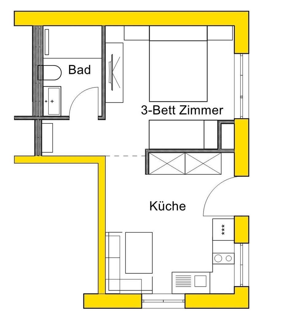 Unser gemütliches Appartement 2 bietet auf ca. 32 m² Platz für bis zu 3 Personen. Ausgestattet ist es mit einem Schlafzimmer, einem großzügigen Bad und einer Küche. Diese verfügt über einen gemütlichen Essbereich.Raumaufteilung: ein 3-Bett-Zimmer (Doppelbett und Zusatzbett). Weiters steht eine gut ausgestattete Küche mit gemütlichem Essbereich sowie ein Bad (mit Dusche und WC) zur Verfügung. Vorzimmer mit Garderobe, Sat-TV und gratis W-Lan.
