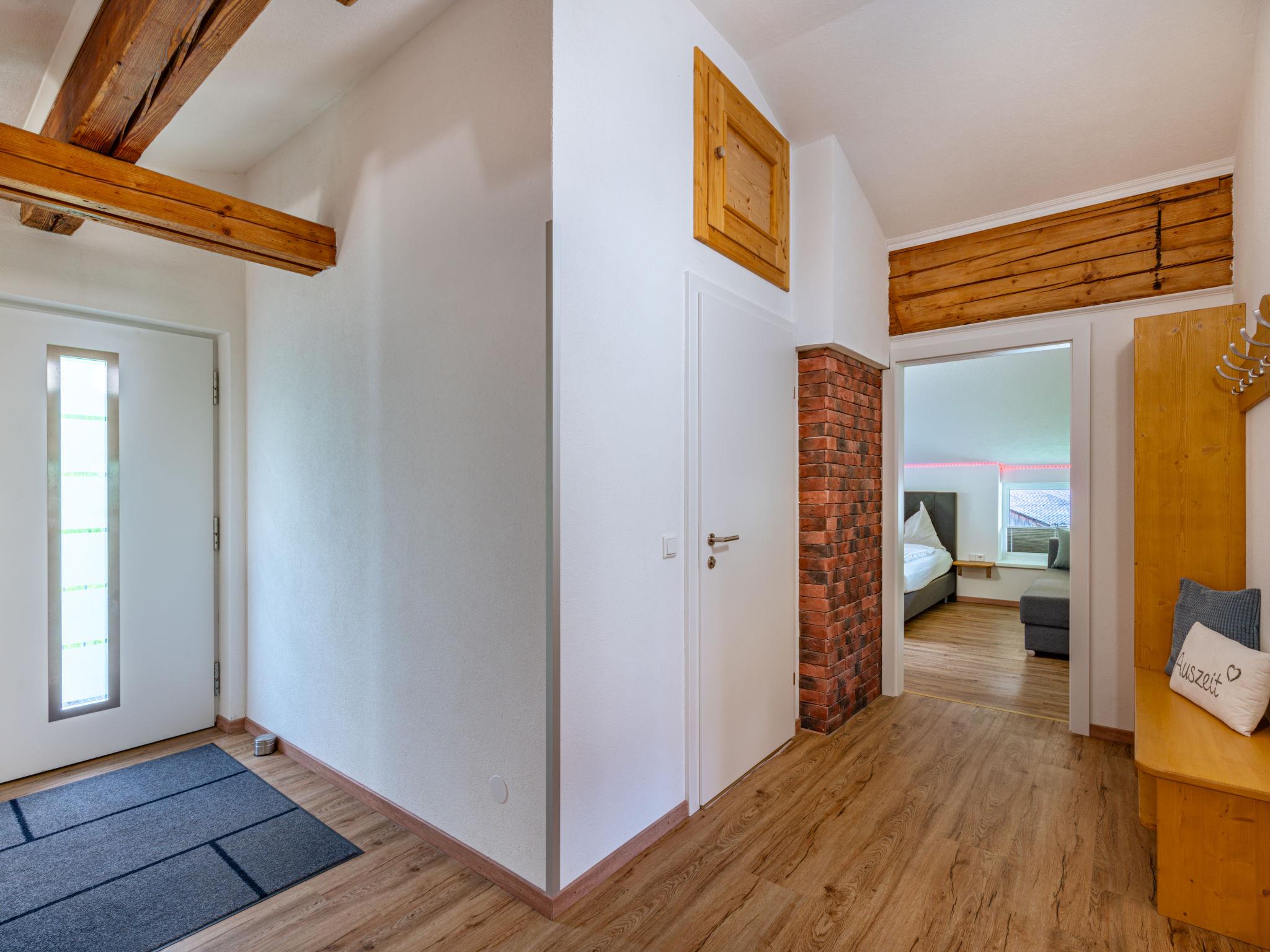 "Mawa", 3-room apartment 106 m2, on the top floor. Object suitable for 6 adults + 2 children. Partly with sloping ceilings, cosy furnishings: living/sleeping room with 1 double sofabed, dining table, satellite TV and international TV channels (flat screen). 2 rooms, each room with 1 sofabed, 1 double bed, satellite TV and international TV channels (flat screen). Open kitchen (oven, dishwasher, 4 ceramic glass hob hotplates, toaster, kettle, electric coffee machine). Shower, sep. WC, double hand-basin. Heating. Parquet floors. Beautiful panoramic view of the mountains and the valley. Facilities: Internet (WiFi, free). Please note: non-smokers only. Note: Access via external spiral staircase or internally.