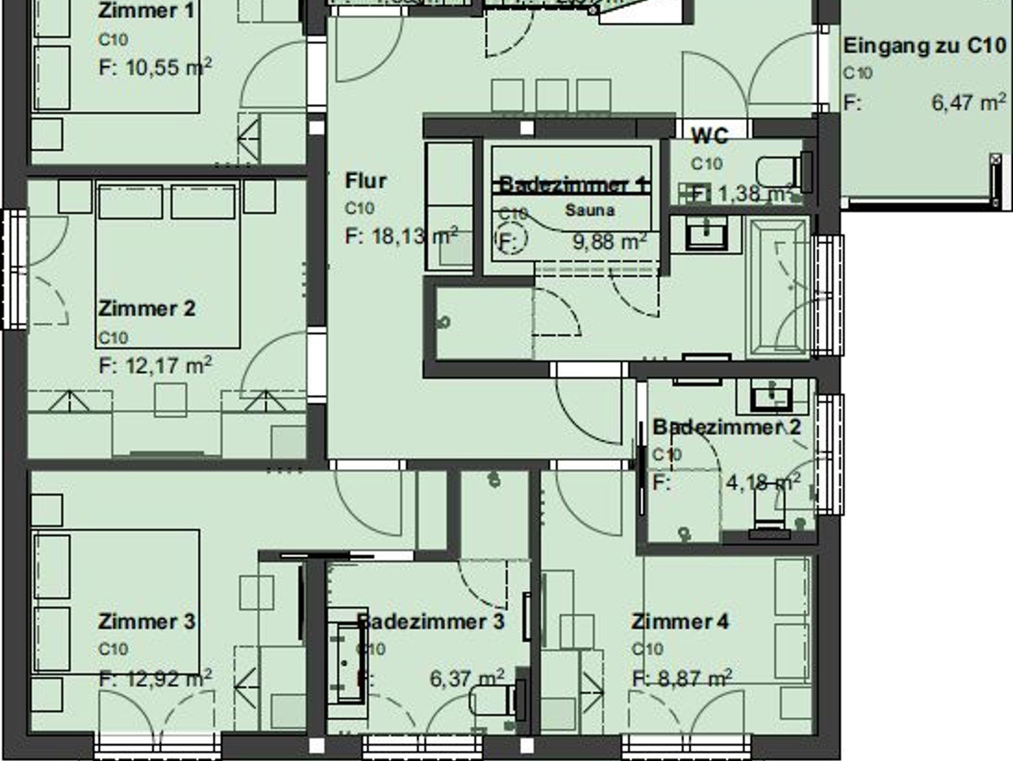 • drei Badezimmer mit Dusche oder Badewanne und gesamt 4 WC´s