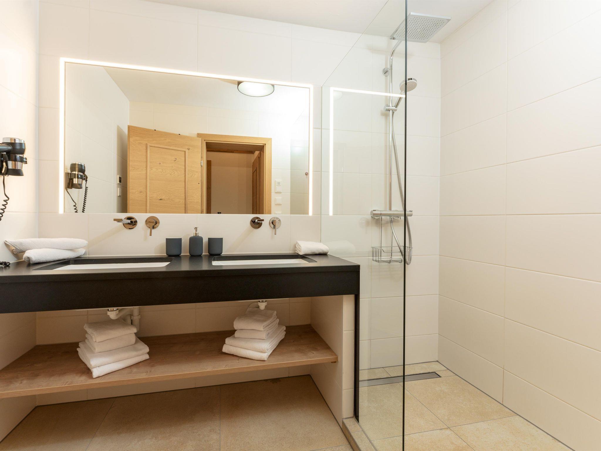 - 1 Bad mit Dusche, Doppelwaschtisch und Fön