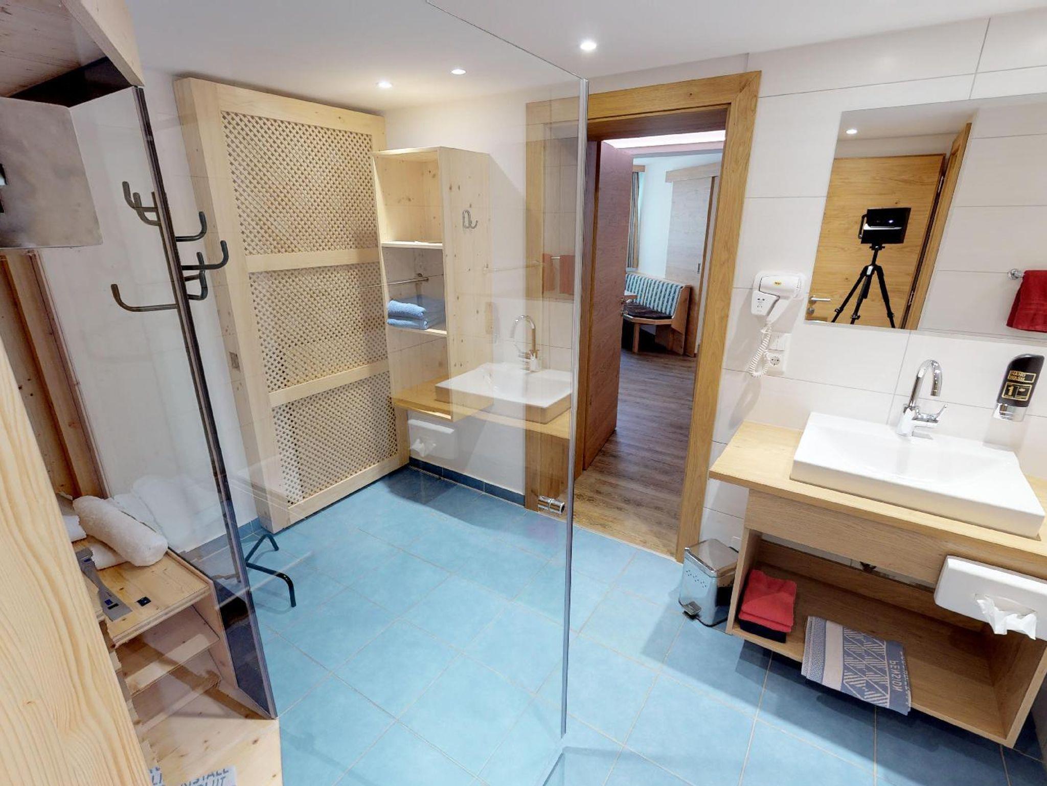 • großzügige Badezimmer mit Waschbecken und Infarotkabine