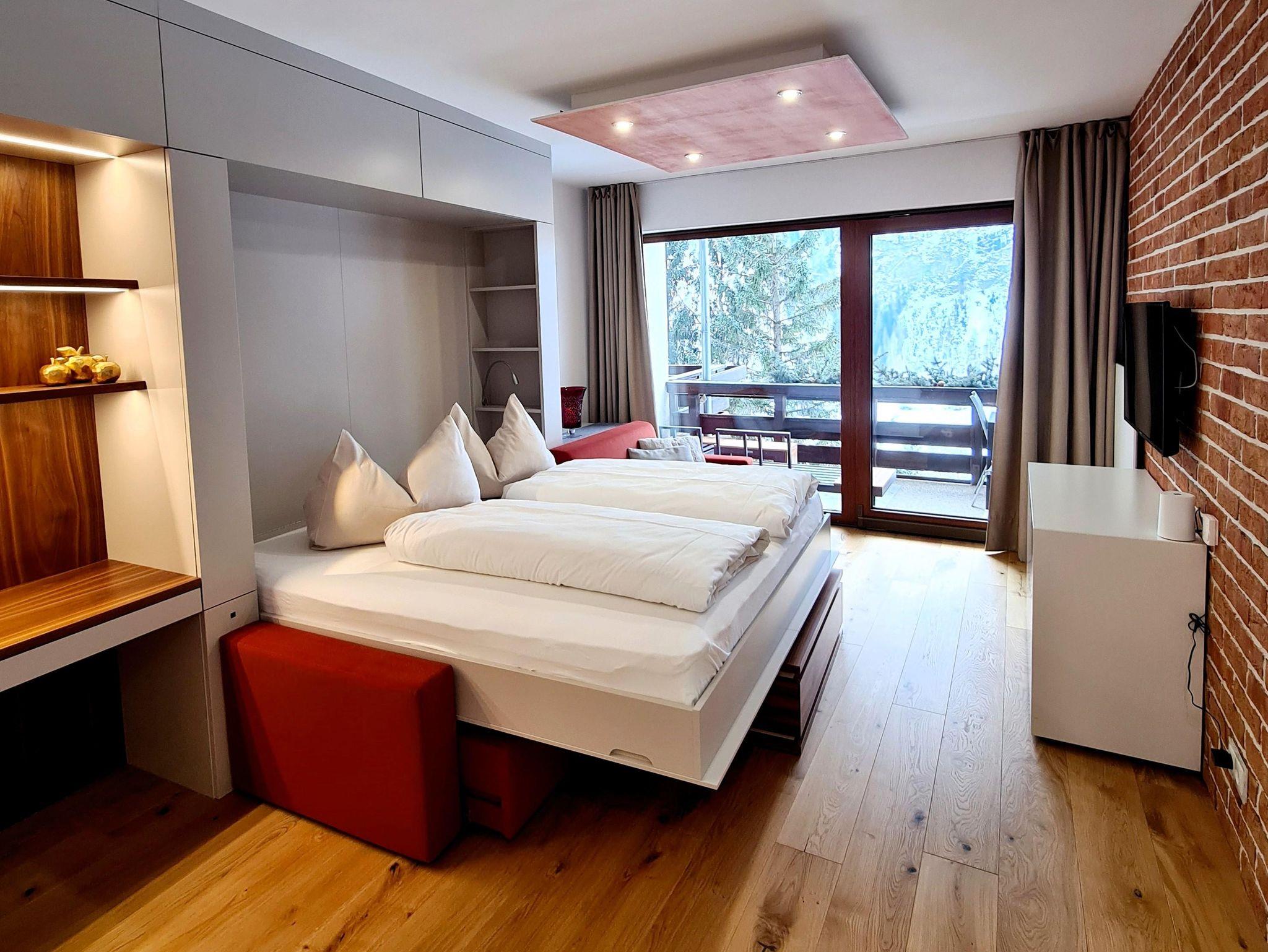 Liebevoll eingerichtet bietet dieses Raumwunder ausreichend Platz sowohl für märchenhafte Träume im elektronisch absenkbaren Bett als auch für entspannte Kuschelstunden auf der gemütlichen Couch, wo Sie nach einem paradiesischen Skitag oder einer traumhaften Wanderung relaxen können.