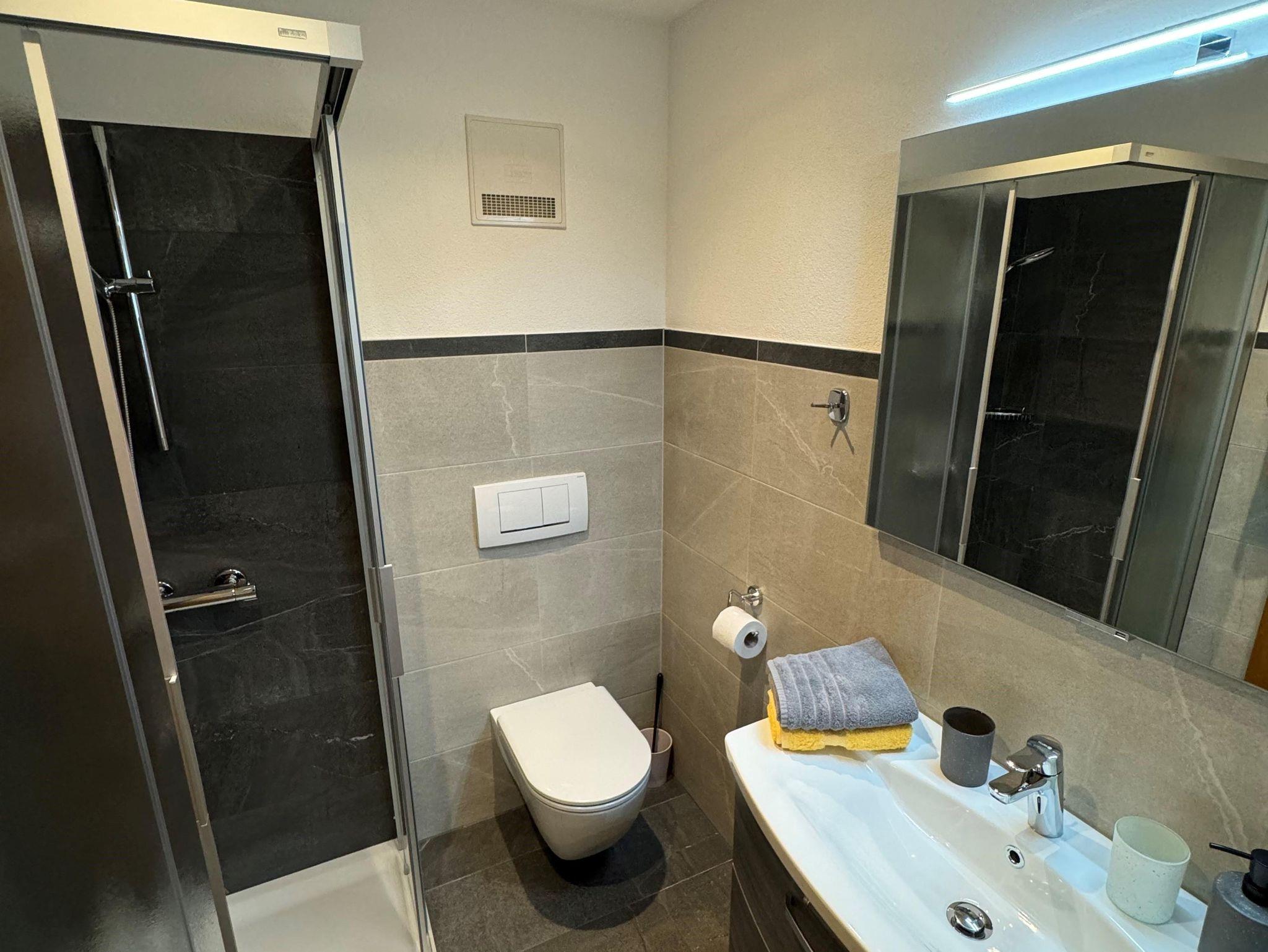Unsere gemütliche Ferienwohnung Nr. 5 besteht aus einem kleinen Vorraum, einem Schlafzimmer (Doppelbett und Couchbett), separter Küche mit Sitzecke, Dusche/WC und einer großen Terrasse mit Blick zum Großglockner!