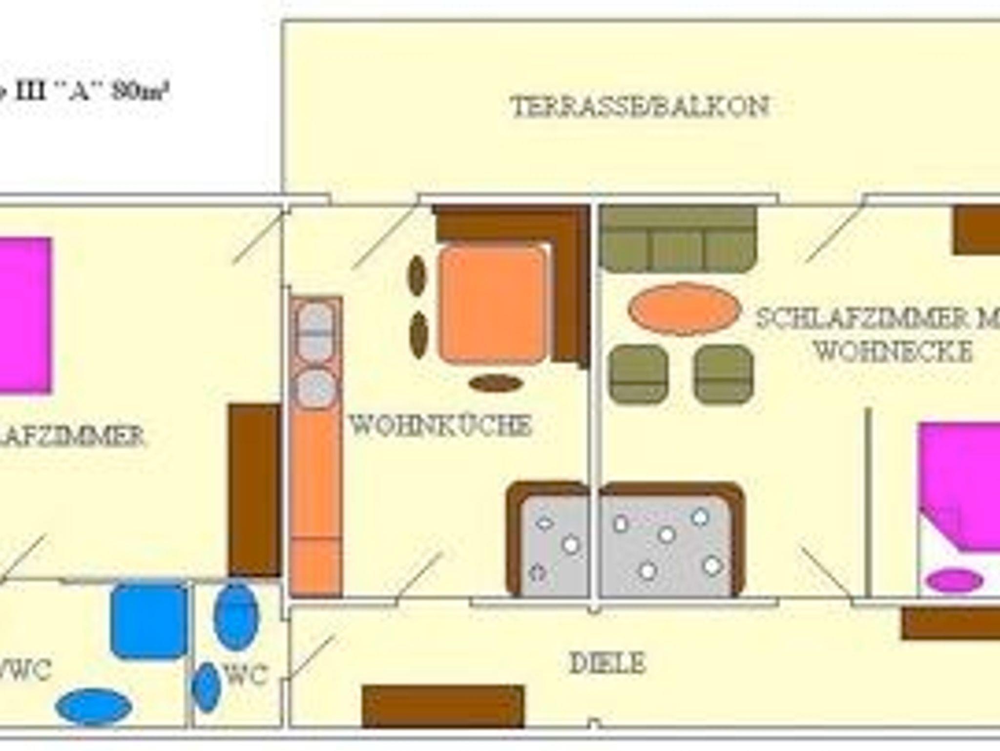 Ferienwohnung „A“ (Franz) mit zwei Schlafzimmern ca. 80m² Gemütliche Ferienwohnung mit Kachelofen, Balkon, zwei Schlafzimmern, eine große Wohnküche mit Spülmaschine, E-Herd, Backofen, Kühl/Gefrierkombination, Kaffeemaschine. TV/Sat, zwei WC, ein Badezimmer/Dusche;