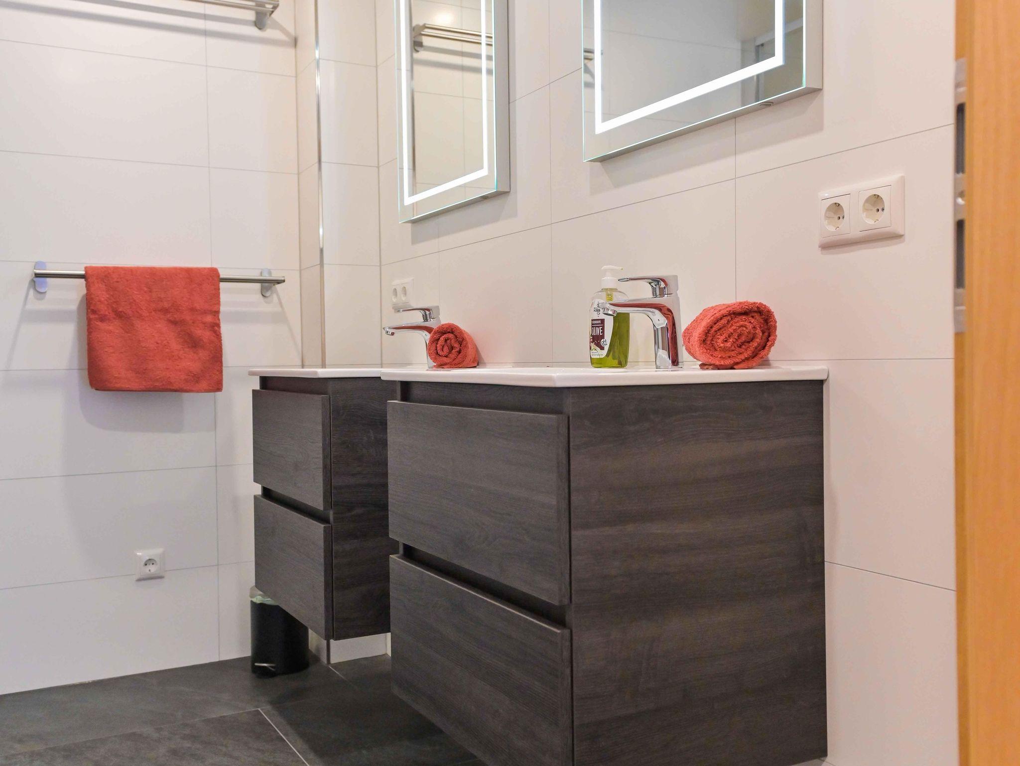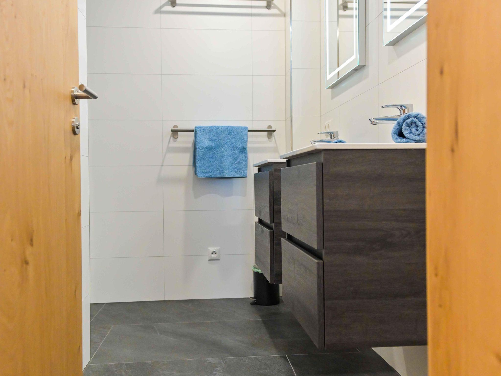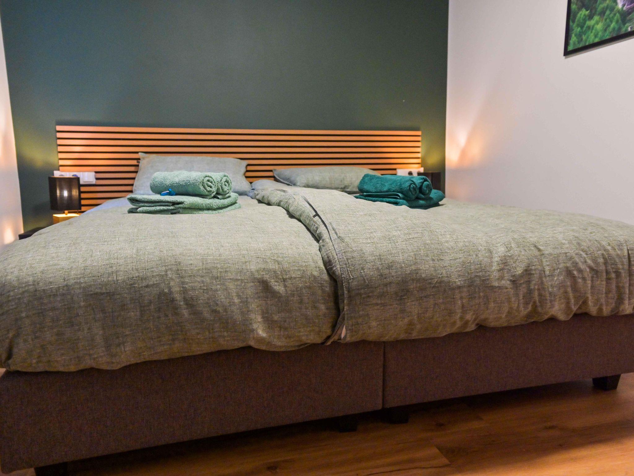 Auf der mittleren zwei Etagen des Hauses Traumhorst befindet sich die Wohnung Alpin von über 110 m². Diese Wohnung ist mit seinen vier Schlafzimmern, zwei Bädern und zwei Toiletten für 8 bis 10 Personen geeignet. Drei der vier Schlafzimmer verfügen über ein Kingsize-Bett von 210cm Länge. Das vierte Schlafzimmer ist mit zwei Einzelbetten ausgestattet. In zwei Schlafzimmern kann ein zusätzliches Bett aufgestellt werden, wodurch insgesamt Platz für 10 Personen ist. Beide Badezimmer verfügen über eine geräumige Regendusche und jeweils zwei Waschbecken. Die große Küche ist mit allen modernen Annehmlichkeiten wie einem Backofen und einem Geschirrspüler ausgestattet, einschließlich einer Waschmaschine. Die gemütliche Sitzecke eignet sich sowohl für die Essensmomente, als auch für ganze Abende Spiele spielen. Vom Wohnbereich aus gehen Sie direkt auf die Sonnenterasse von nicht weniger als 70 m², wo Sie die schöne Aussicht auf das Möltall genießen können. Wohnung Alpin hat auch eine gemütliche Spielecke für Kinder.