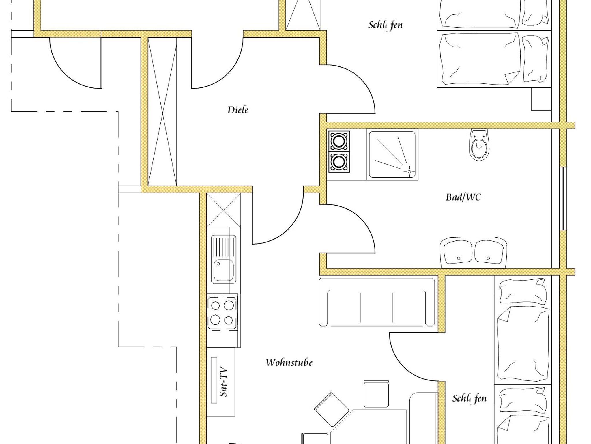 WLAN-Anschluss frei verfügbar. Sat-TV.