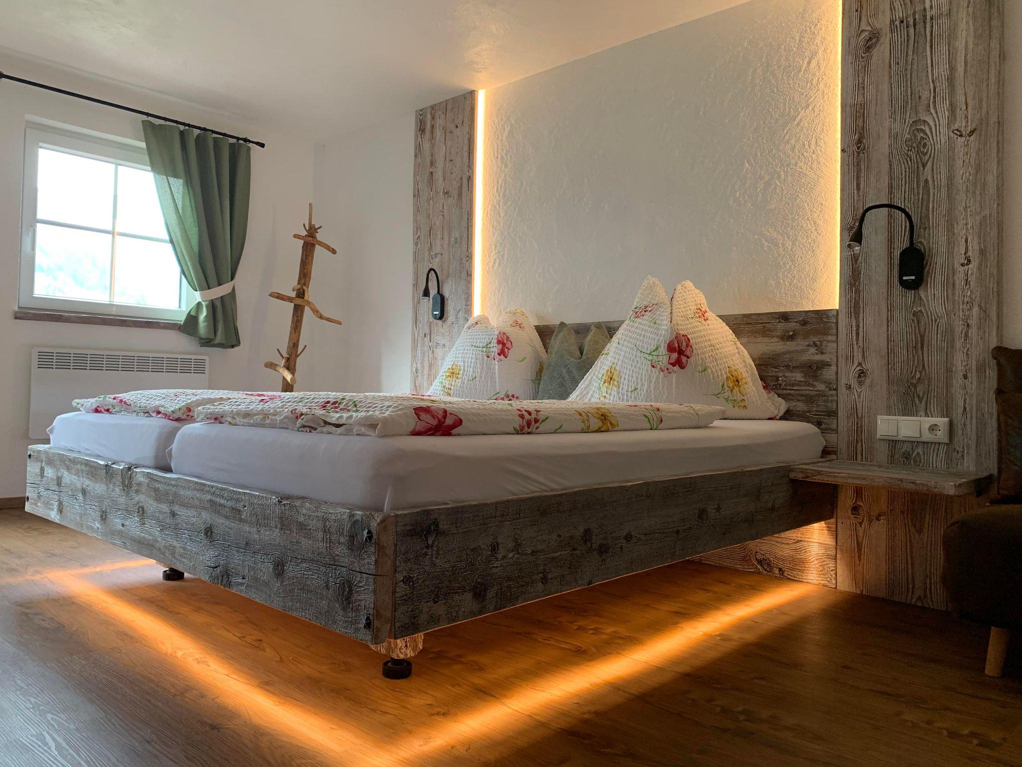 Der Ferienhof ist wie folgt ausgestattet: Erdgeschoß: großer Vorraum mit Garderobe; Wohnküche mit E-Herd + Backrohr, Kühlschrank, Holzherd, Geschirrspüler, Koch- und Essgeschirr und Sitzmöglichkeiten; neue gemütliche Altholz-Bauern-Stube mit Sitzecken und Satelliten-TV; 1 WC; Heizraum mit Schischuhtrockner. Erster Stock: Vorraum; 1 Doppelzimmer, 1 Doppelzimmer mit Einzelschlafsofa, 1 Doppelzimmer mit Doppelbett und 2 Einzelschlafsofas - alle 3 Zimmer sind komplett neu eingerichtet und mit WC, Dusche, TV und Balkon ausgestattet. Zweiter Stock: 1 WC; 1 Badezimmer mit Dusche, Badewanne und Waschbecken; 2 Einzelzimmer, 2 kleine Doppelzimmer (Queensize Bett), 1 Doppelzimmer und 1 Dreibettzimmer (Doppelbett, Einzelschlafsofa), alle (bis auf 1 EZ) ausgestattet mit Waschbecken; Zimmer teilweise mit Balkon.