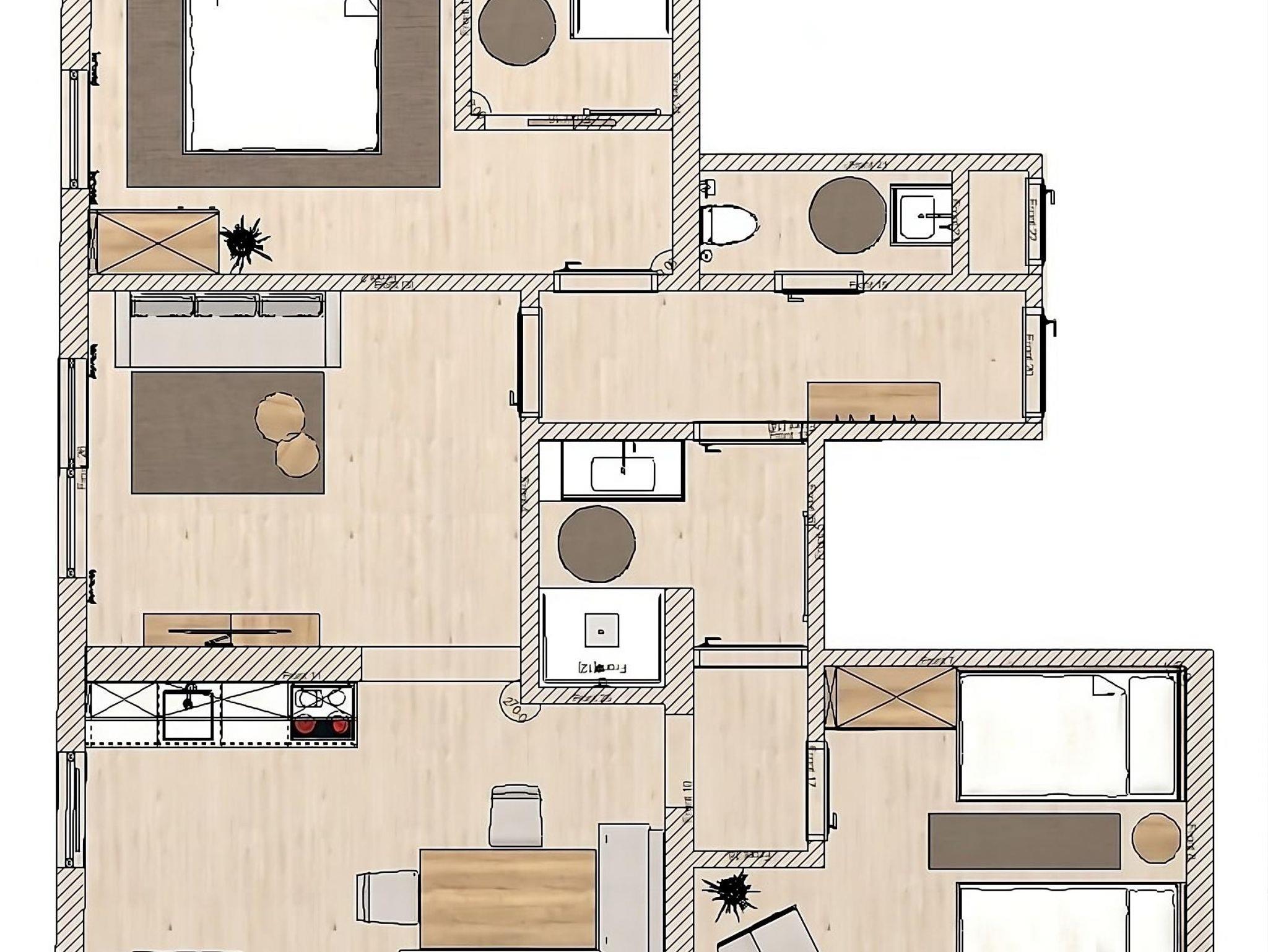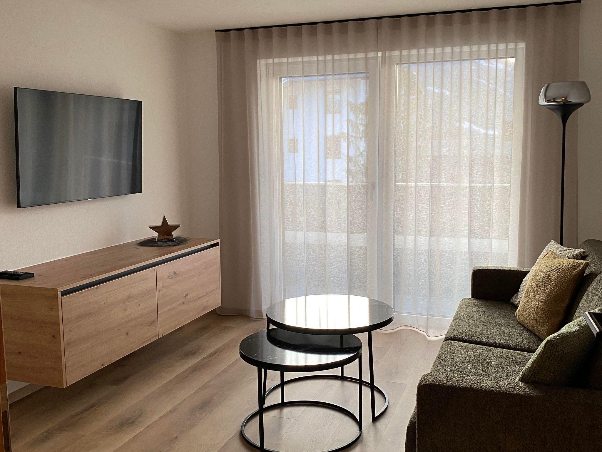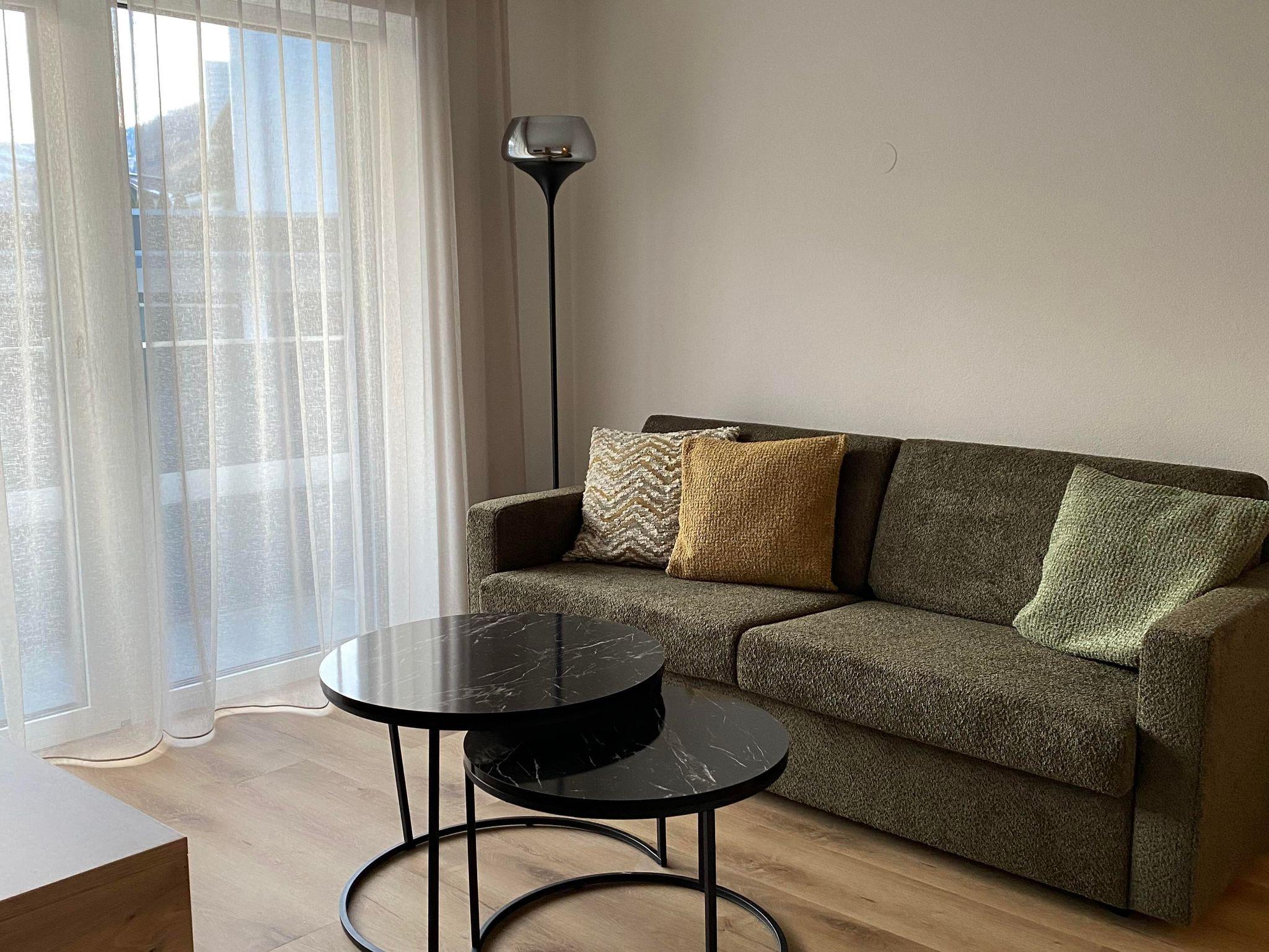 Modernes, neu renoviertes Appartement mit 2 Schlafzimmern, eigenem Wohnzimmer mit ausziehbarer Schlafcouch, gut ausgestatteter Küche, 2 Bäder, 1 seperates WC und Balkon mit Bergblick. Ideal für 2 bis 6 Personen - stilvoll und komfortabel.