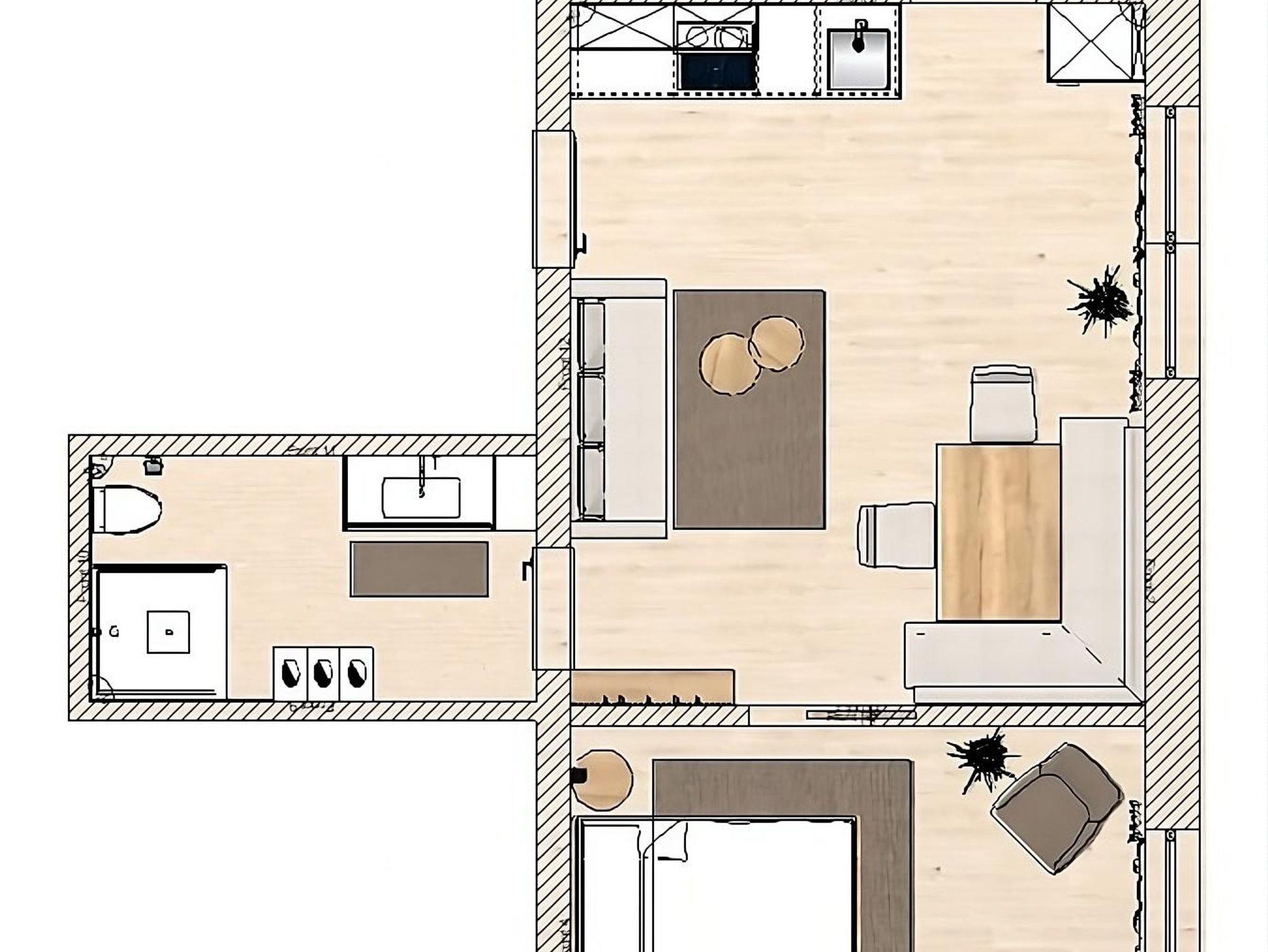 Renoviertes, stilvoll eingerichtetes Appartement mit Wohn-/Essbereich mit einer ausziehbaren Schlafcouch. Gut ausgestatte Küche, ein modernes Bad, ein gemütliches, seperates Schlafzimmer und 1 Balkon bieten Platz zum Entspannen für 2 bis 4 Personen.
