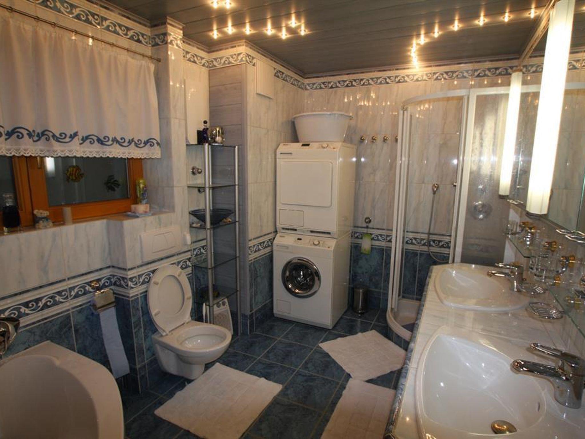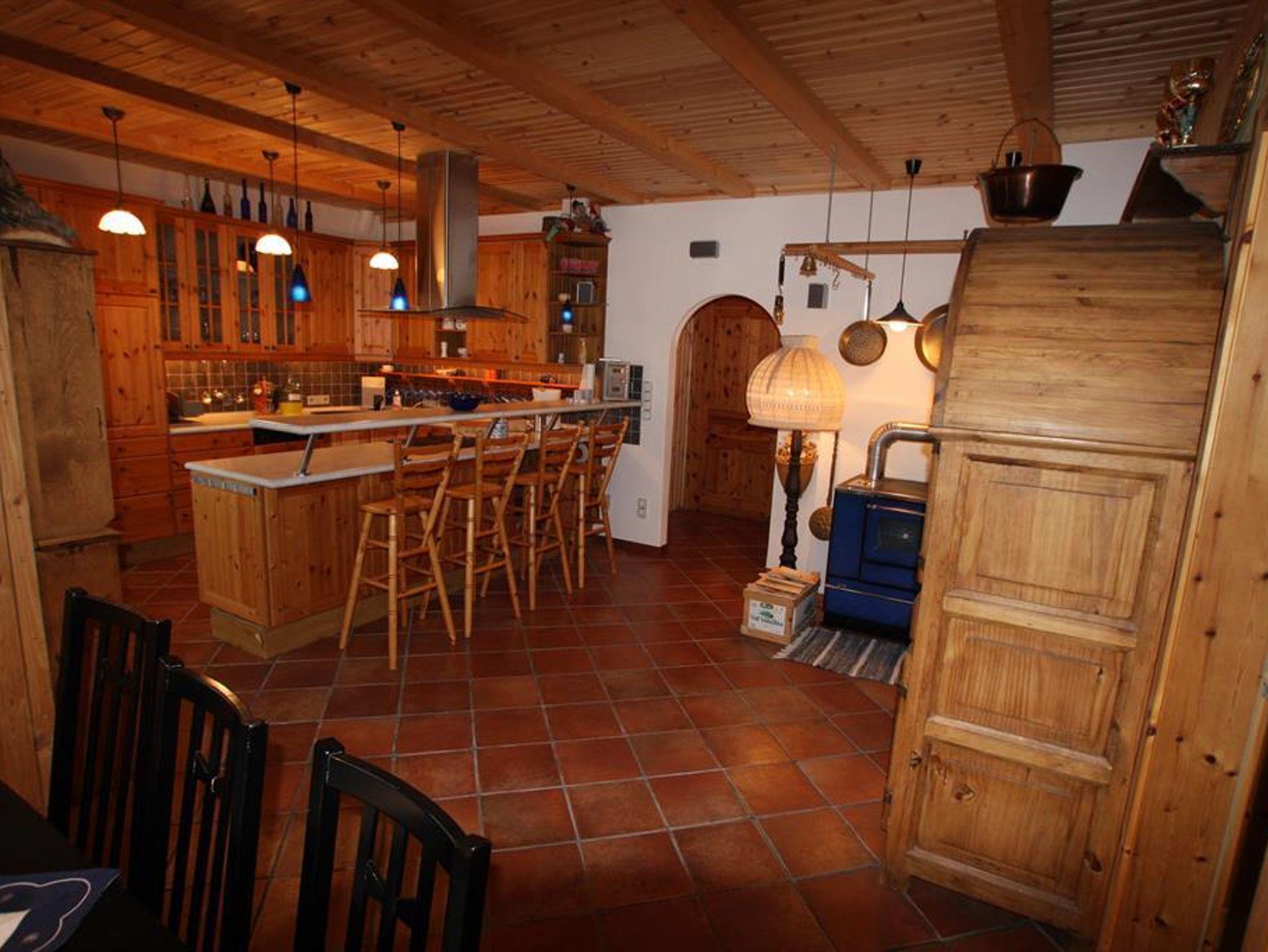 70 m² Fewo für 4-7 Personen. Vorzimmer, Schlafzimmer, Kinderzimmer, große Wohnküche (Geschirrspüler, E-Herd) Bad (2 Waschbecken, Dusche, Badewanne, WC, Waschmaschine), Garten mit Holzterrasse. Bettwäsche, Handtücher, SAT-TV, Pellets-Zentralheizung