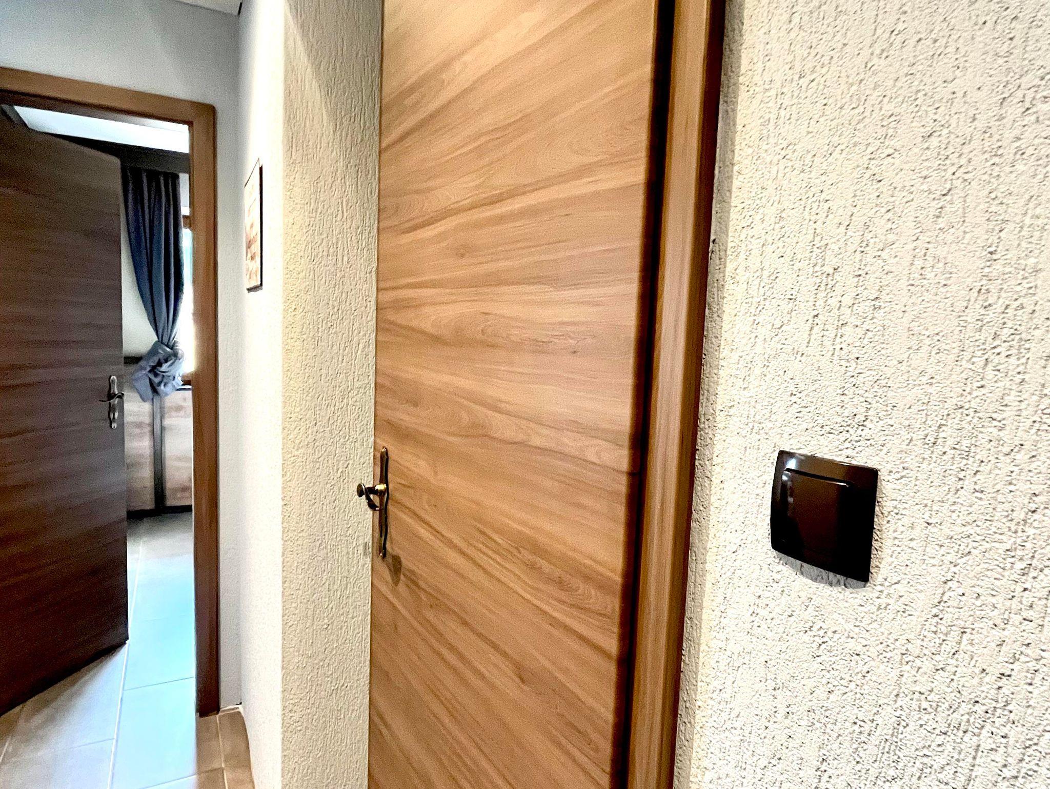 Wohnzimmer mit Küche, 4-Personen-Essbereich, 3-Sitzer-SchlafSofa, TV mit Satellitenempfang. Schlafzimmer mit doppelbet und etagenbet. Badezimmer verfügt über Dusche, WC und Waschbecken. Diese Wohnung hat einen eigenes garten sitzplatz. Sie können drahtloses Internet kostenlos nutzen.