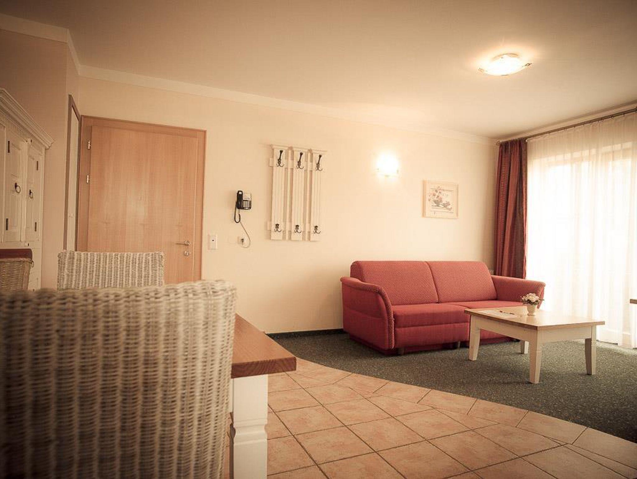 Geräumige und gemütliche Appartements mit gut ausgestatteter Küche, Schlafzimmer, Wohnraum (zusätzliches Schlafzimmer mit Schlafcouch) WC, Dusche, Garderobe, Sat TV, WLAN, Balkon oder Terrasse, Bettwäsche, Handtücher, Tiefgarage. Waschmaschine und Trockner stehen zur Verfügung.