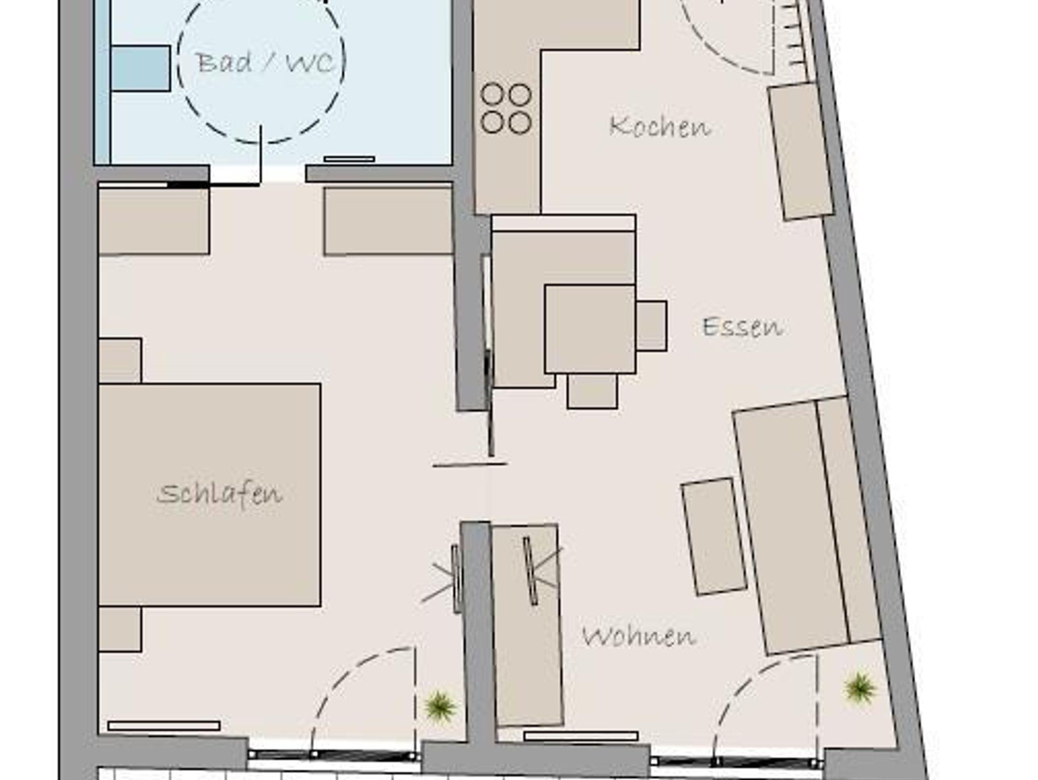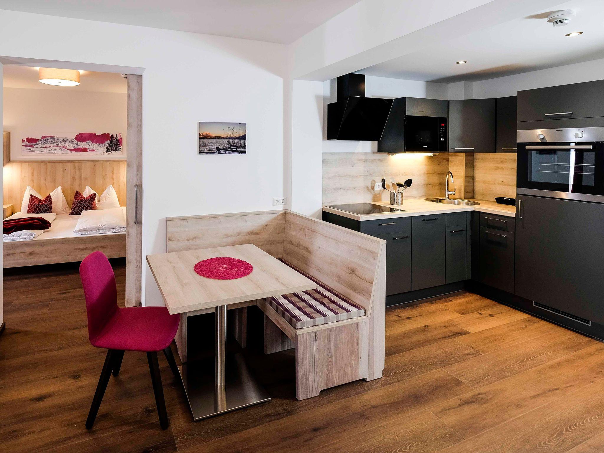 Doppelbett Wohnküche mit Essecke und Couch (als Zusatzbett nutzbar)