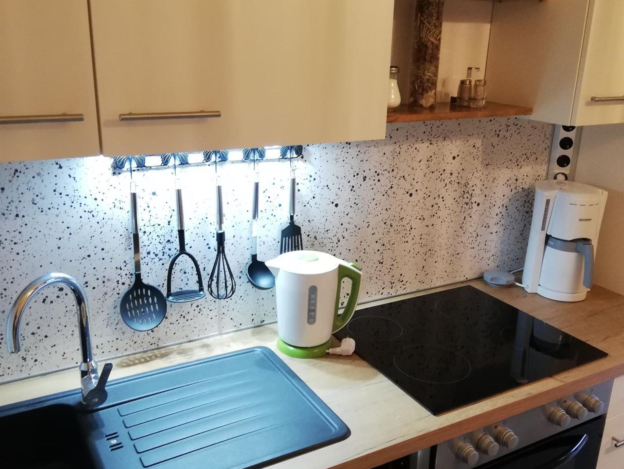 Unser gemütliches Appartement wurde mit sehr viel Liebe im Detail geplant, damit Sie sich wie zu Hause fühlen. Das Appartement bietet ein Schlafzimmer mit einem DOPPELBETT und Sat-TV, sowie einen Schlafraum mit Stockbett und einem zusätzlichen Schlafsofa mit Sat-TV. Die komplett ausgestattete Küche verfügt über einen Mikro, Geschirrspüler, 4 Ceran Kochfelder, Backofen, Kühlschrank mit Gefrierfach, Kaffeemaschine, Wasserkocher, Toaster, Geschirrtücher und ausreichend Geschirr mit einem gemütlichen Essbereich und eine Terrasse. Geräumiger Vorraum, Staubsauger im Appartement. Ein Bad mit Dusche und WC, Fön, Hand- und Badetücher, Hausslipper. Gratis WLAN sowie ein gemütlicher Garten mit Grillmöglichkeit und einem Pool-