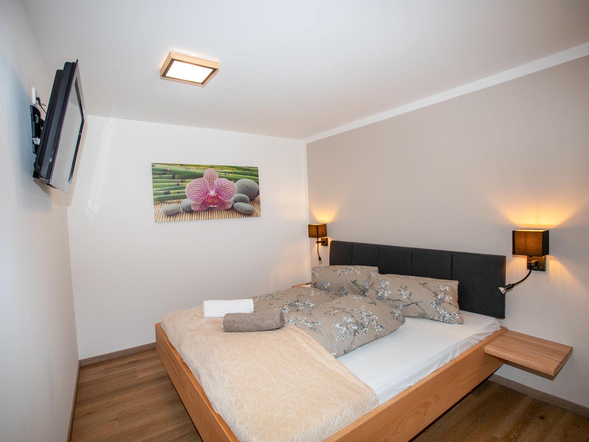 Unsere kompett neu gestaltete Ferienwohnung Poludnig besteht aus 2 Schlafzimmern mit Ehebetten,Wohnzimmer, komplett ausgestatteter Küche mit Geschirrspüler und Backrohr, Dusche und WC, Sat TV, gratis Internetzugang, Loggia. Der Preis für 2 Personen ist mit einem Schlafzimmer berechnet Wir sind Sommer-Premiumpartner - Zahlreiche Vergünstigungen +card (z.B.freie Strandbenützung).