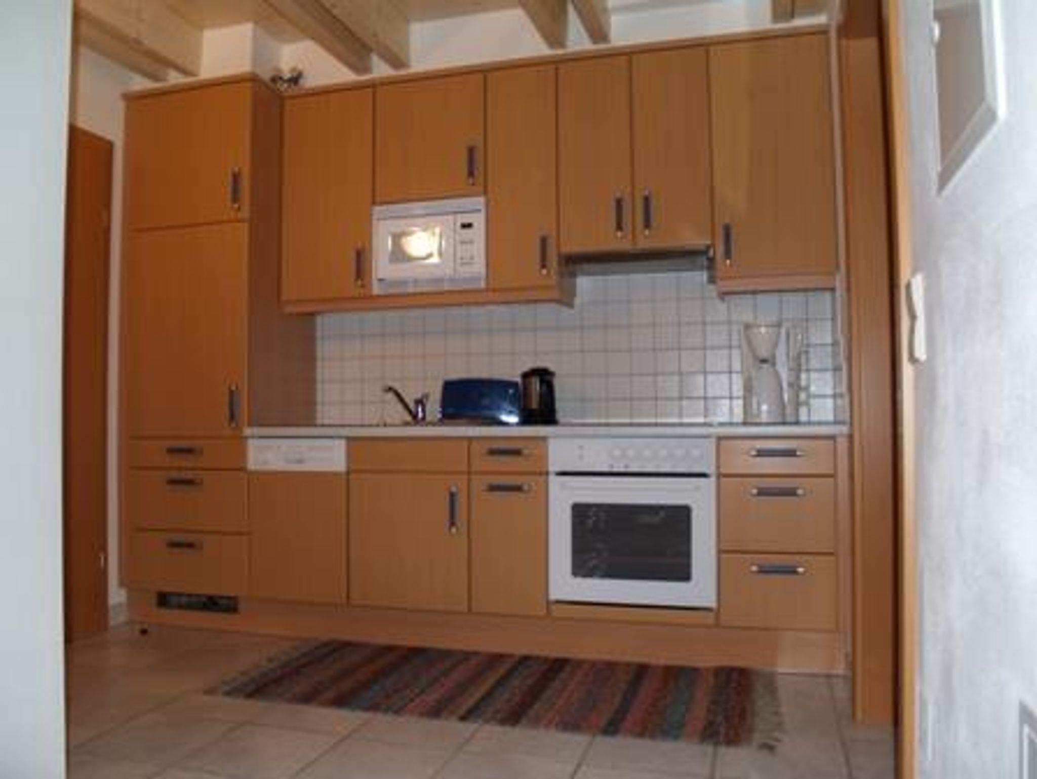 2-Etagen-Wohnung 65 m² mit Südbalkon, Vorraum, Einbauküche (Einbauherd, Micro, Dunstabzug, Geschirrspüler, Kühlautomat, Kaffeemaschine, Toaster, Wasserkocher), Dusche-WC Wohnbereich mit Essplatz für 4-6 Personen, Couch-Garnitur, 40-Zoll-Flachbild-Fernseher mit SAT-TV, Radio mit CD-Player, Internet-Anschluss (WIFI). 1 Doppelbett-Schlafzimmer und 1 Zweibett-Schlafzimmer in der oberen Etage. Bettwäsche und Handtücher vorhanden.