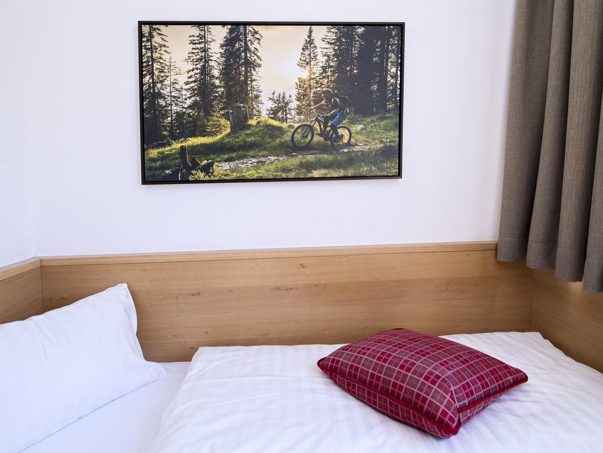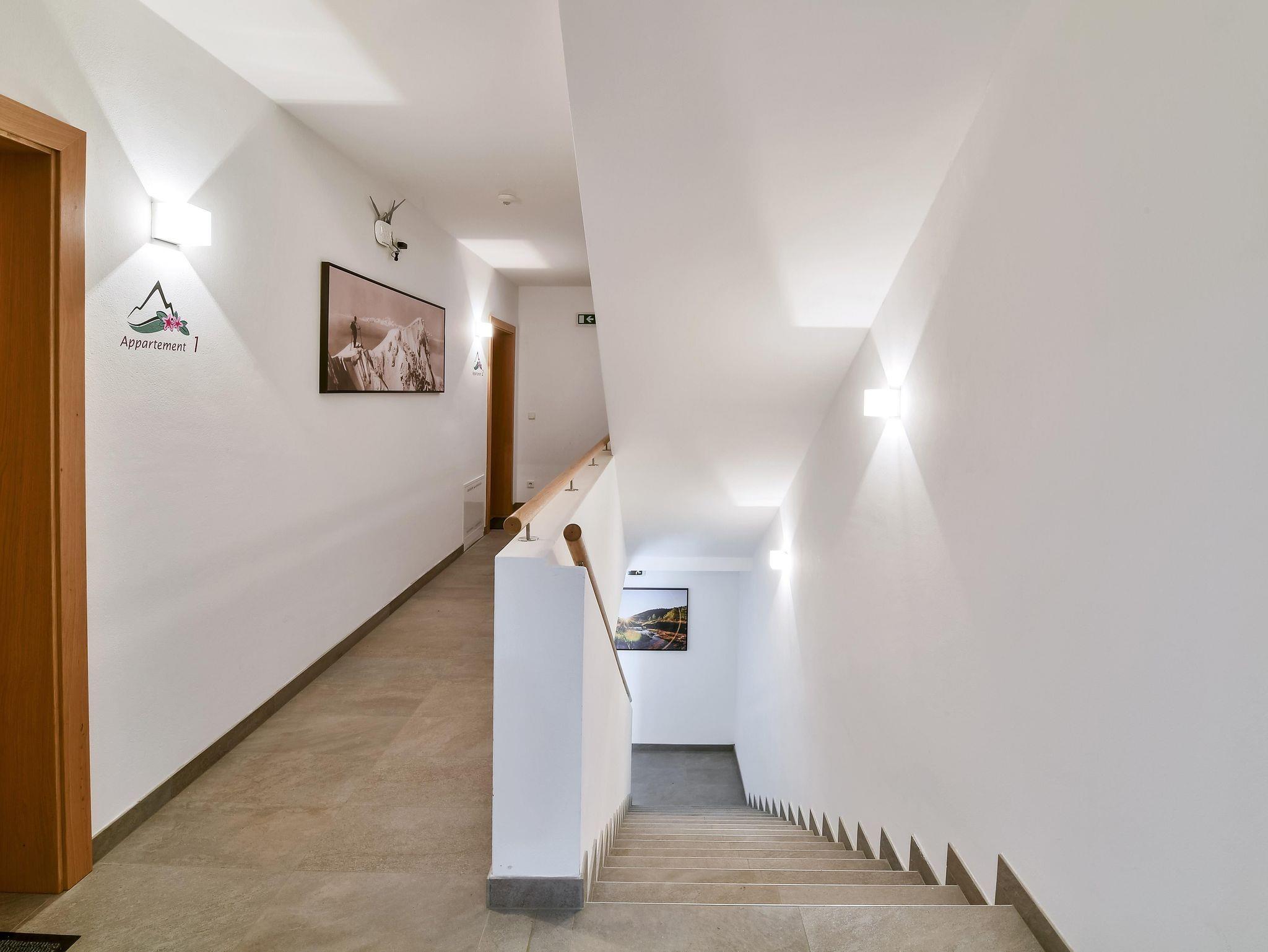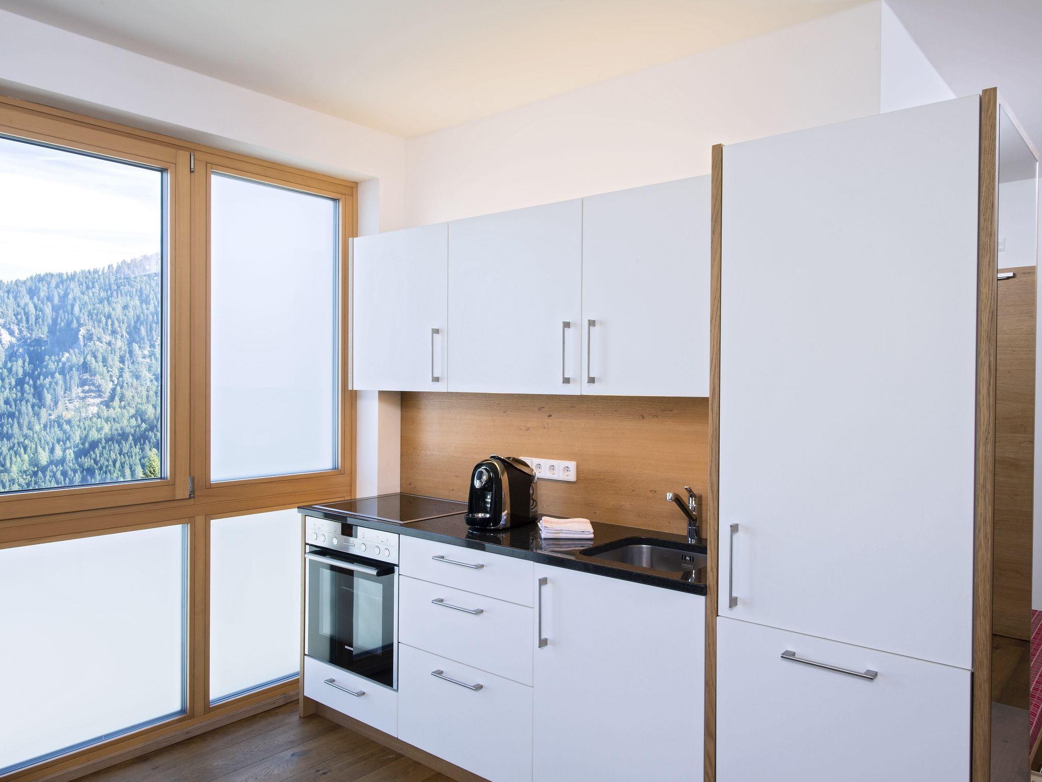 Im modernen Appartement finden Sie eine gut ausgestattete Küche mit Herd, Backofen, Geschirrspüler, Wasserkocher und Tchibo-Kaffeeautomat. Jede Ferienwohnung ist mit einem Flachbild-TV ausgestattet und für unsere Gäste bieten wir kostenloses WLAN. Im Preis inkludiert sind Strom, Heizung, Müllentsorgung sowie die Bettwäsche und Handtücher für bis zu 4 bzw. 5 Personen (je nach Appartementtyp und Buchung). Extra verrechnet wird die Endreinigung einmalig mit € 80,-- und die Ortstaxe mit € 2,50 pro Person/Nacht (ab 17 Jahren). Unsere Service für Sie: - Aufzug zu den Wohnungen - Trockenraum für Schuhe - Kostenloser Parkplatz Bitte beachten Sie, wir sind ein Nichtraucherhaus!