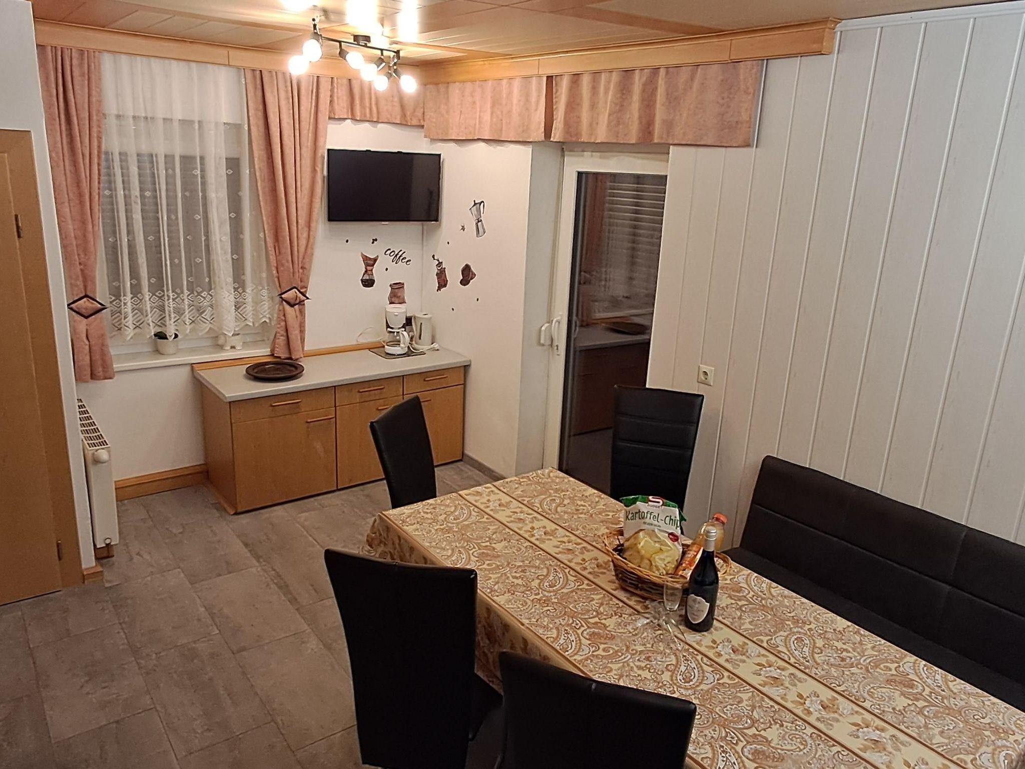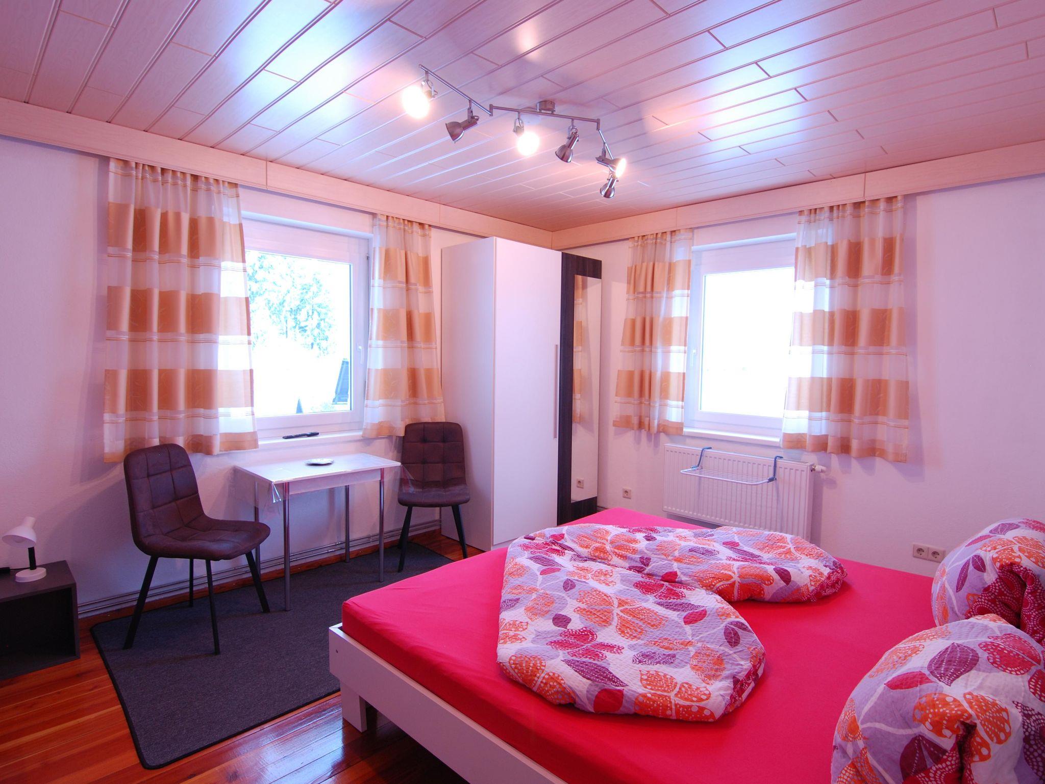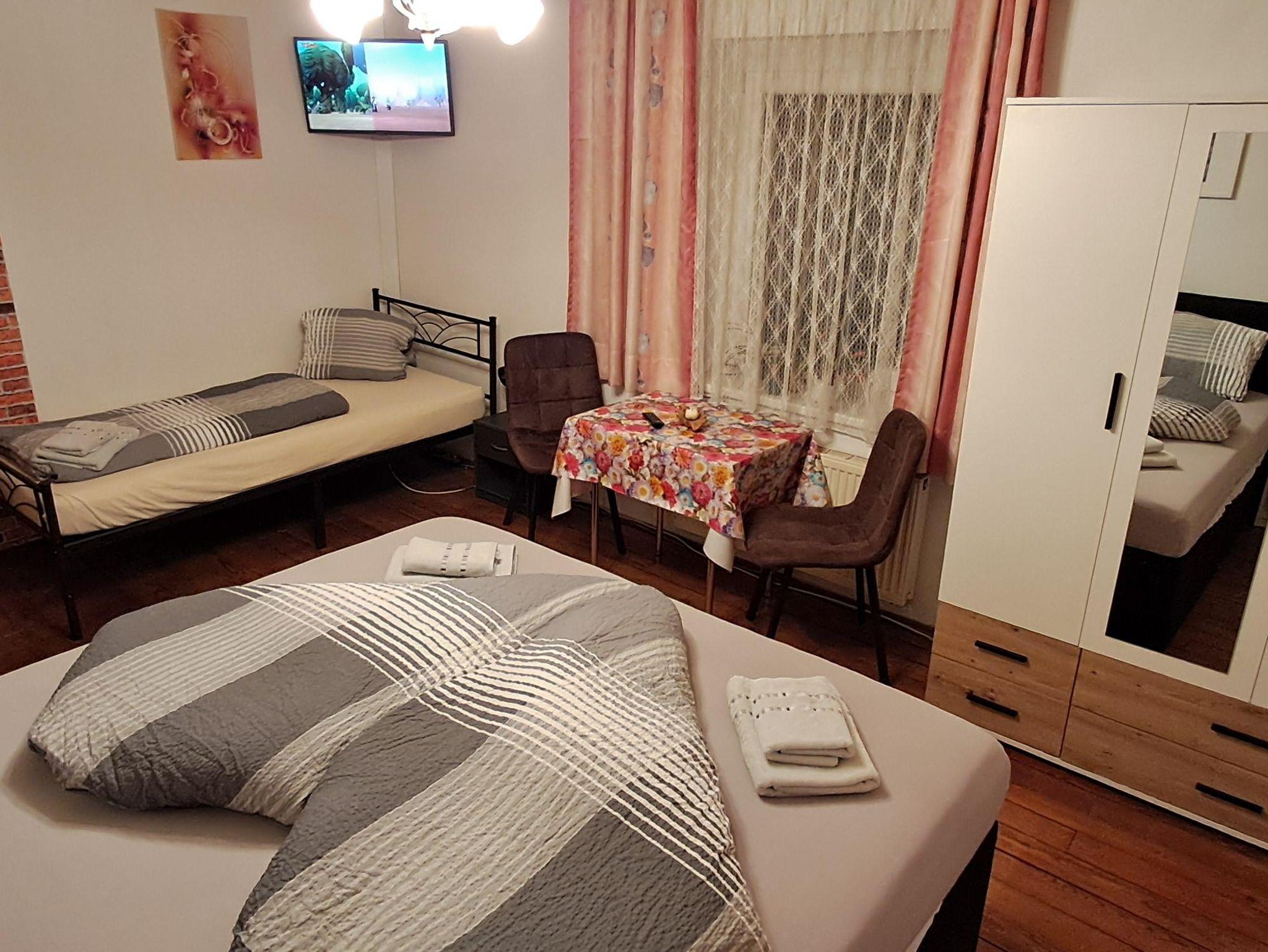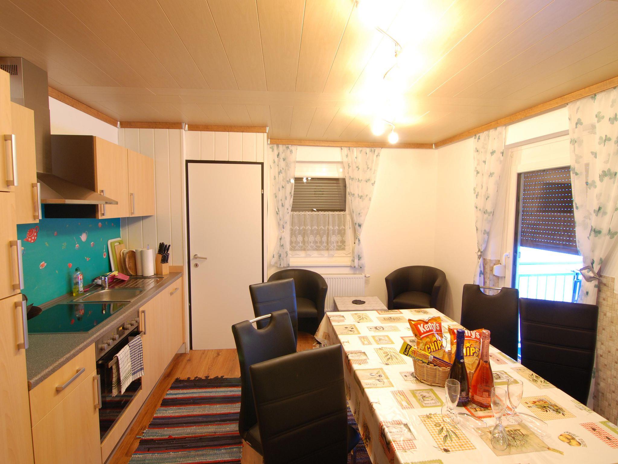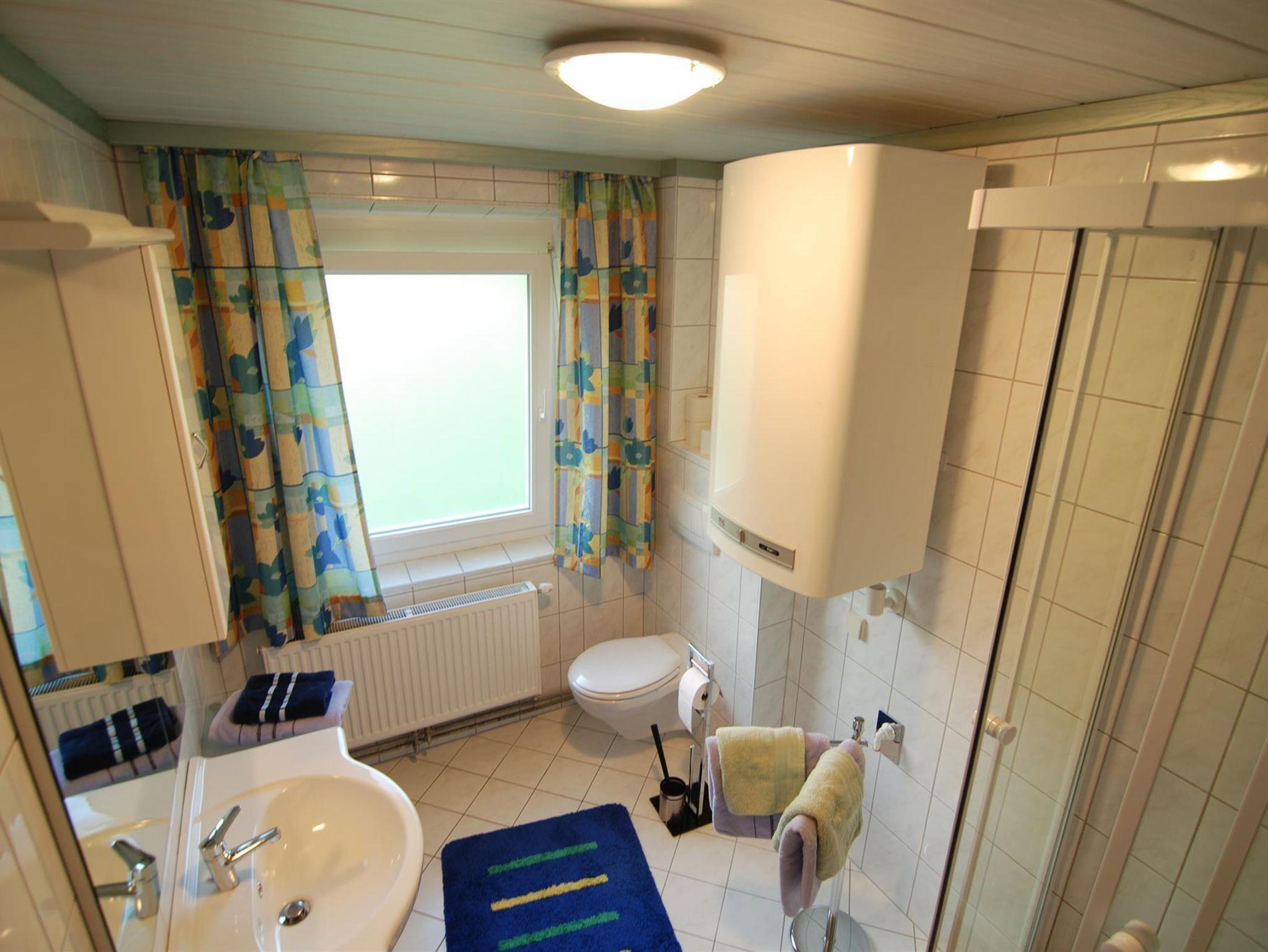 In zwei Zimmern befinden sich jeweils ein Doppelbett sowie ein Einzelbett. In beiden Zimmern sind ebenso Fernseher mit Satellitenanschluss zu finden. Im dritten Zimmer steht ein weiteres Doppelbett. In unserer Ferienwohnung gibt es auch einen schönen Vorraum mit Garderobe. Das Badezimmer verfügt über eine Dusche, ein WC und einen schönen Waschbereich. In der Küche findet man genügend Platz für bis zu 8 Personen. Mit einem großen Esstisch und einem Fernseher mit Satellitenanschluss steht auch gemütlichen Fernsehabenden nichts im Wege. Direkt von der Küche aus kommt man auf die Terasse wo sich auch der direkte Anschluss an den Garten mit Kamingrill befindet. Dort kann man gemütliche Grillabende genießen.
