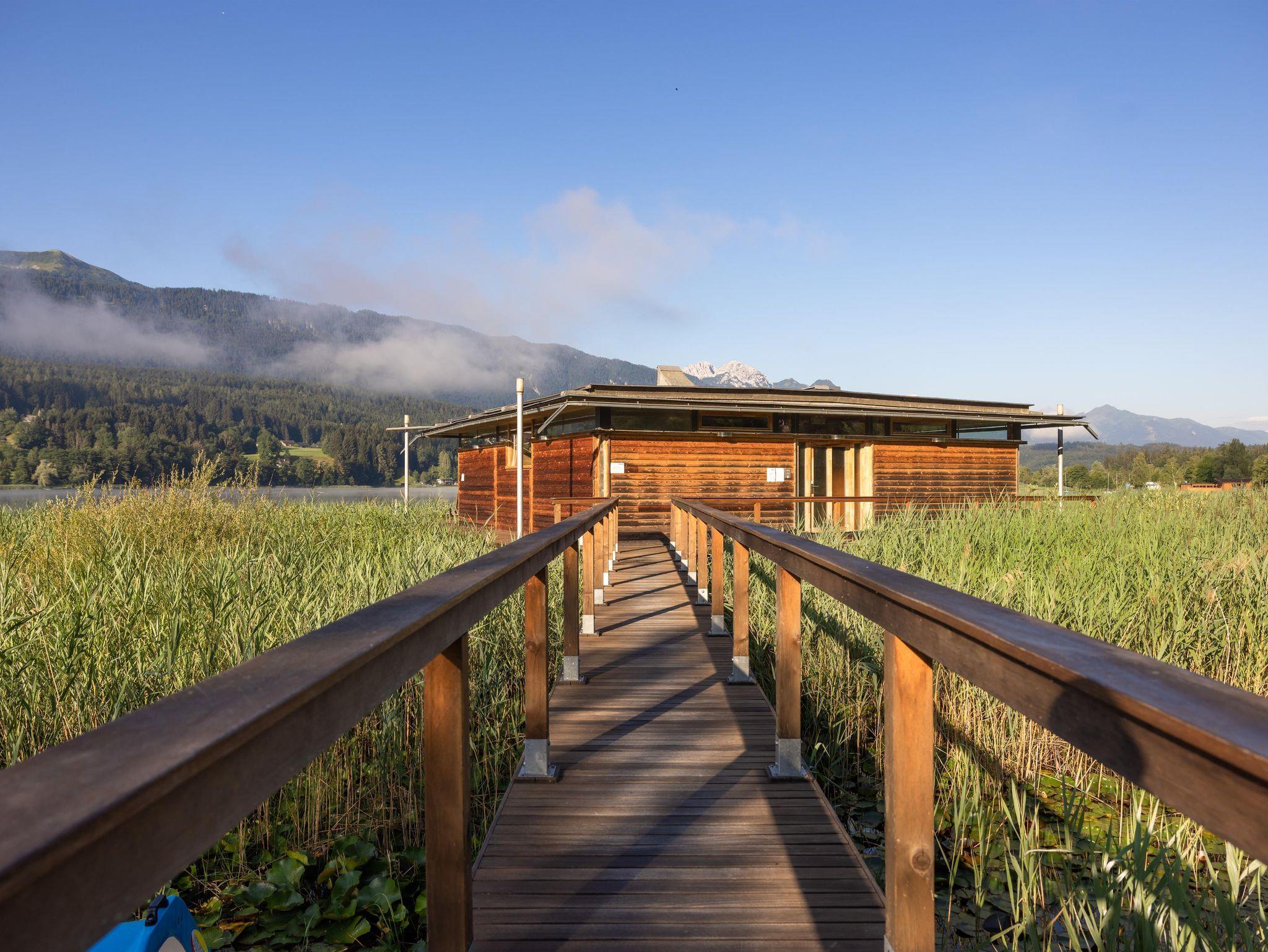 Endlich abschalten, den Urlaub genießen und die Seele baumeln lassen. Das Lake Resort als Hide away steht für naturnahe Erholung und besonderen Charme. Das Grundstück wird vom natürlichen Schilfgürtel eingesäumt und bietet Ruhe mit einem besonderen Naturerlebnis. Auf der einen Seite genießen Sie die herrlichen Berge, auf der anderen den See. Auf der 15.000 m² großen Apartmentanlage findet jeder seinen Lieblingsplatz, wo man sich seine ganz persönliche Auszeit nehmen kann.