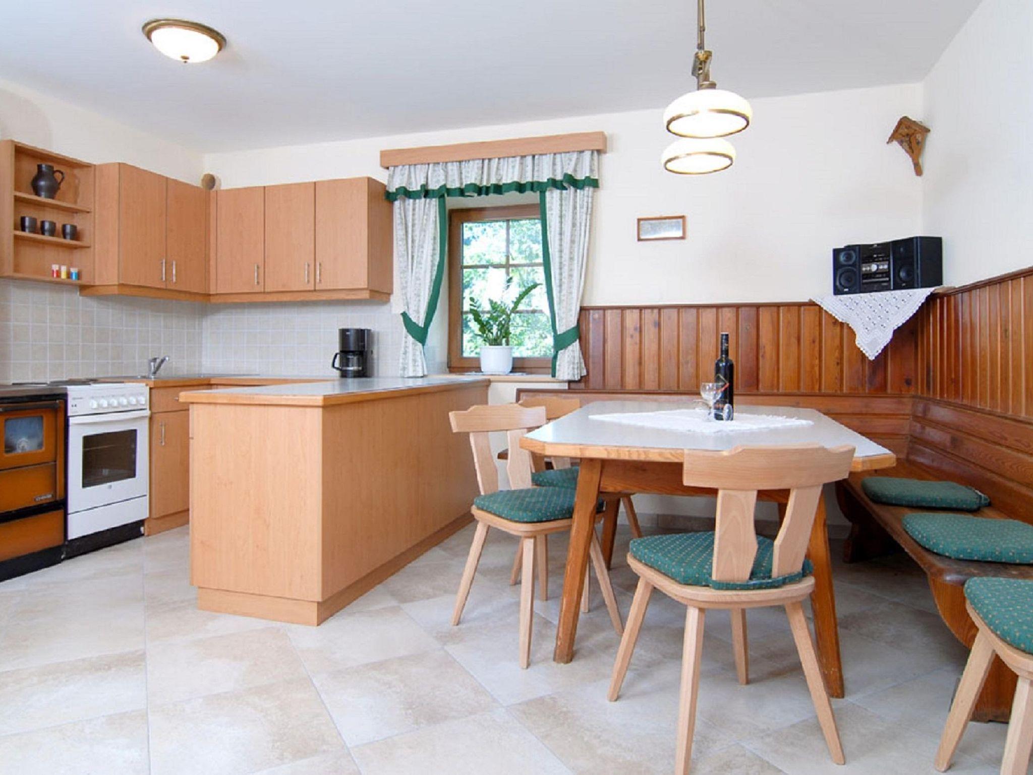 Eine große Küche gibt viel Platz für bis zu 18 Personen. Elektroherd und Holzherd in der Küche, genügend Geschirr ist auch vorhanden. Bodenheizung in den Bädern und der Küche vorhanden.