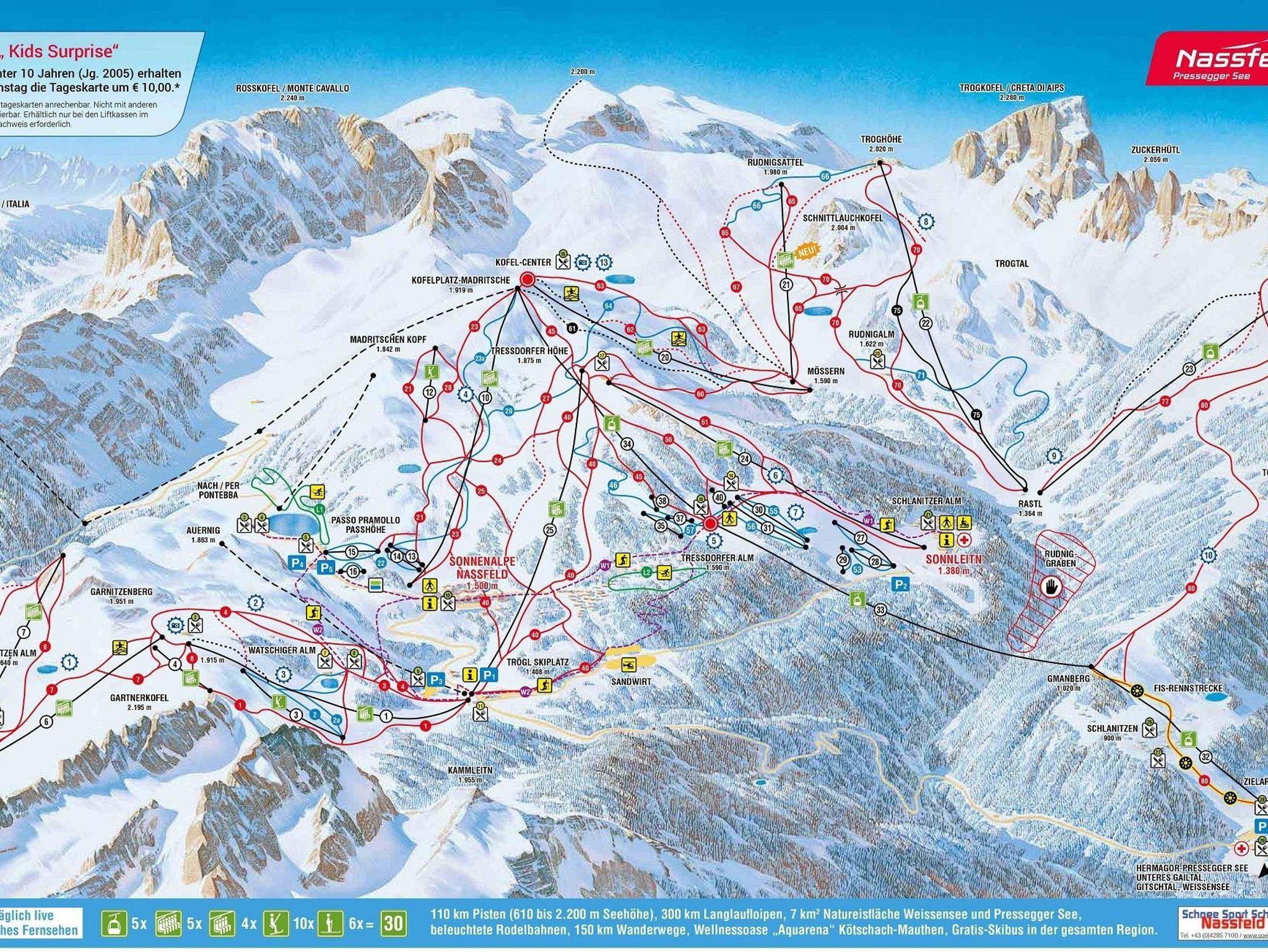 Genießen sie unsere Bergpanorama! Mit unserer Holiday Card fahren sie kostenlos mit der Gondel aufs wunderschöne Nassfeld (Fußmarsch in ca. 5 min. an der Gondel)